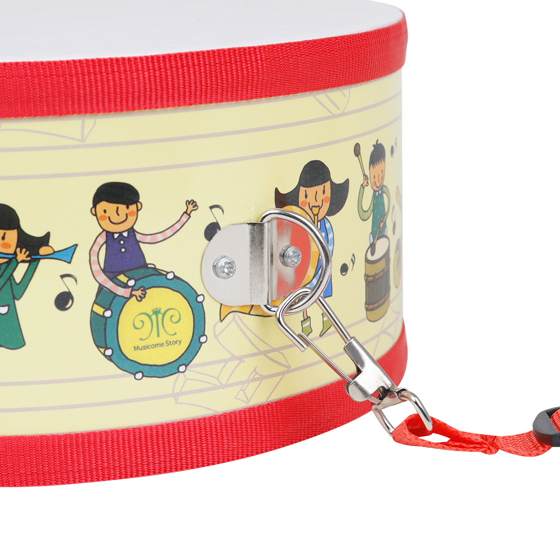 Usage and selling points: The drum body is surrounded by fun cartoon patterns and rich colors. The polyester leather drum surface has strong rebound and a pleasant sound. The drum body is surrounded by soft edges, and the strap is fixed with sturdy metal parts, which is solid and stable. The shoulder strap can be adjusted in length. When you tap the drum surface with a stick, it will produce different sounds, guiding children to perceive the source of the sounds