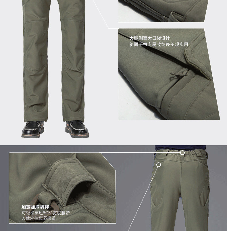 Wholesale outdoor down pants, men's multi-pocket soft-shell pants, autumn and winter warm pants, long pants, casual workwear pants, fleece and thickened
