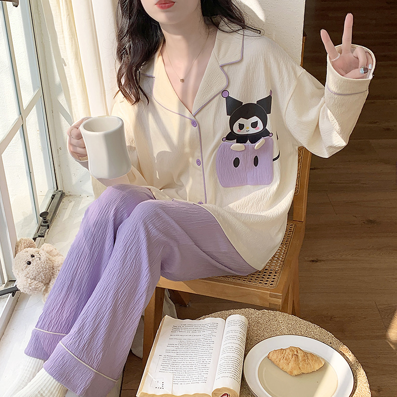 Wholesale pajamas for women spring and autumn long-sleeved, thin knitted cotton women's home wear 2023 new style in stock set