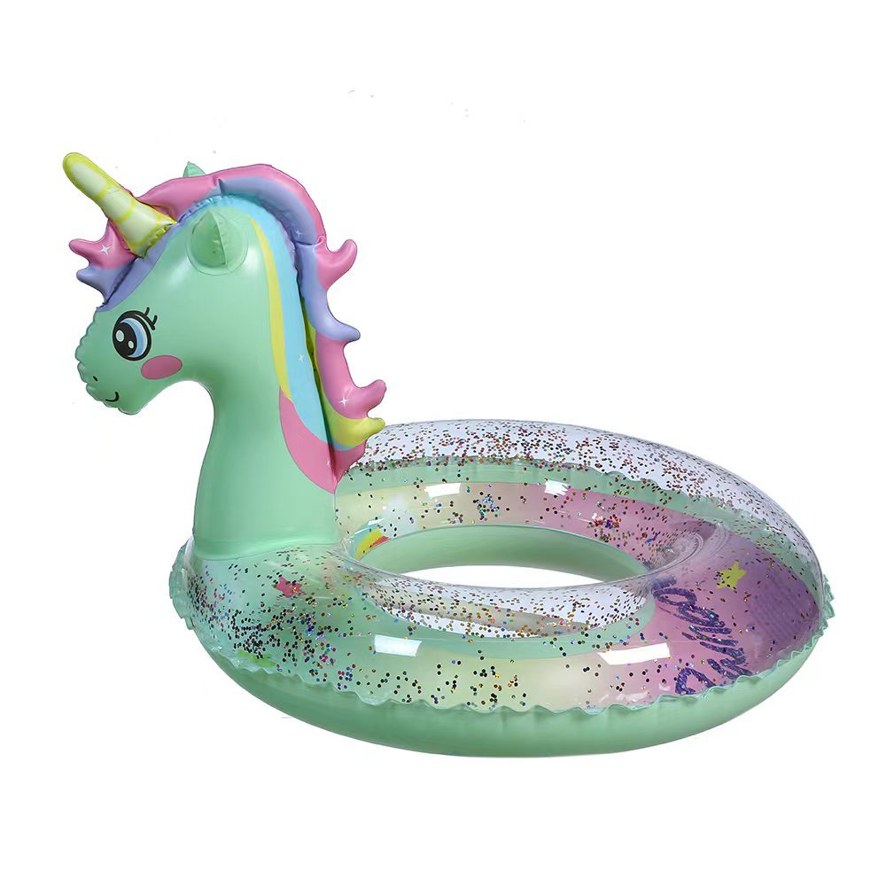 Wholesale Rainbow Unicorn sequined swimming rings, cute pvc inflatable life buoys, new creative children's rowing boats Application Scenario
