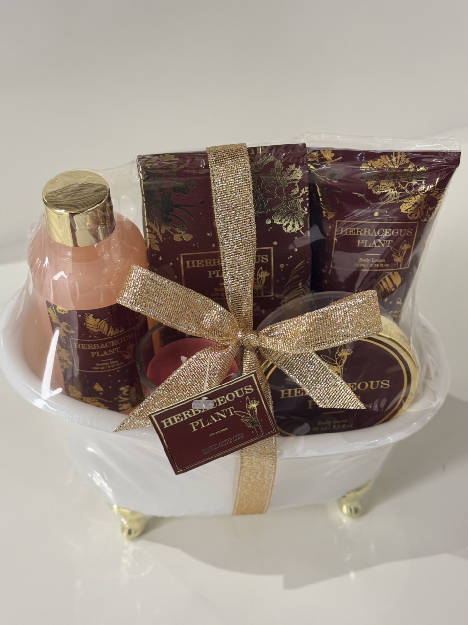 **Botanical Indulgence Gift Set** — A 5-in-1 luxury set featuring shower gel, scrub, lotion, bath salts, and an aromatherapy candle for a complete at-home spa experience. Infused with natural botanical extracts to nourish and soothe all skin types.