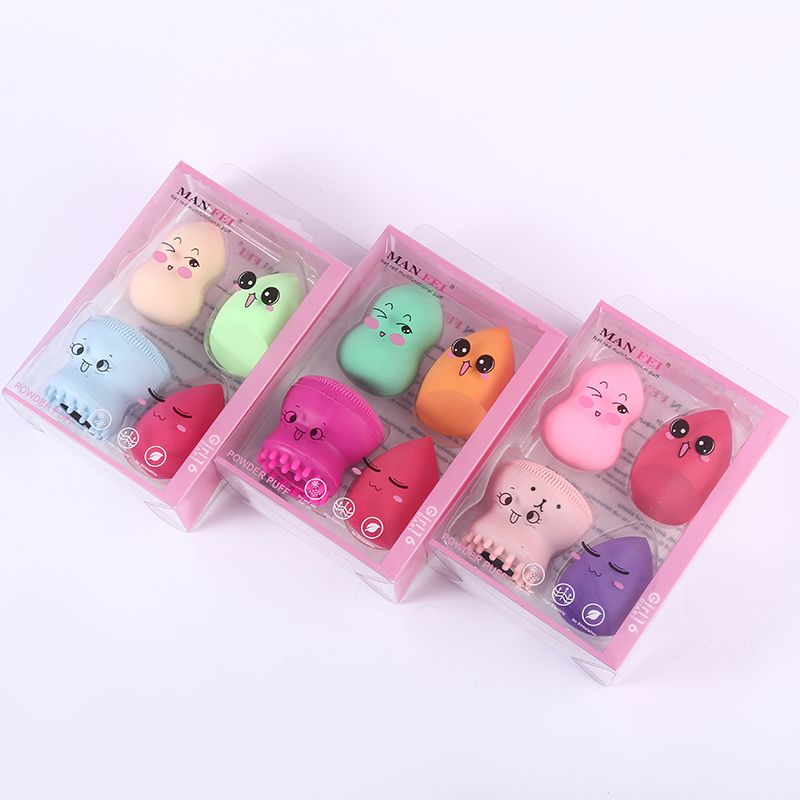 Wholesale silicone face wash massage brush, diagonal cut water drop gourd beauty egg, non-powder soft makeup egg set