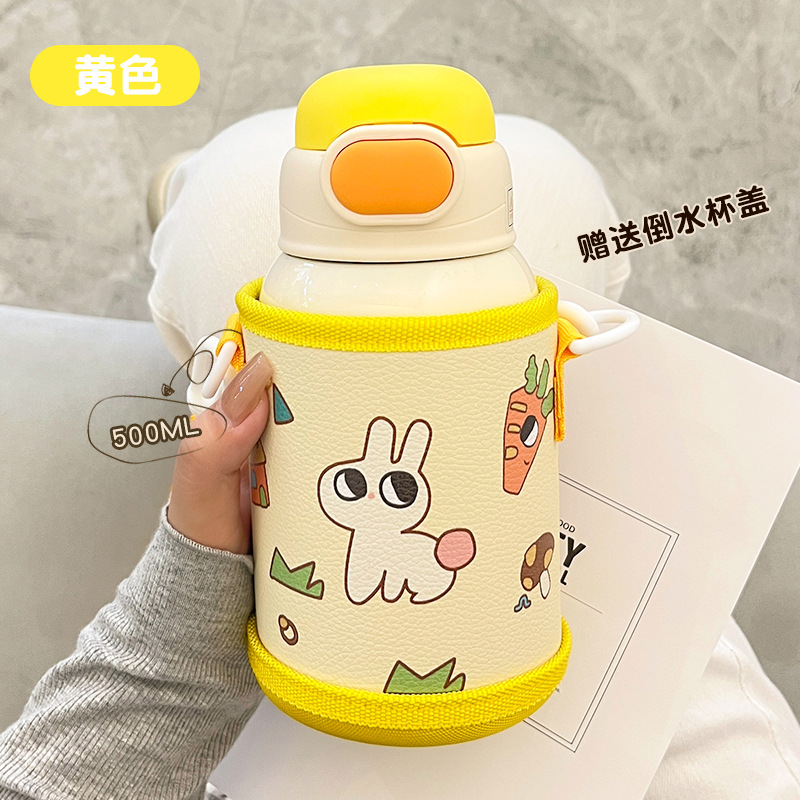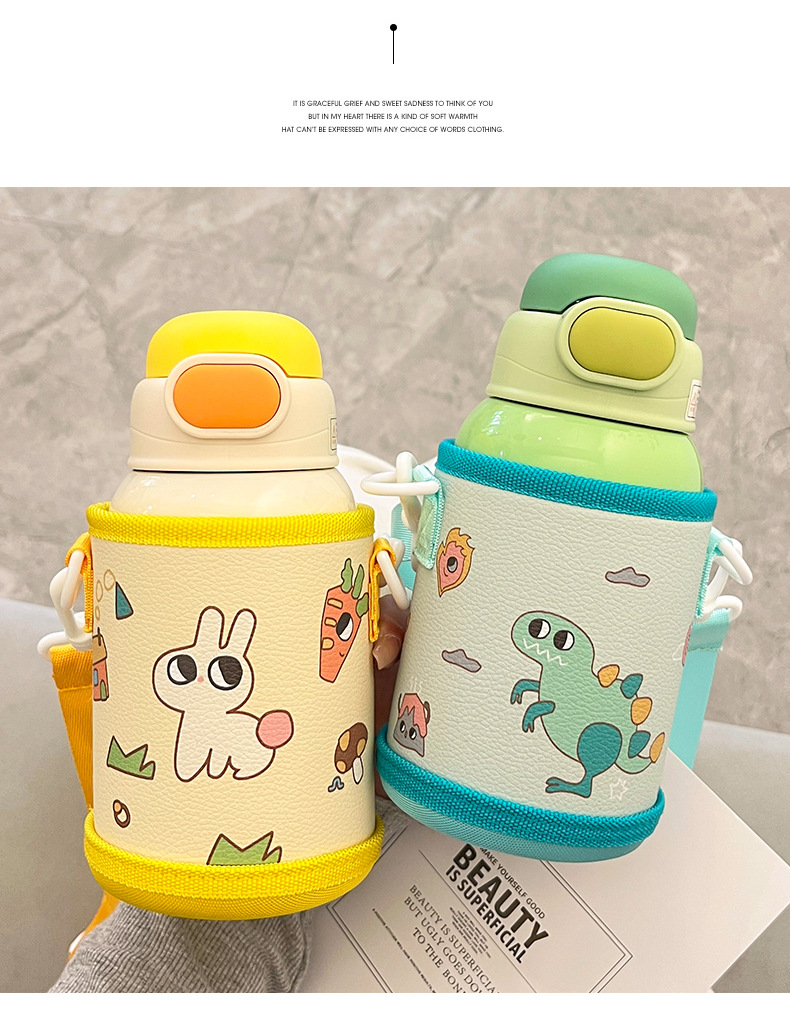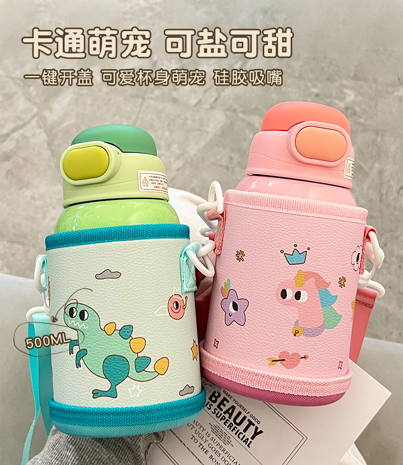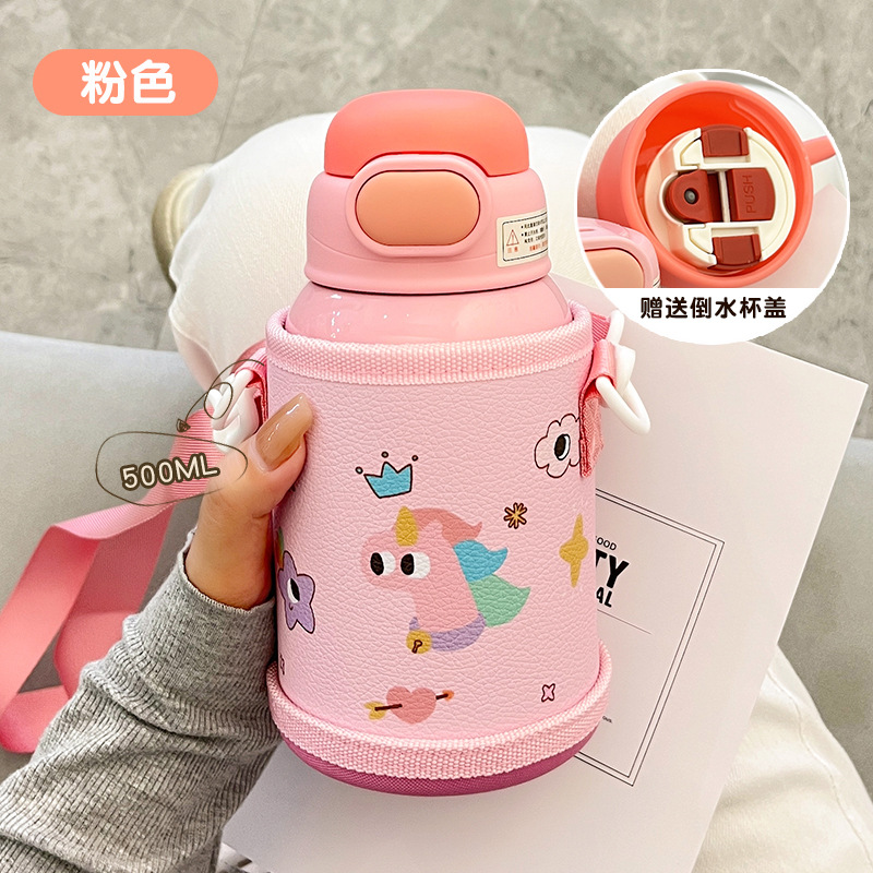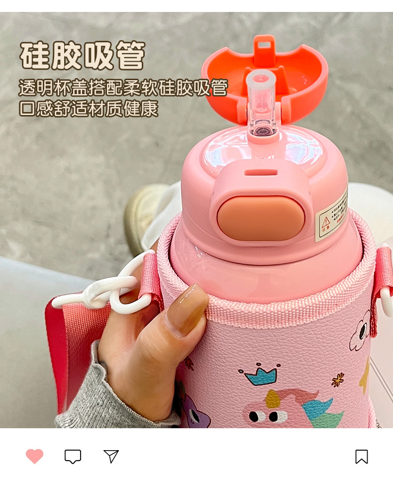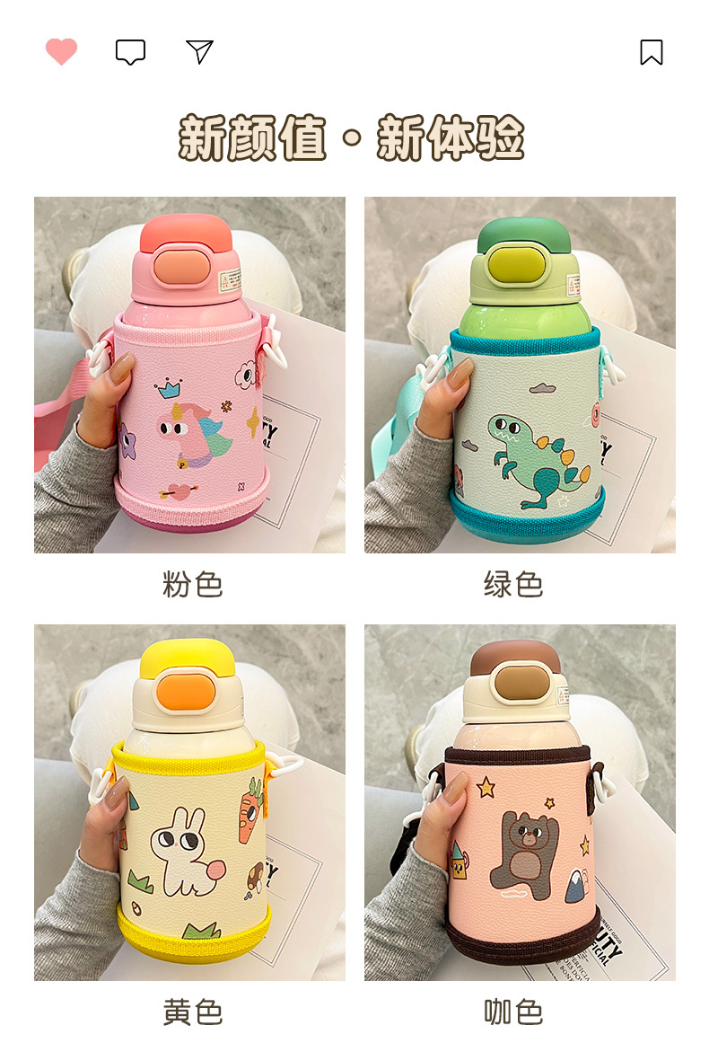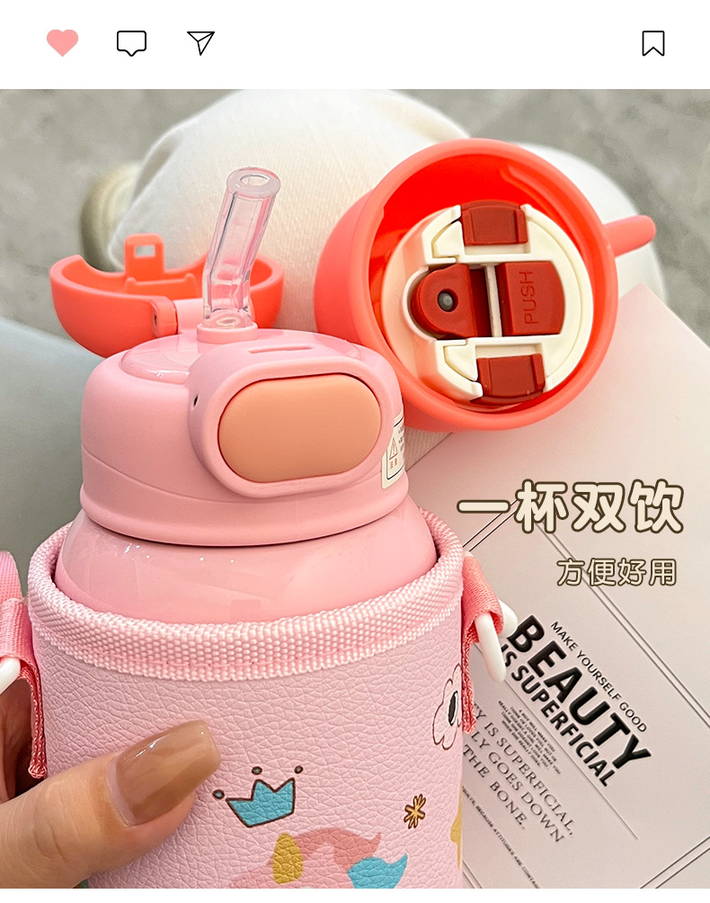 Wholesale straw cups, children's insulated cups, cute cartoon, high appearance level baby water cups, portable water bottles for school, double-drinking cups