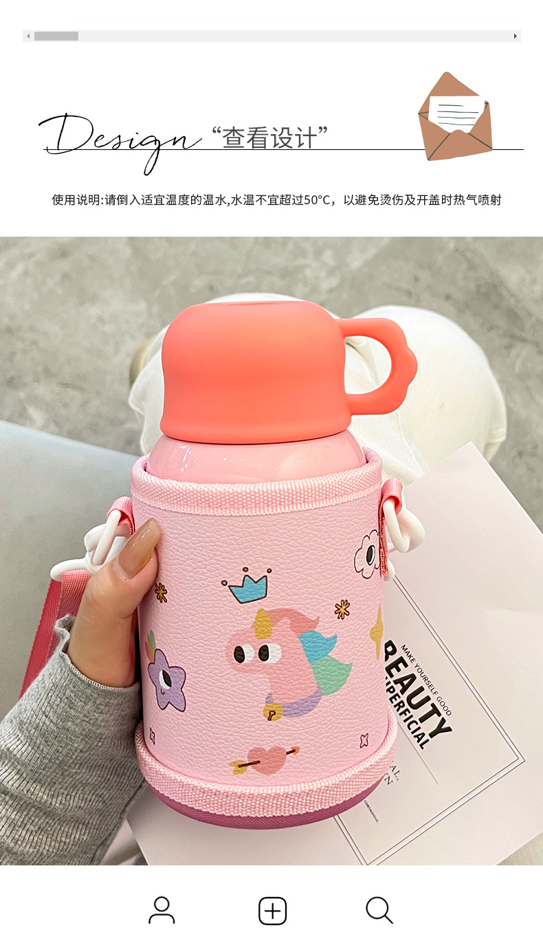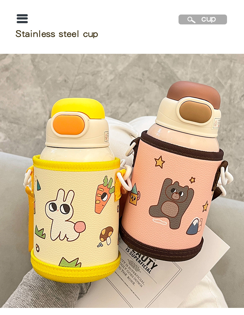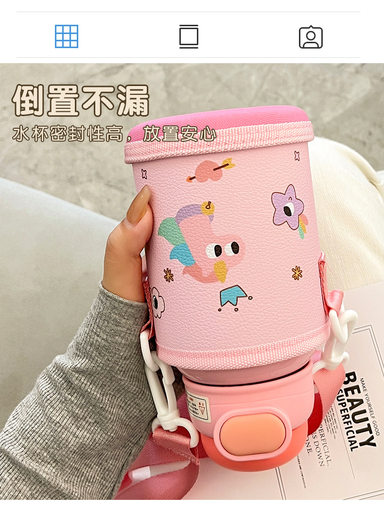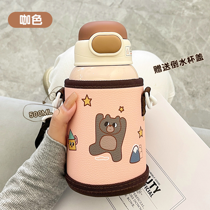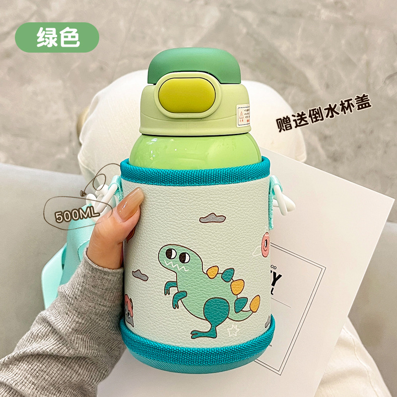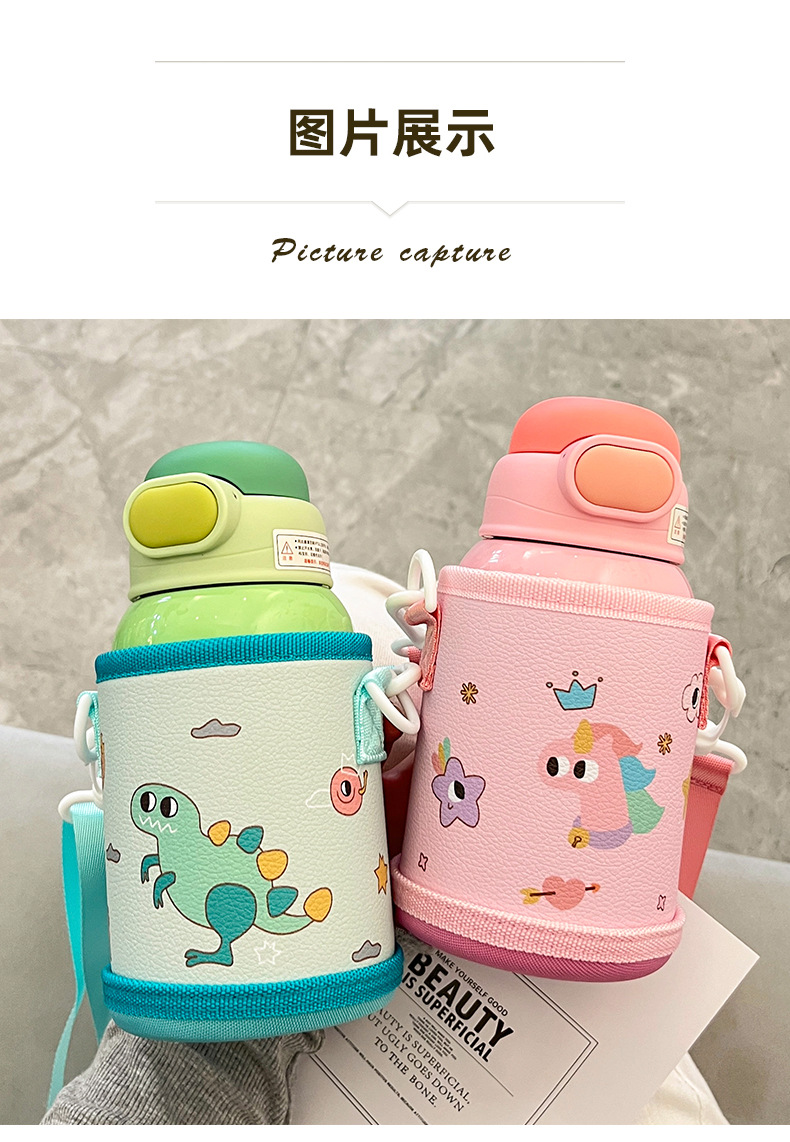 Wholesale straw cups, children's insulated cups, cute cartoon, high appearance level baby water cups, portable water bottles for school, double-drinking cups