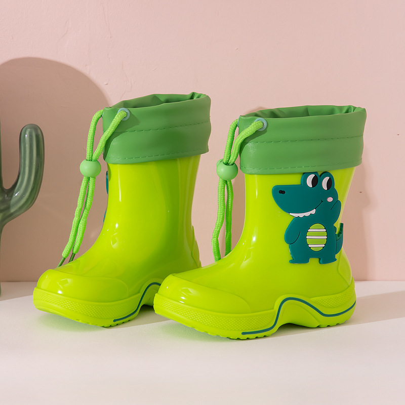 Wholesale waterproof rain boots and rain shoes, autumn children's cartoon anti-slip with cotton cover for warmth, mid-calf water boots for kids