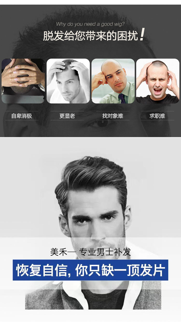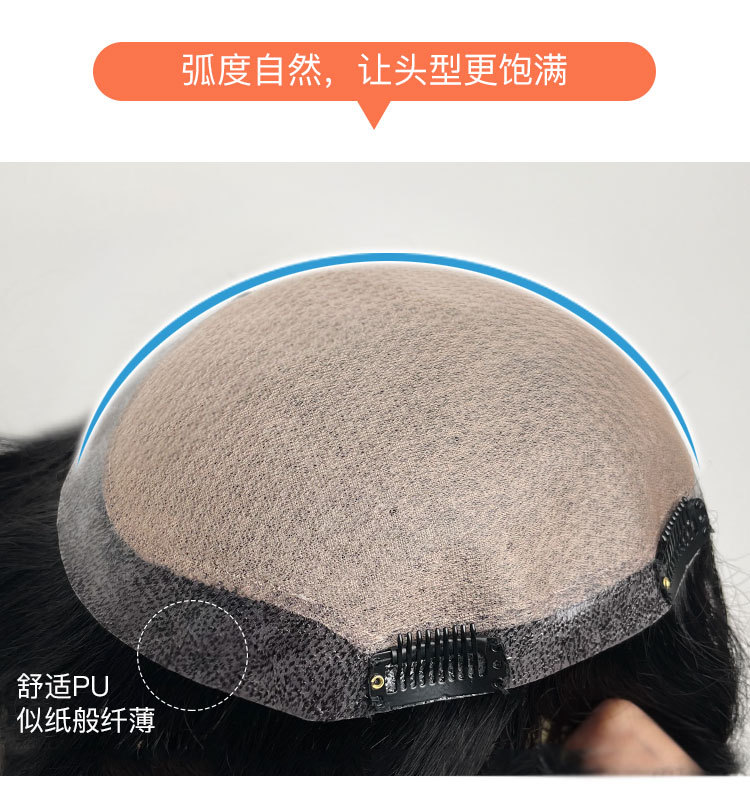 Wig pieces for men's top scalp needle replacement, full needle biological scalp hair volume replenishment wigs in stock wholesale