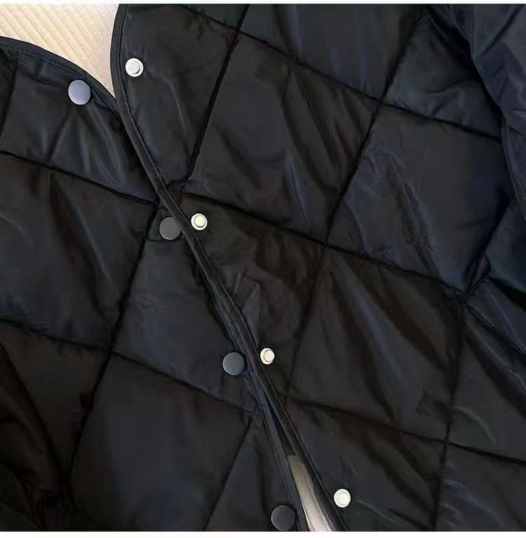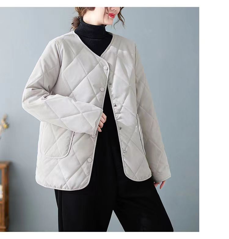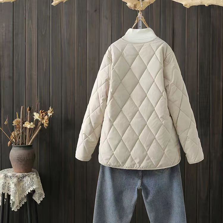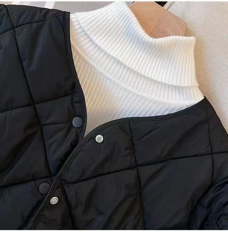 Winter cotton-padded jacket in stock: Women's short diamond-shaped ins collarless chanel-style light and thin winter Korean-style jacket