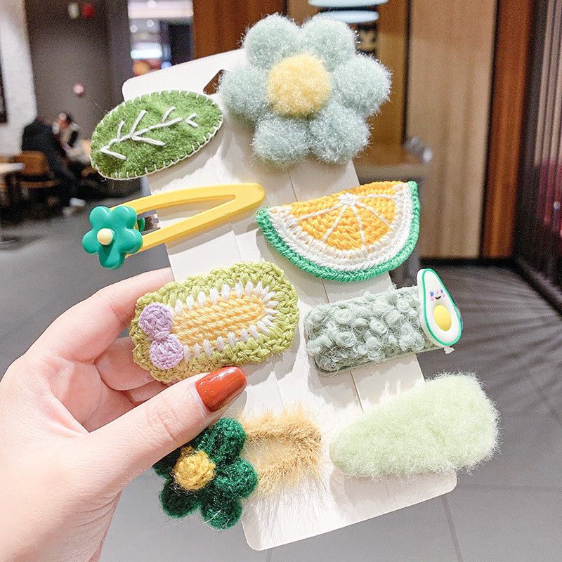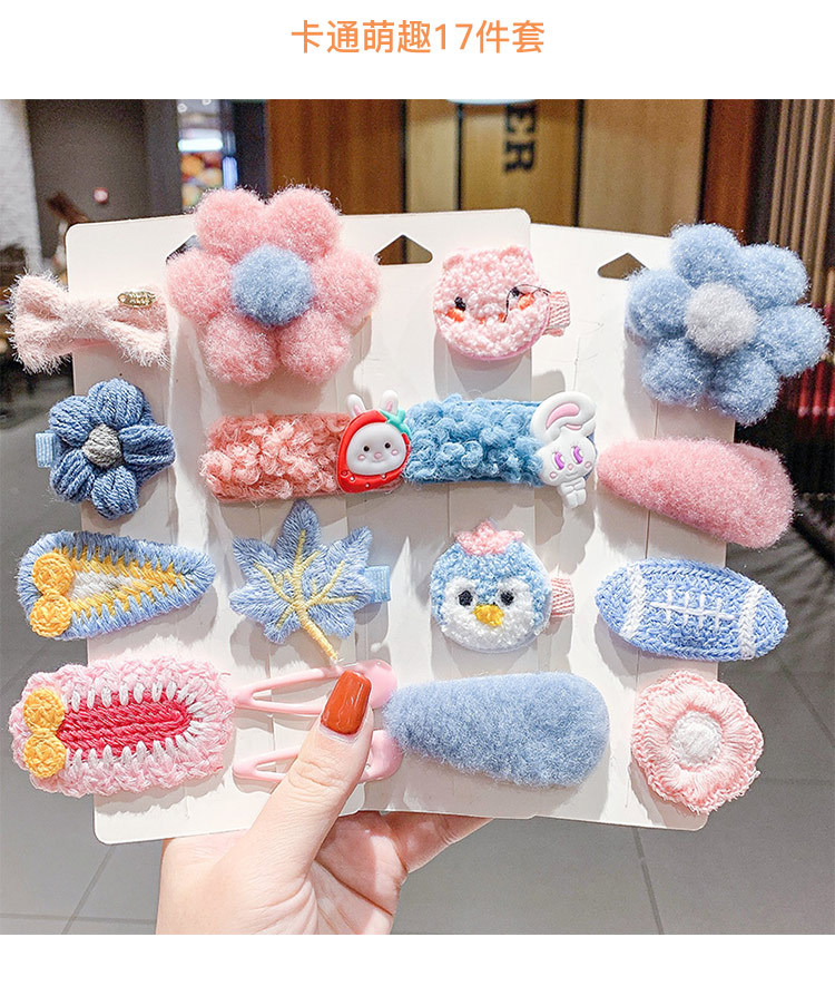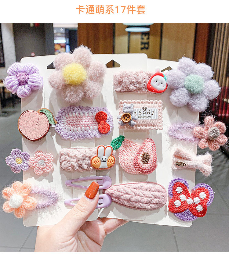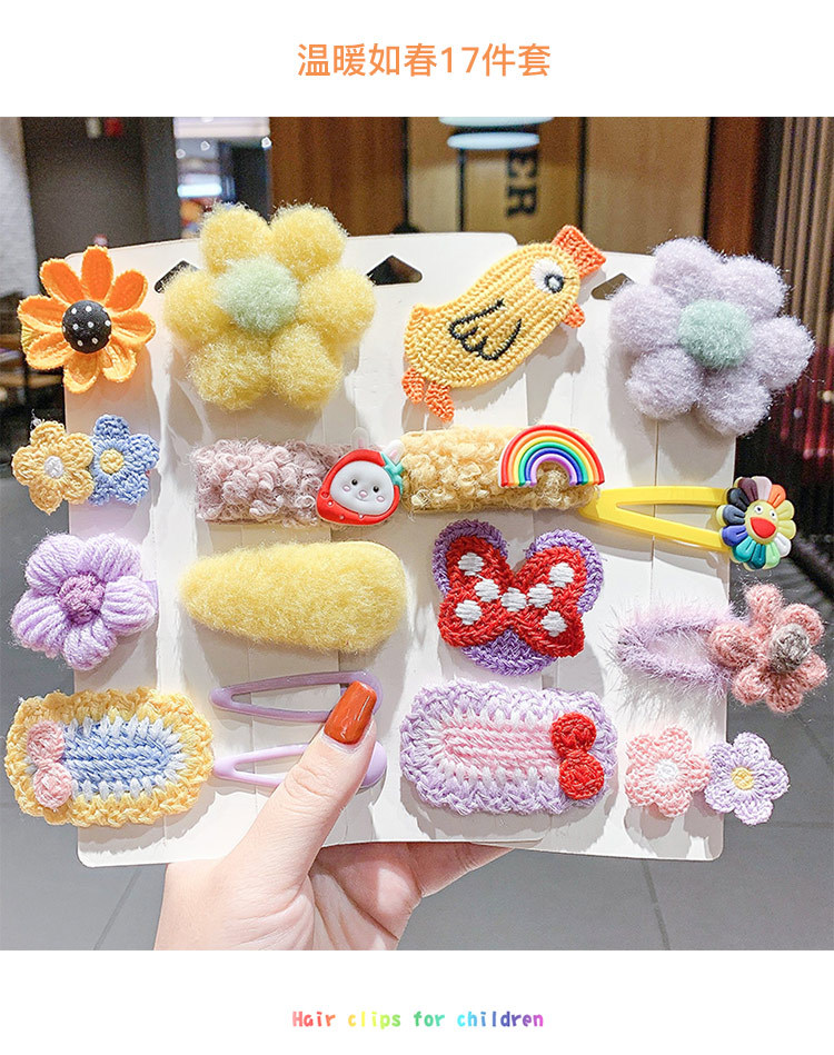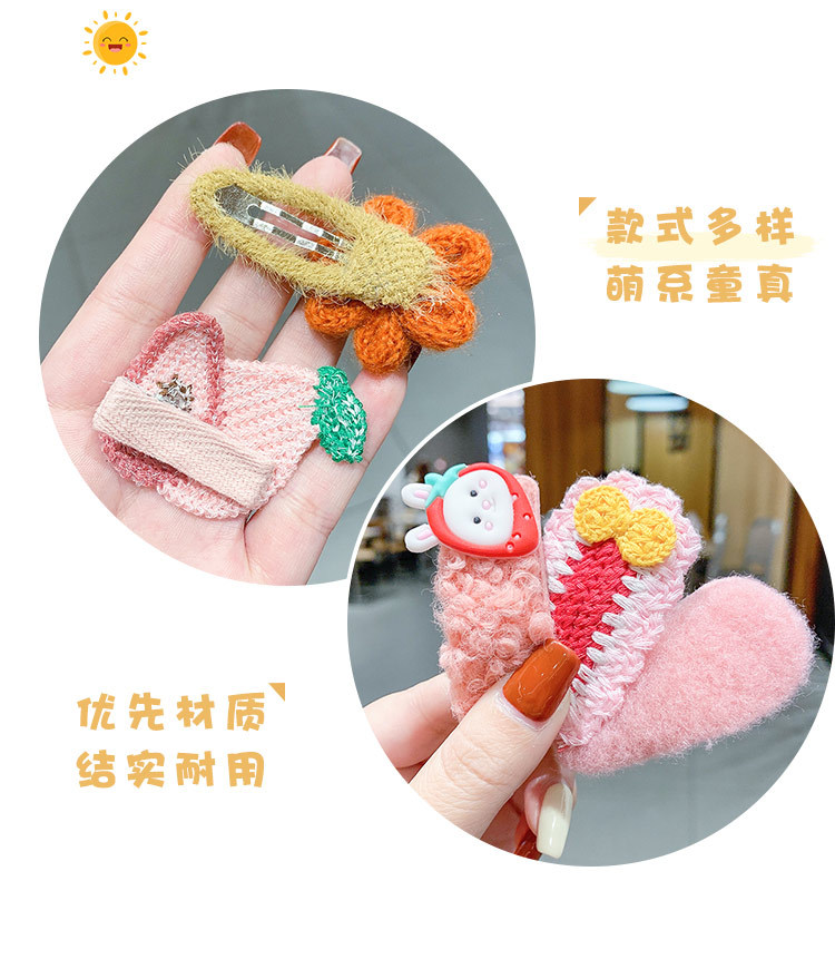 Winter girls' hair clips, children's and babies' hair accessories, plush and broken hair bb clips, cute side clips, Korean headwear