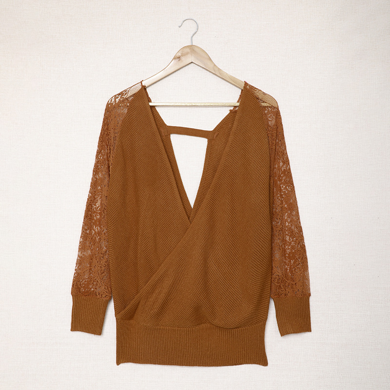 Winter lace cutout long-sleeved sweater for women's independent station, new style for foreign trade, deep V-neck, loose