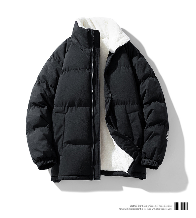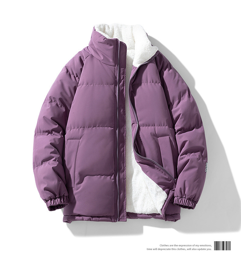 Winter lambskin cotton-padded clothes, down cotton-padded jackets, men's stand-up collar outdoor bread jackets, thickened warm coats, couple cotton-padded jackets