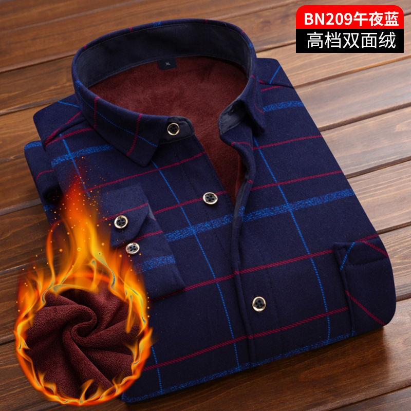 Winter new double-sided fleece checked shirt, a versatile fleece and thickened matte shirt for middle-aged men, a warm dad outfit
