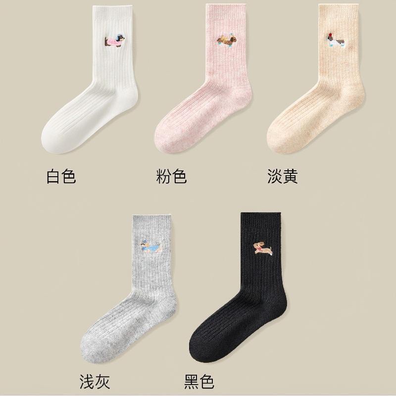 Winter wool cartoon puppy embroidered grey socks for women, mid-calf socks, ins trendy Japanese style, cute pile long socks