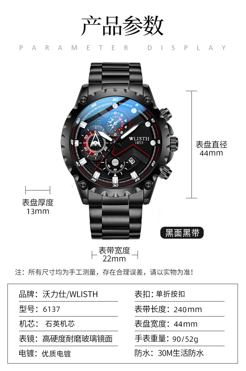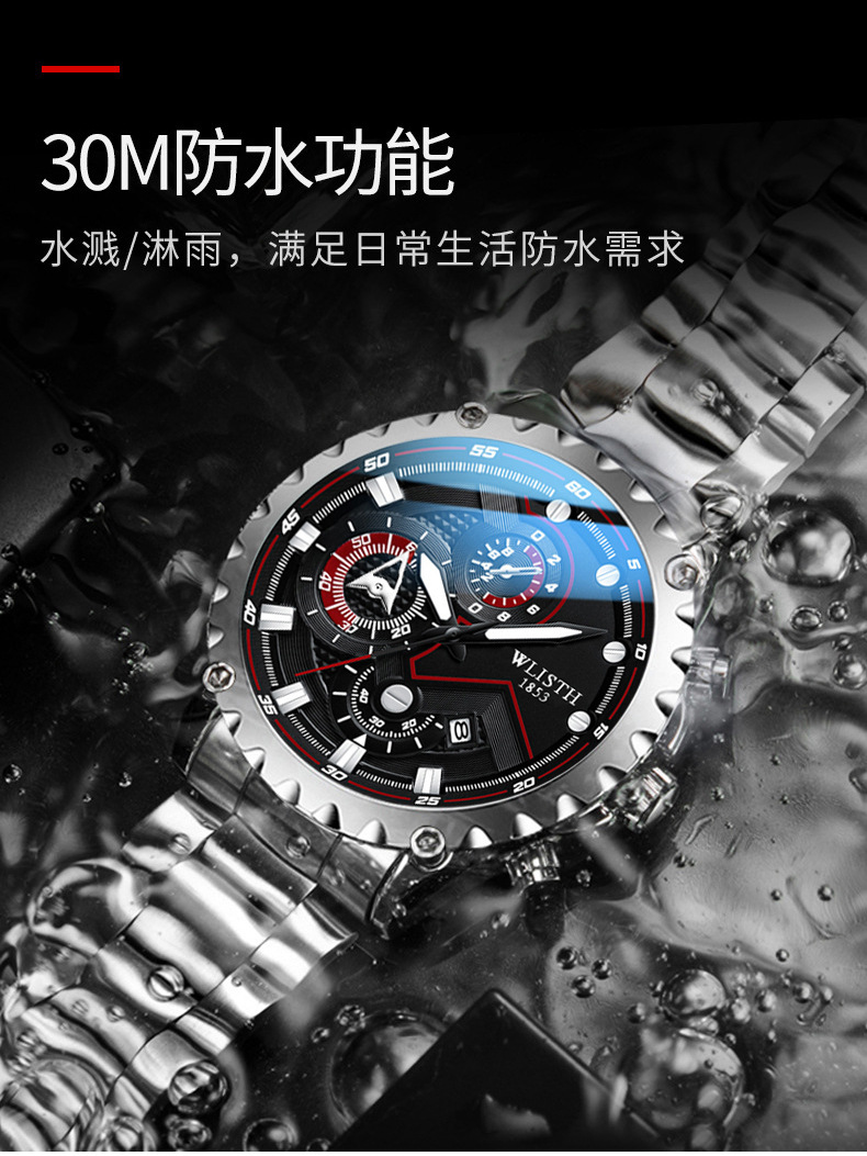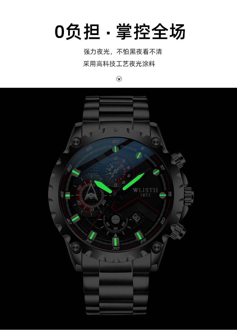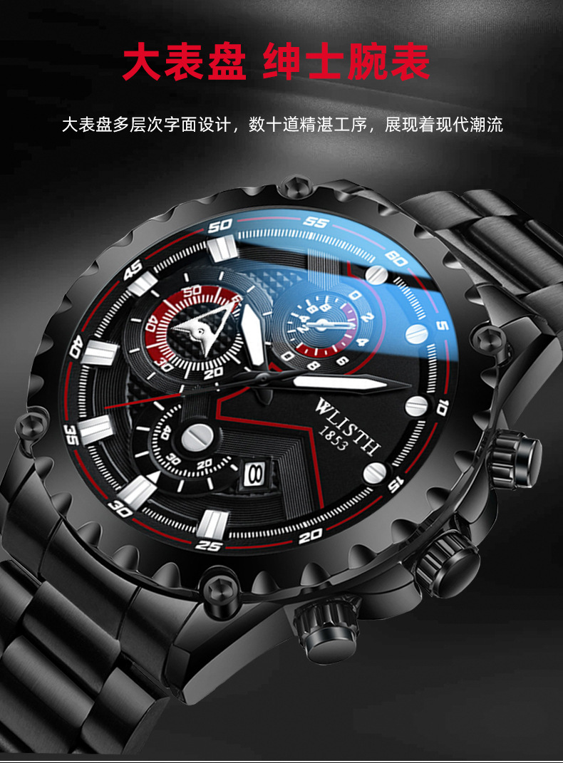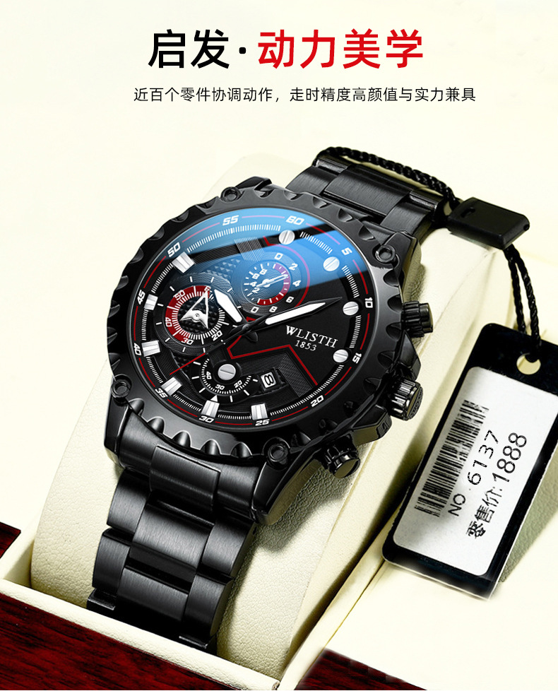 Wolis' new fashionable men's watch, a Korean version waterproof luminous quartz watch for high school students, and a sports men's watch