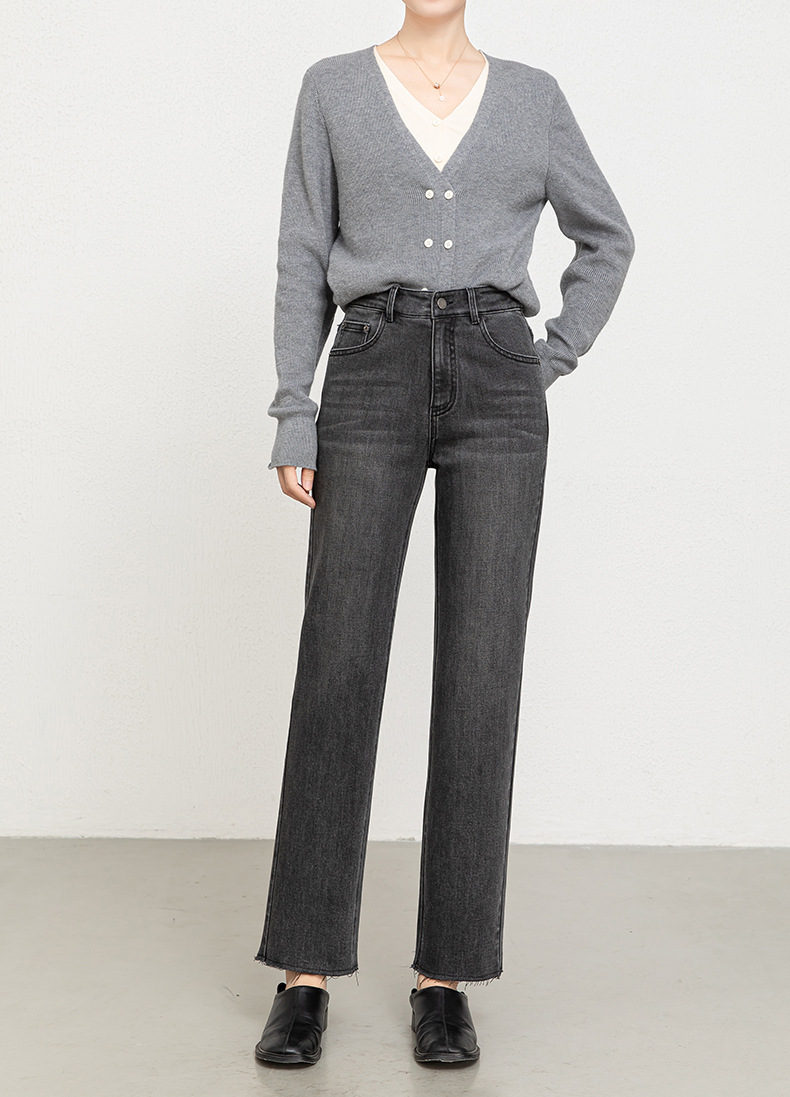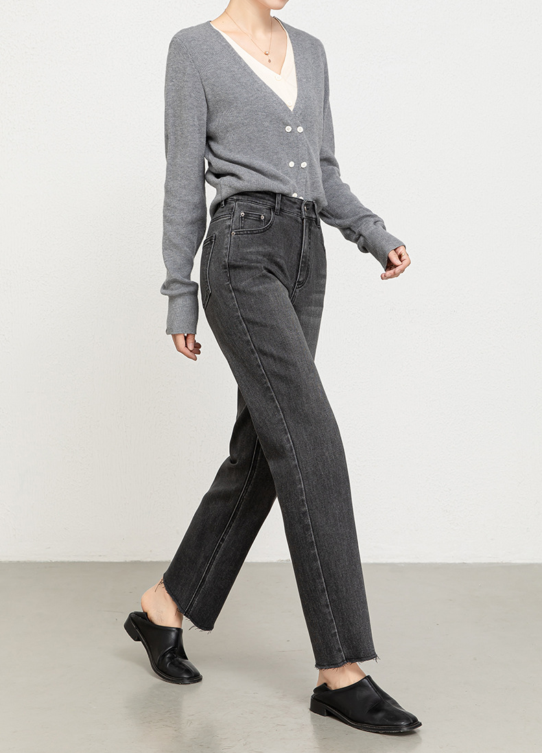 Women's 9-inch straight jeans 2026 Spring new high-waisted slimming fringed cigarette pants 8136