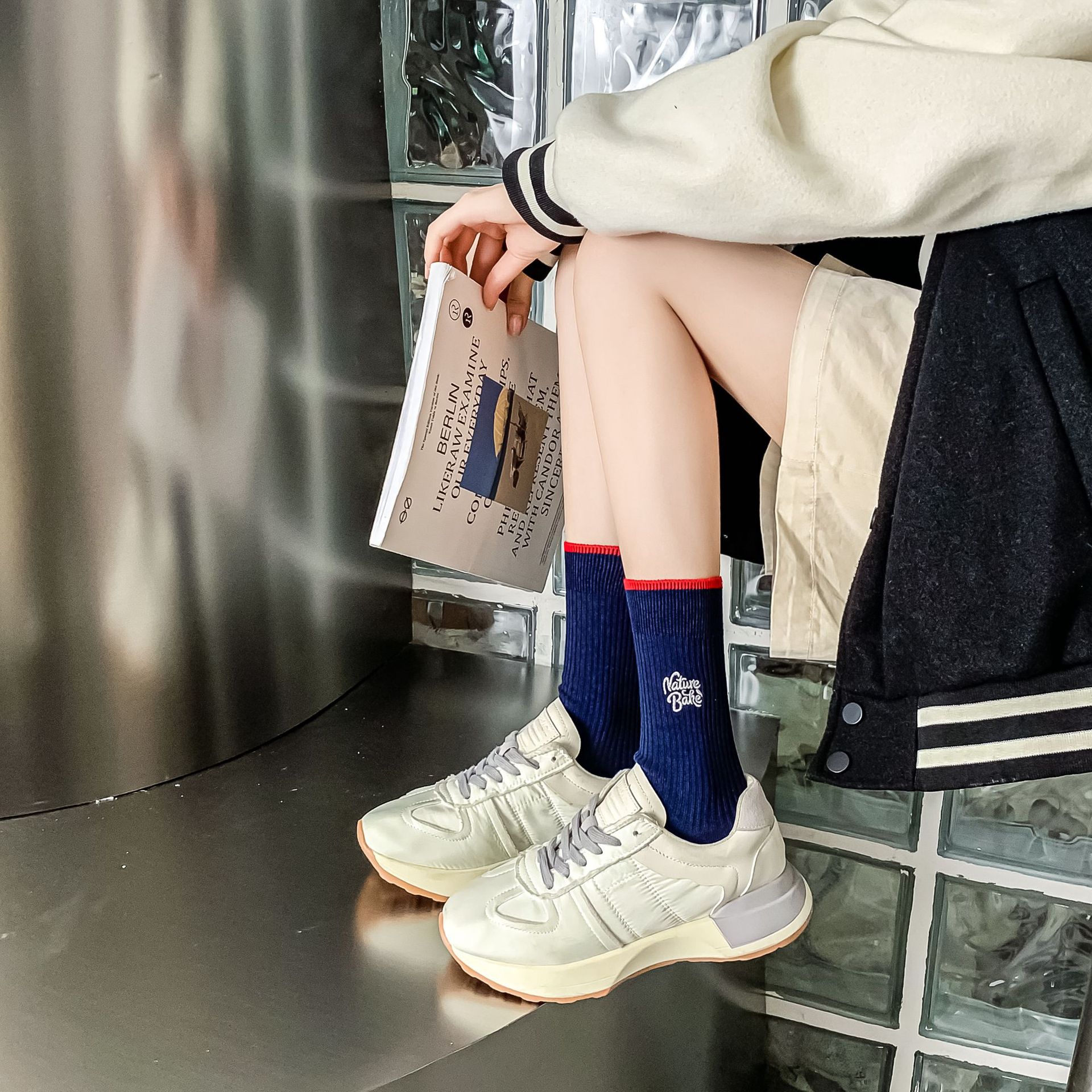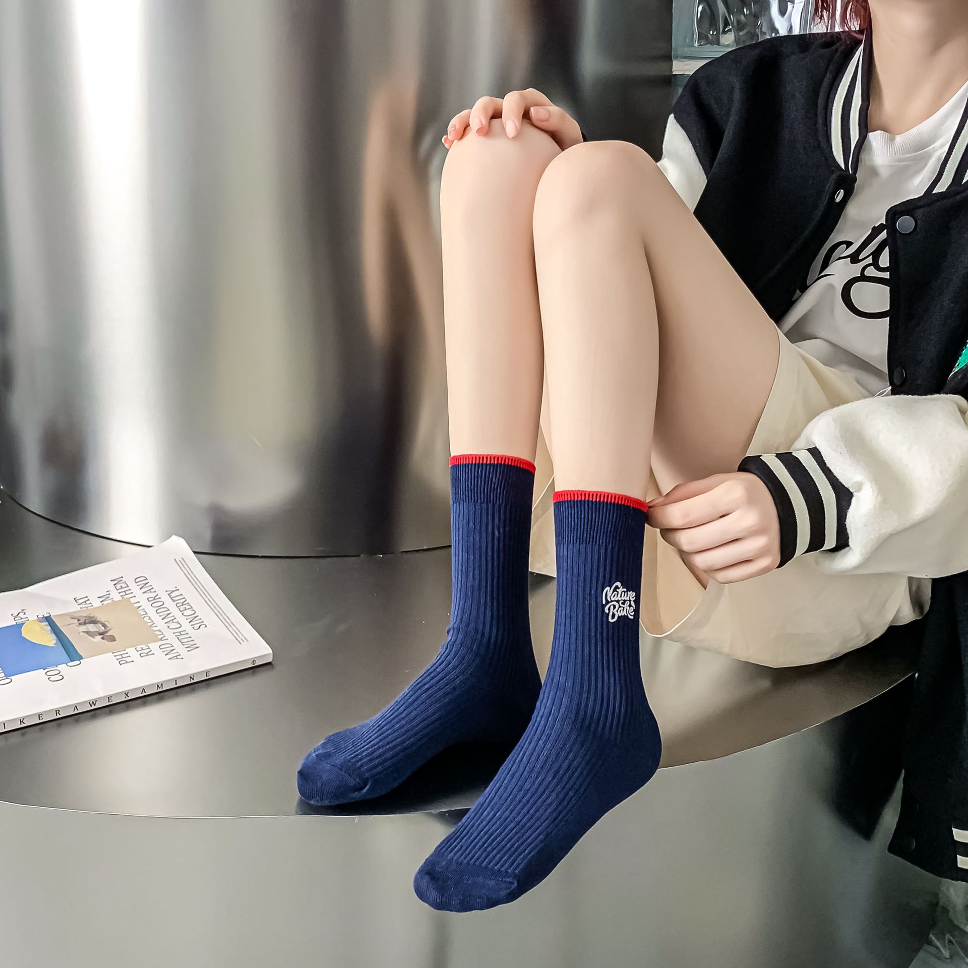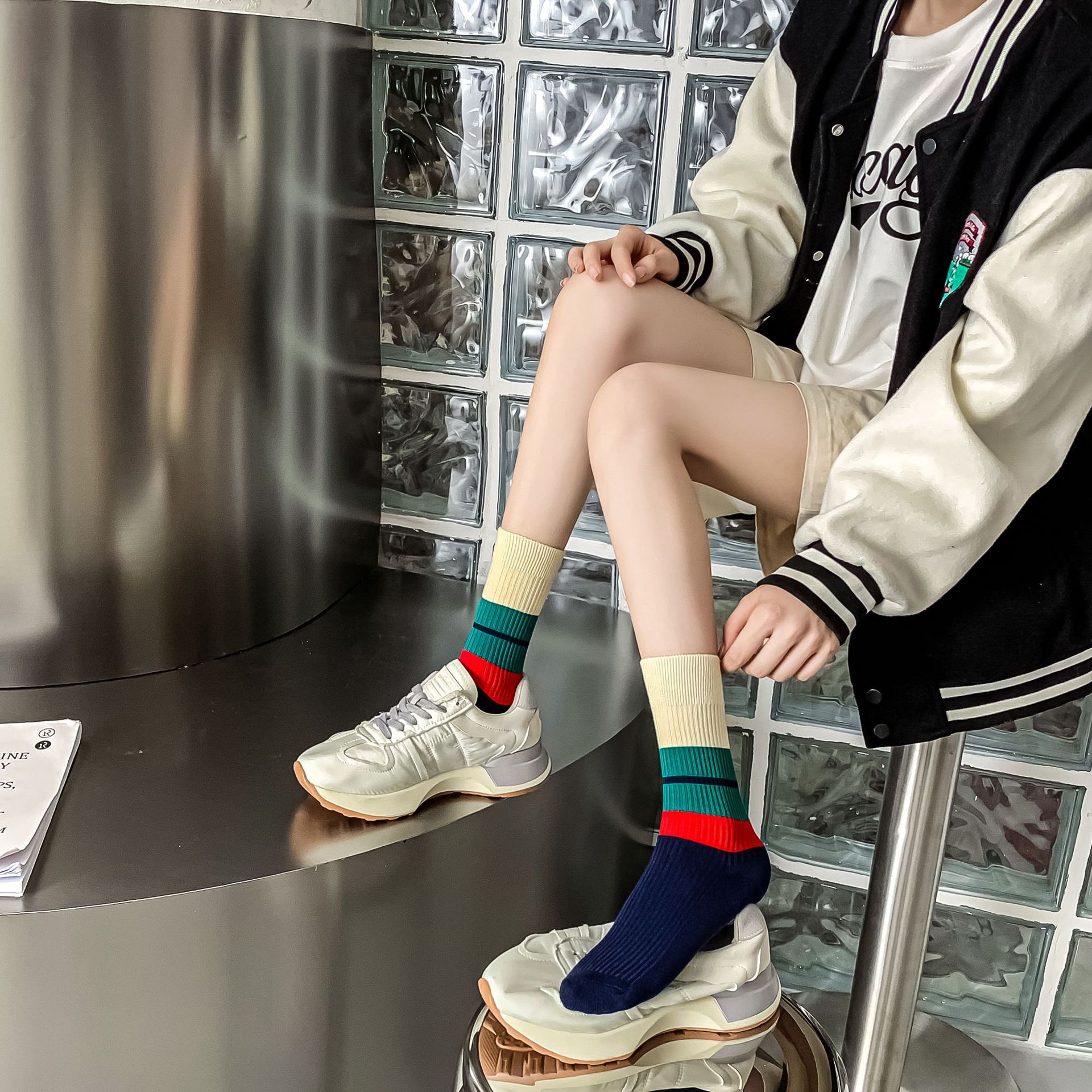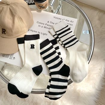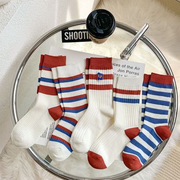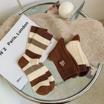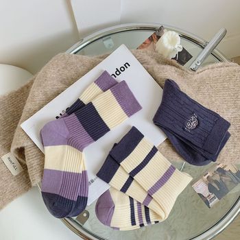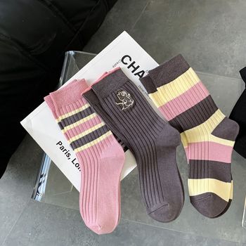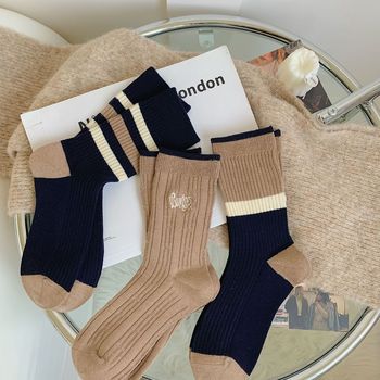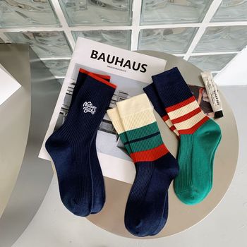 Women's autumn and winter thick mid-calf socks, ins double embroidered socks, pile socks, sports color matching, versatile long socks wholesale