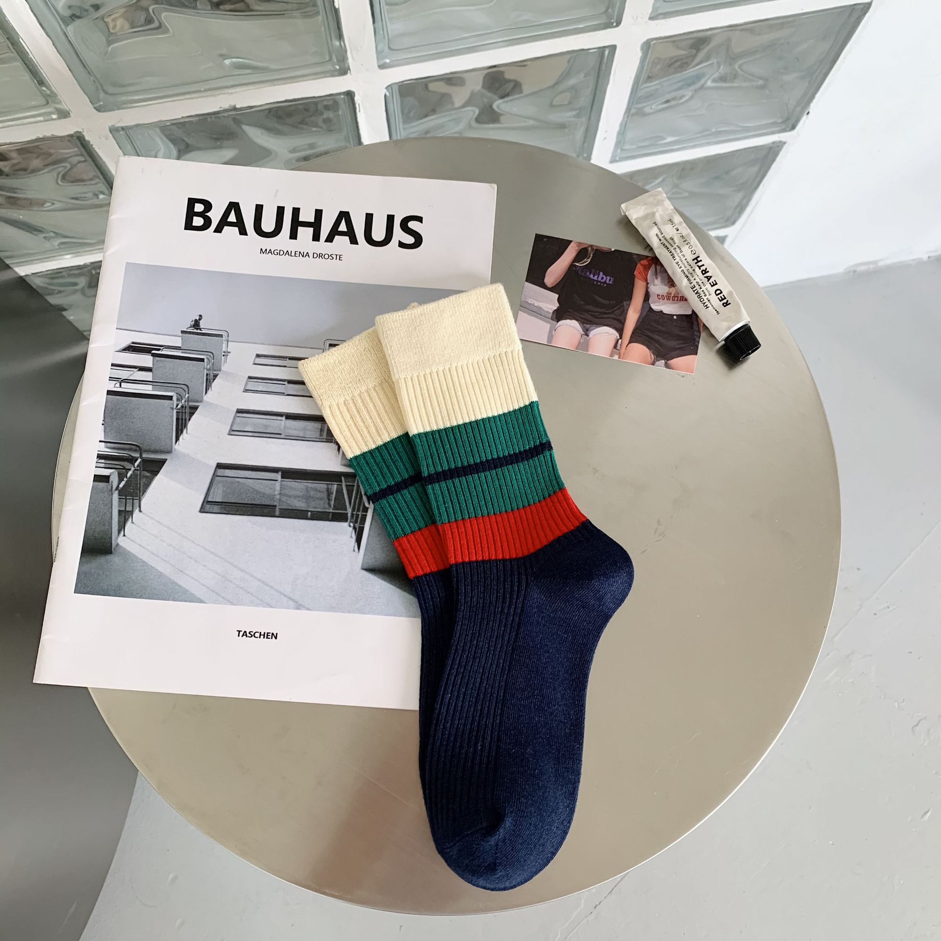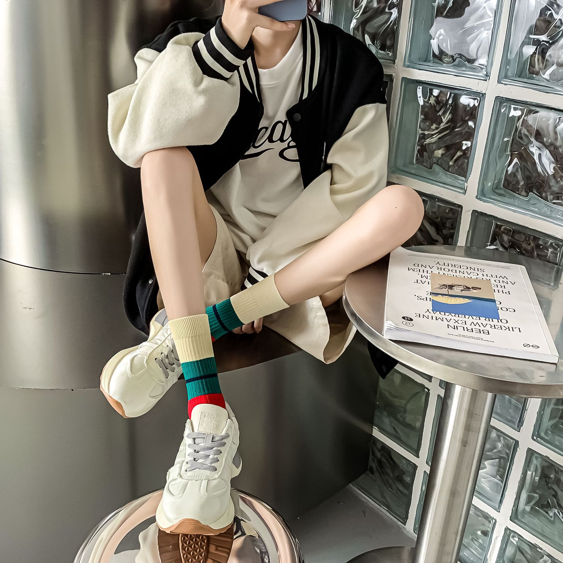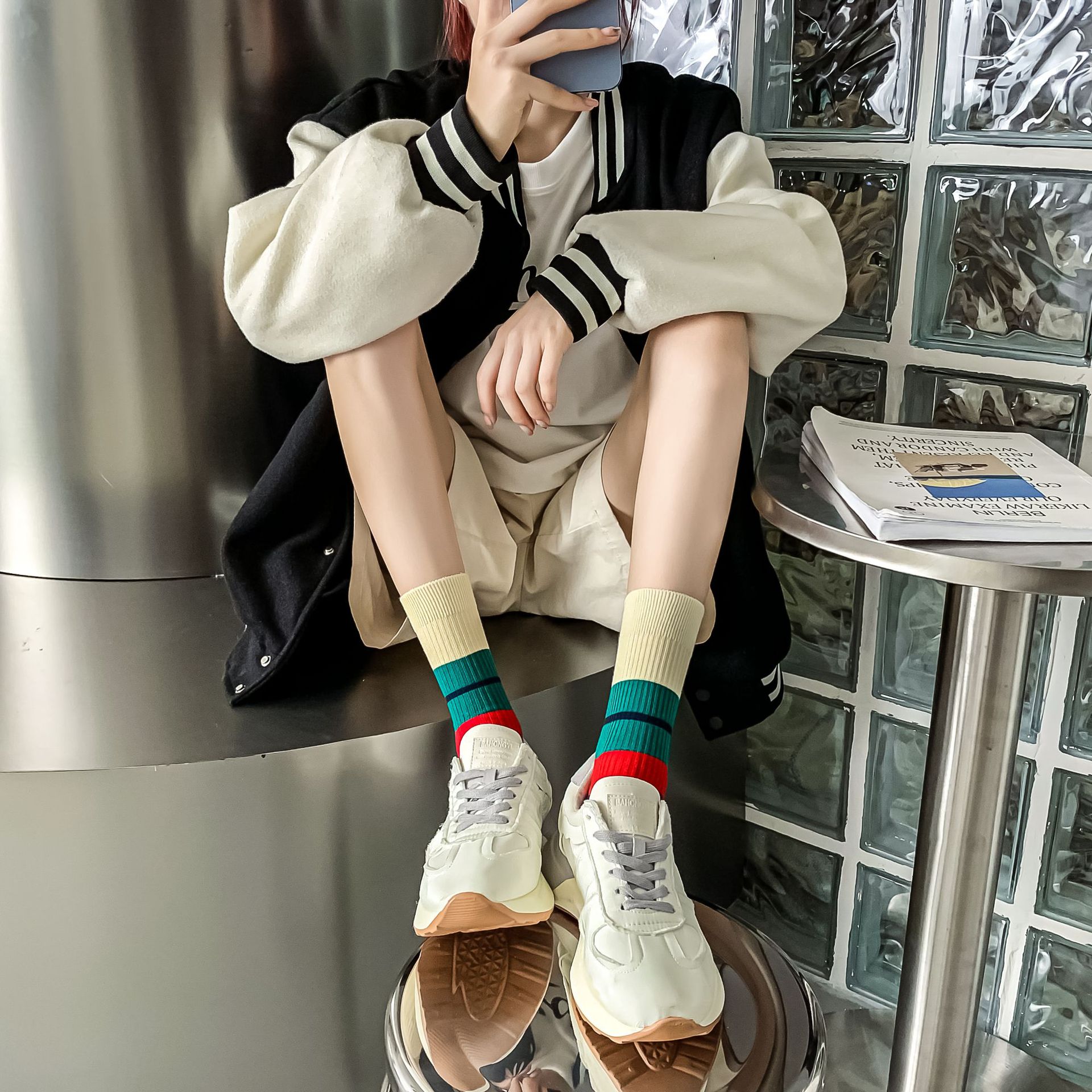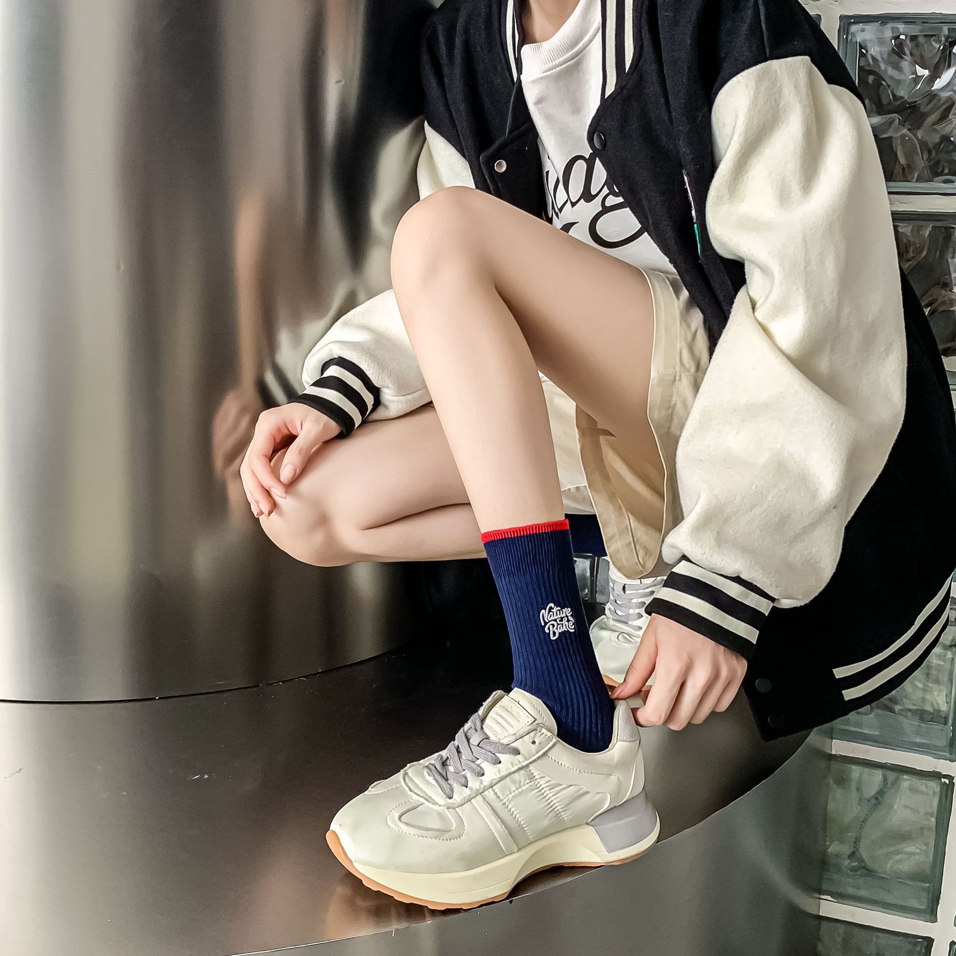 Women's autumn and winter thick mid-calf socks, ins double embroidered socks, pile socks, sports color matching, versatile long socks wholesale