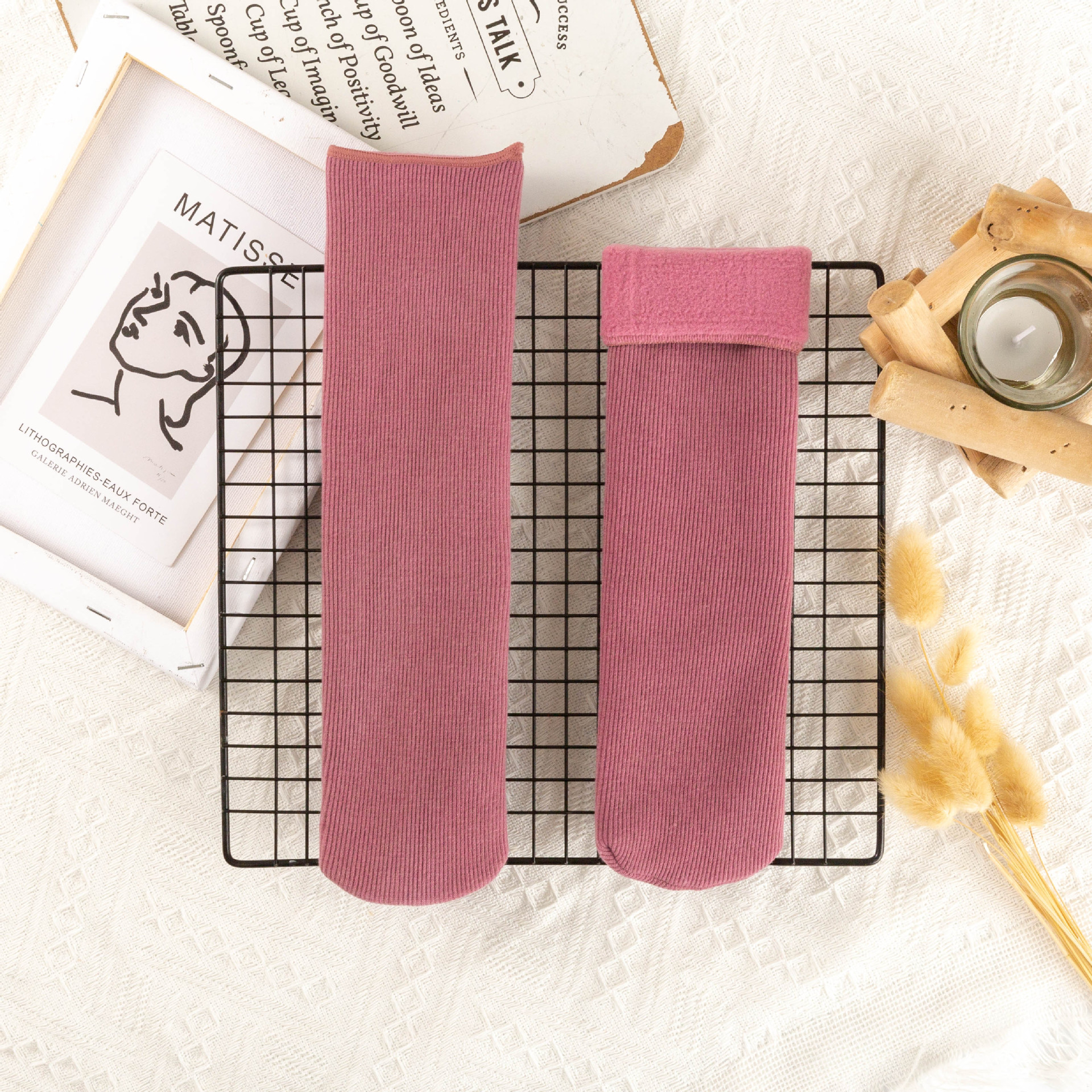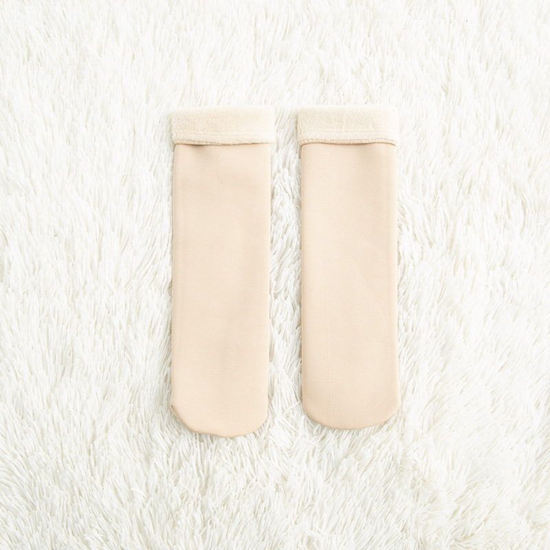 Women's autumn and winter thickened snow socks with fleece, warm solid color floor socks, flesh-colored simple and versatile postpartum socks
