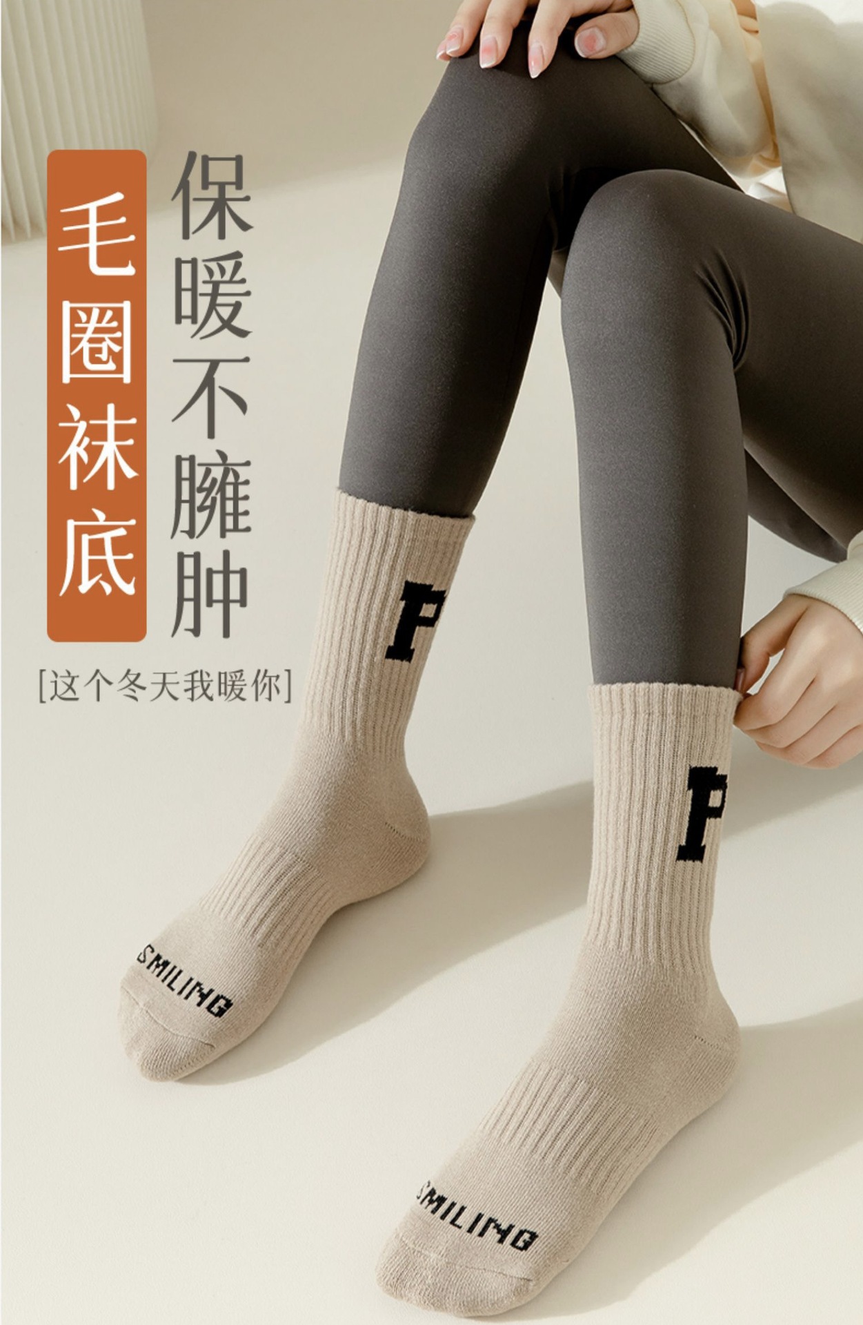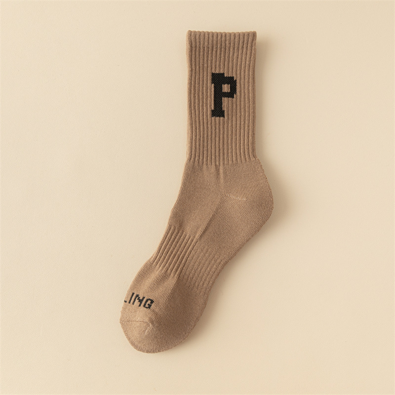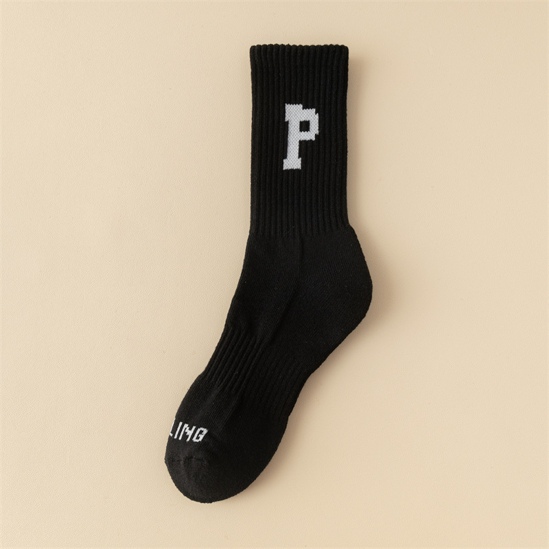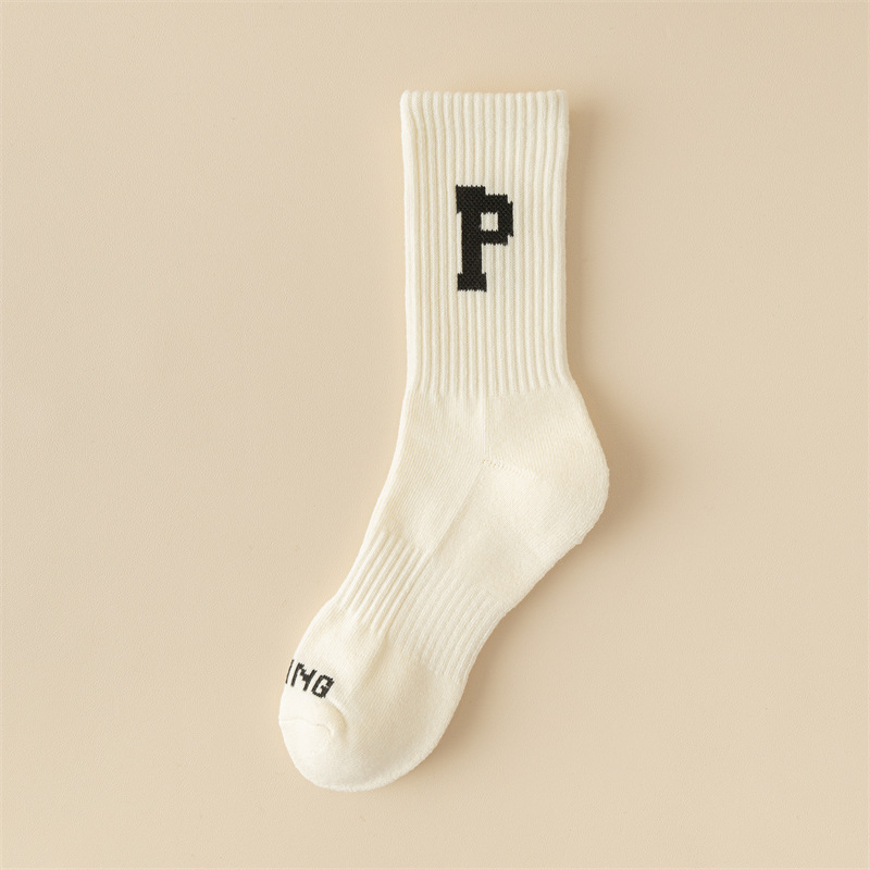 Women's autumn and winter woolen socks, warm towel bottom, letter medium long tube, couple thickened ins sports with shark pants