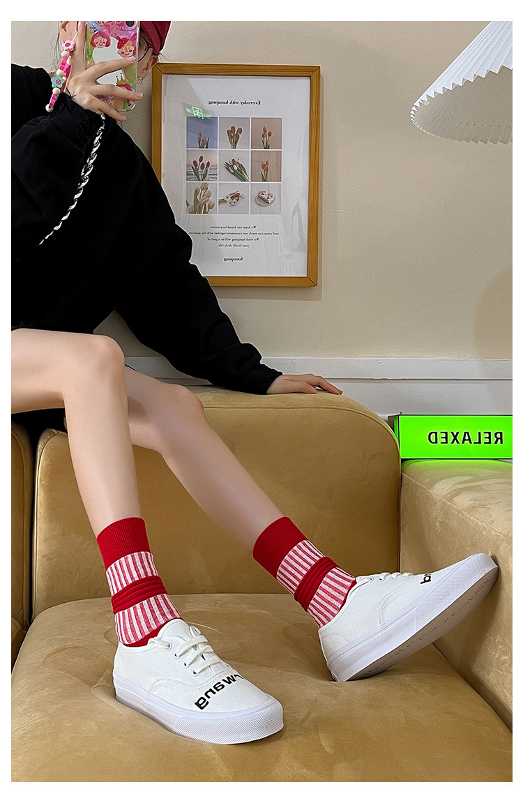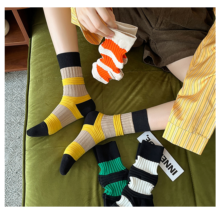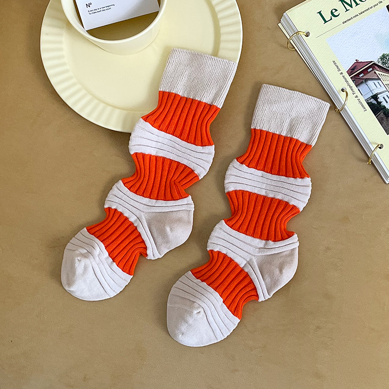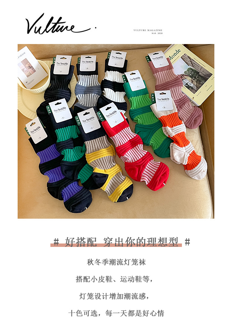 Women's autumn retro and unique lantern socks, women's mid-calf combed cotton long socks, sweat-absorbing and breathable women's socks for hair replacement