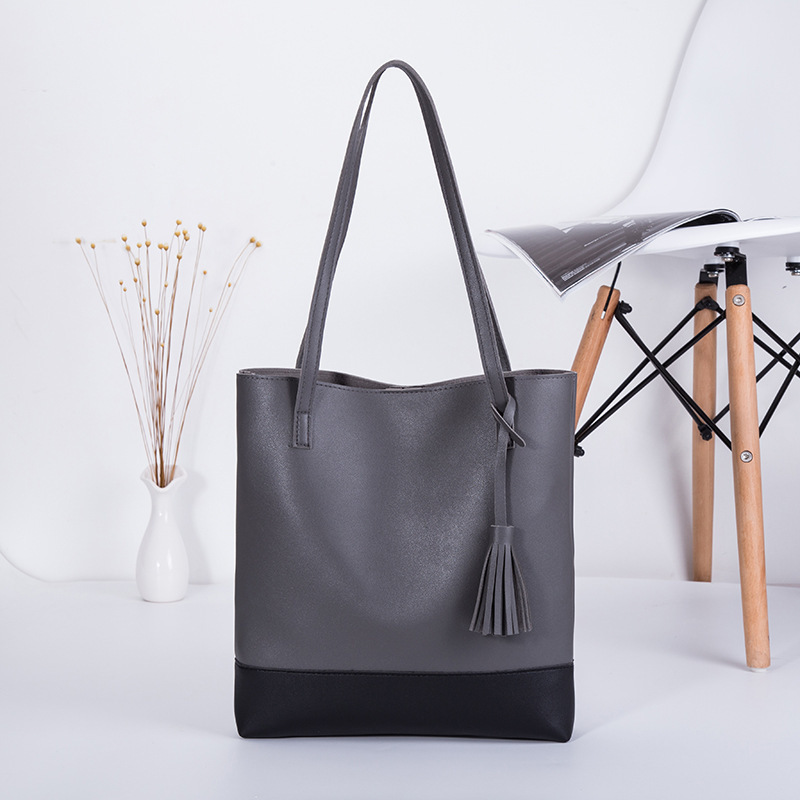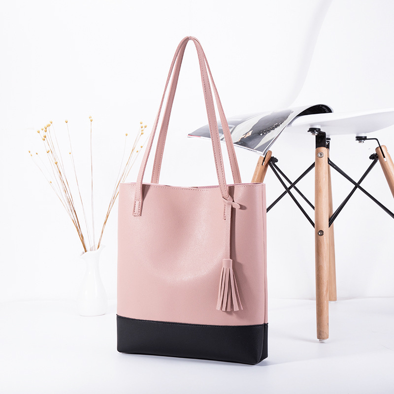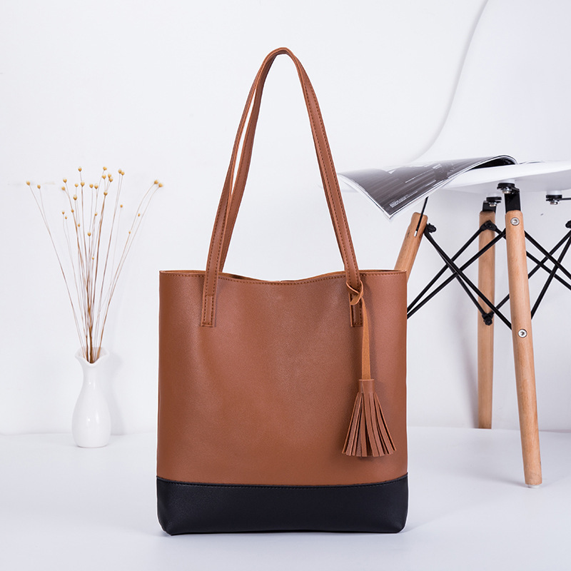 Women's bag 2021 New style contrasting color large-capacity fringed shopping handbag, fashionable and casual foreign trade bag, school style