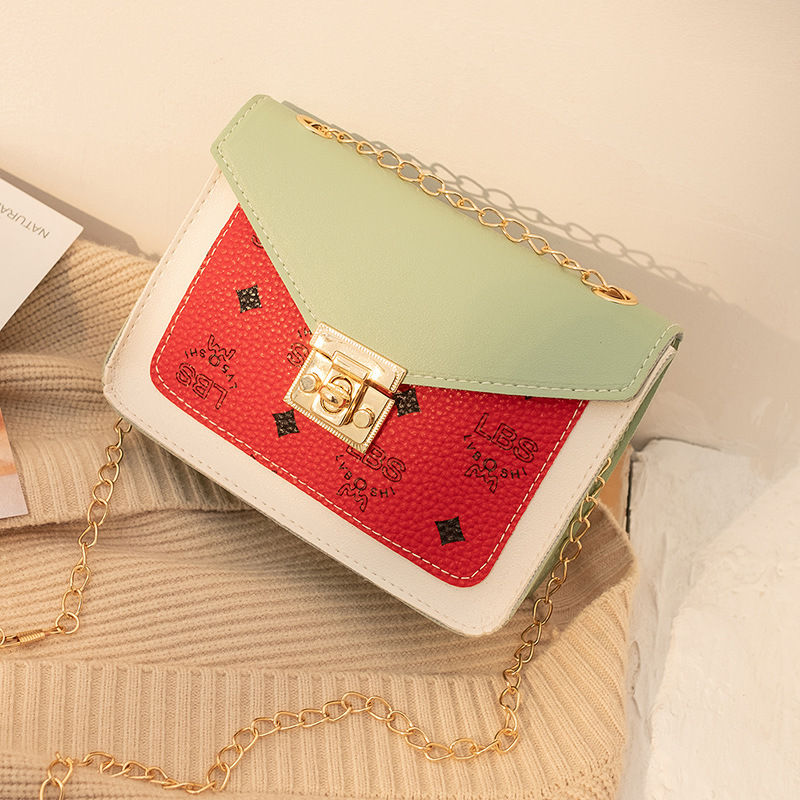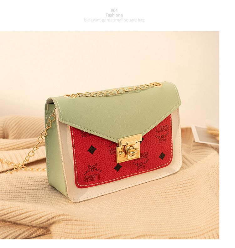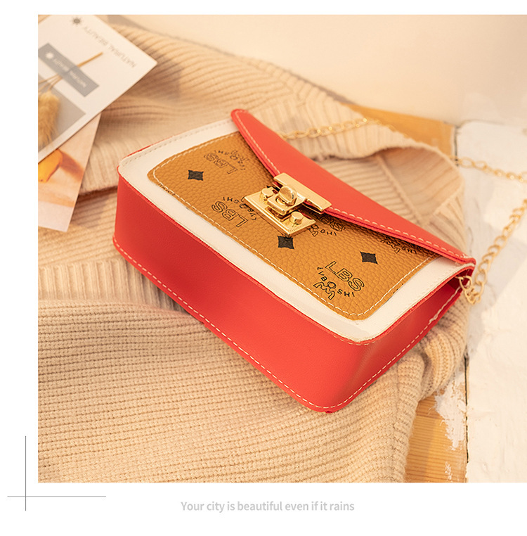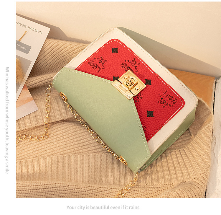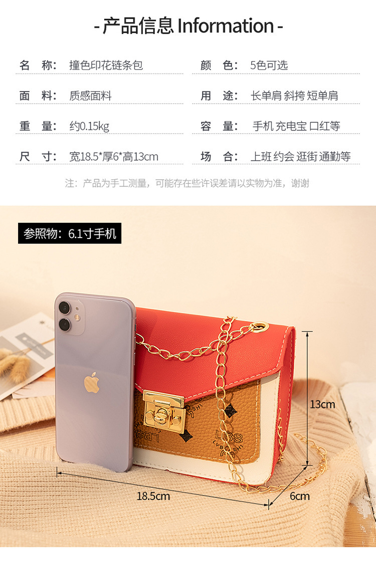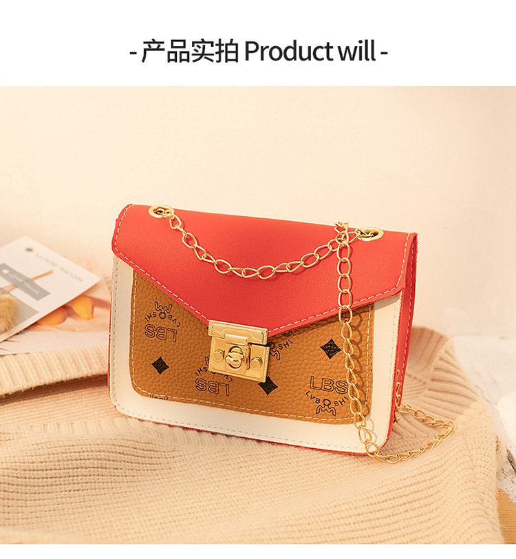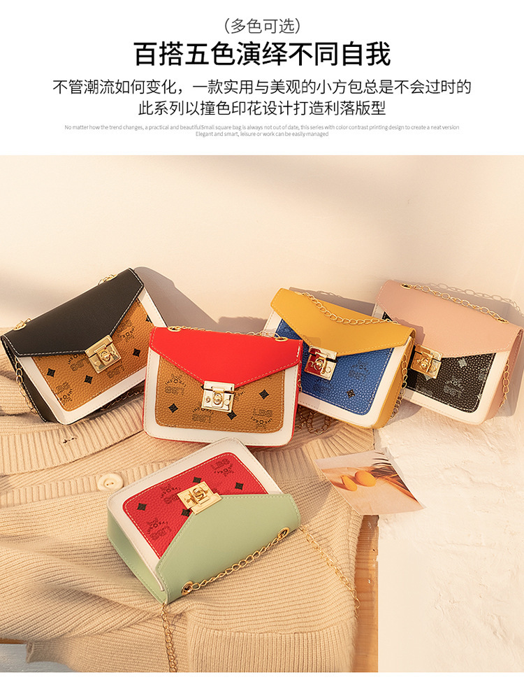 Women's bag 2021 new style English printed color-blocking lock chain small square bag, fashionable and casual phone bag in stock