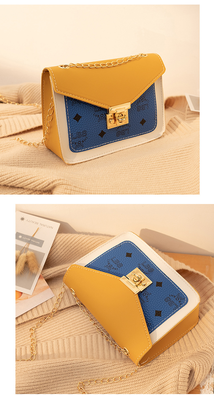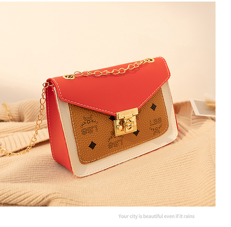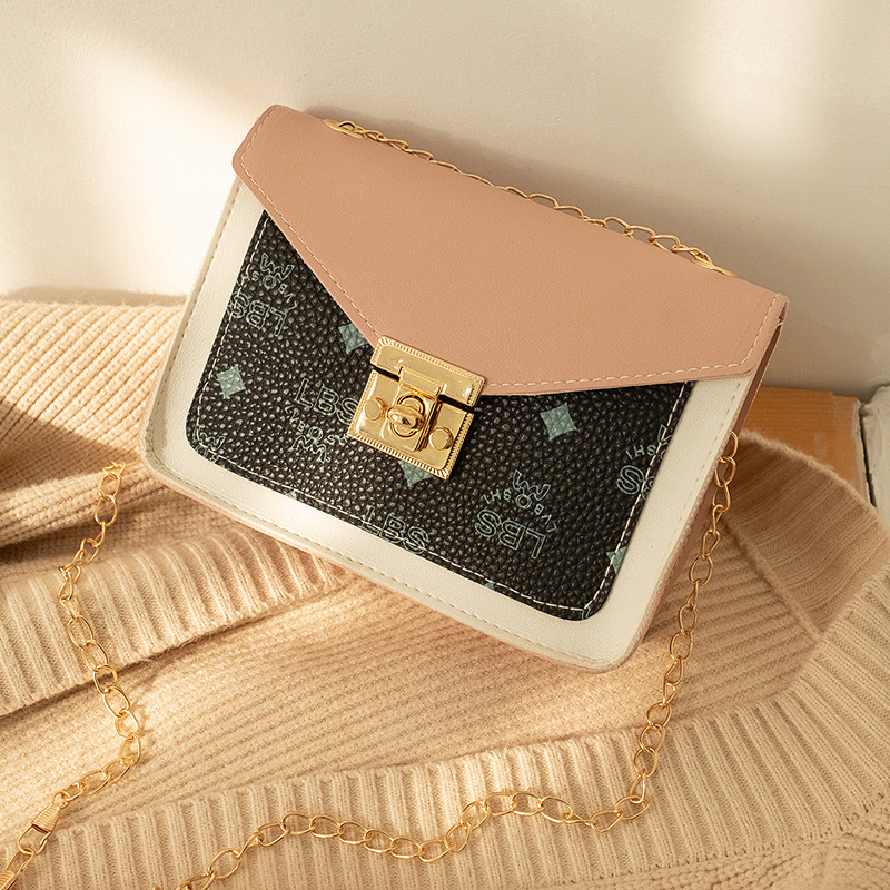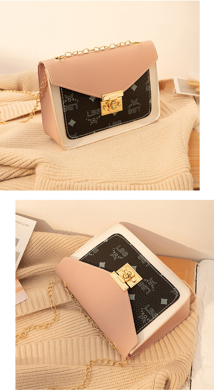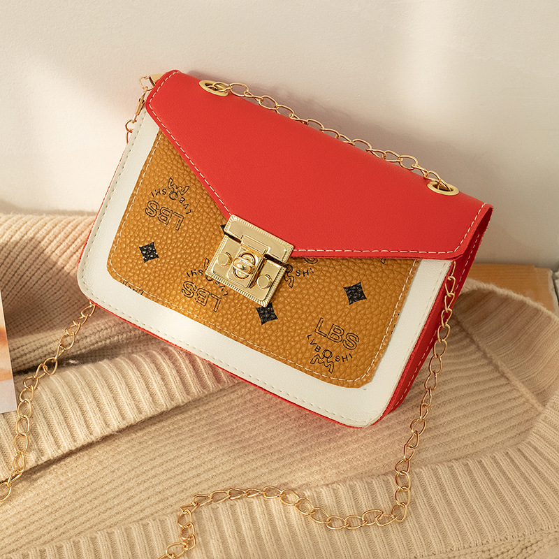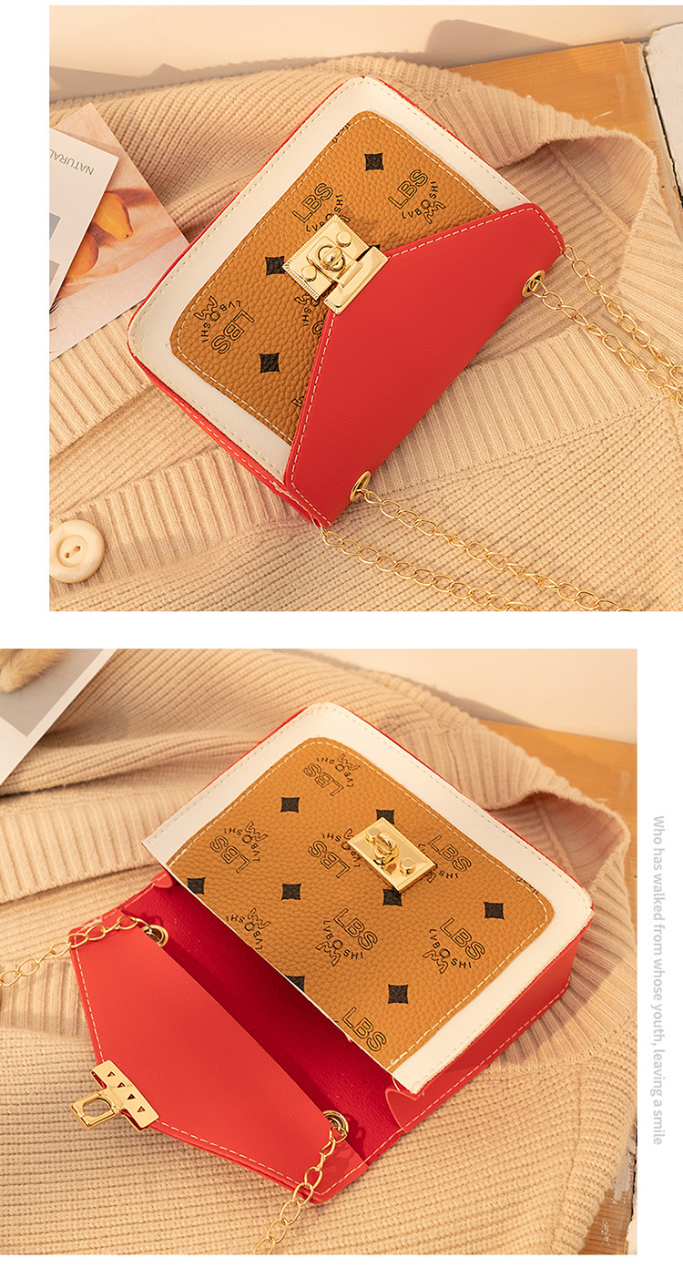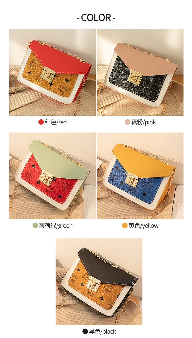 Women's bag 2021 new style English printed color-blocking lock chain small square bag, fashionable and casual phone bag in stock