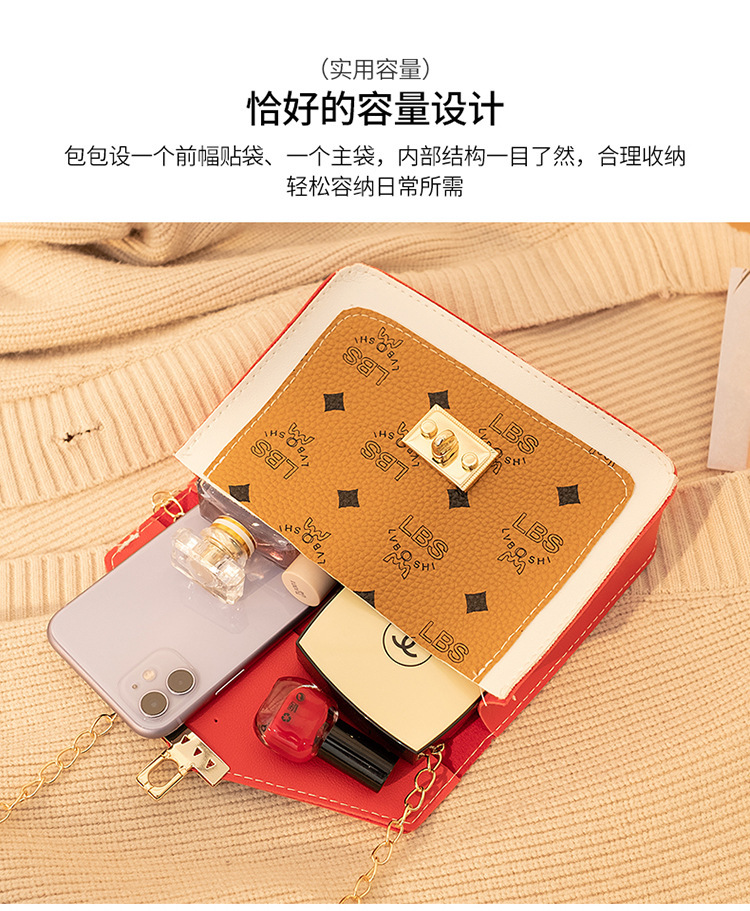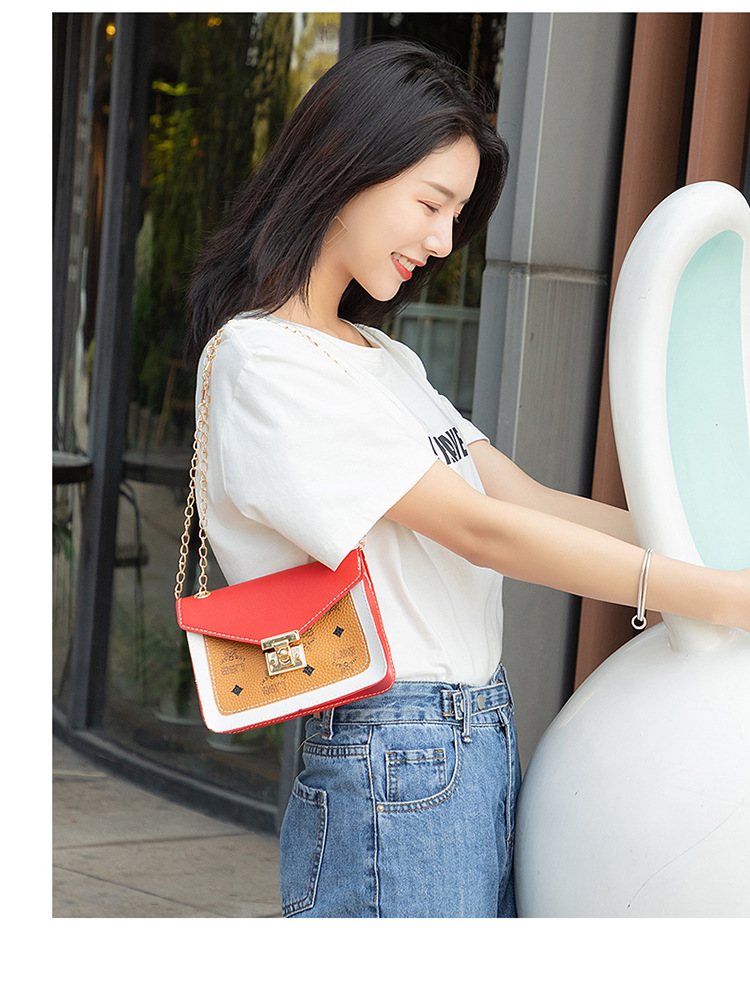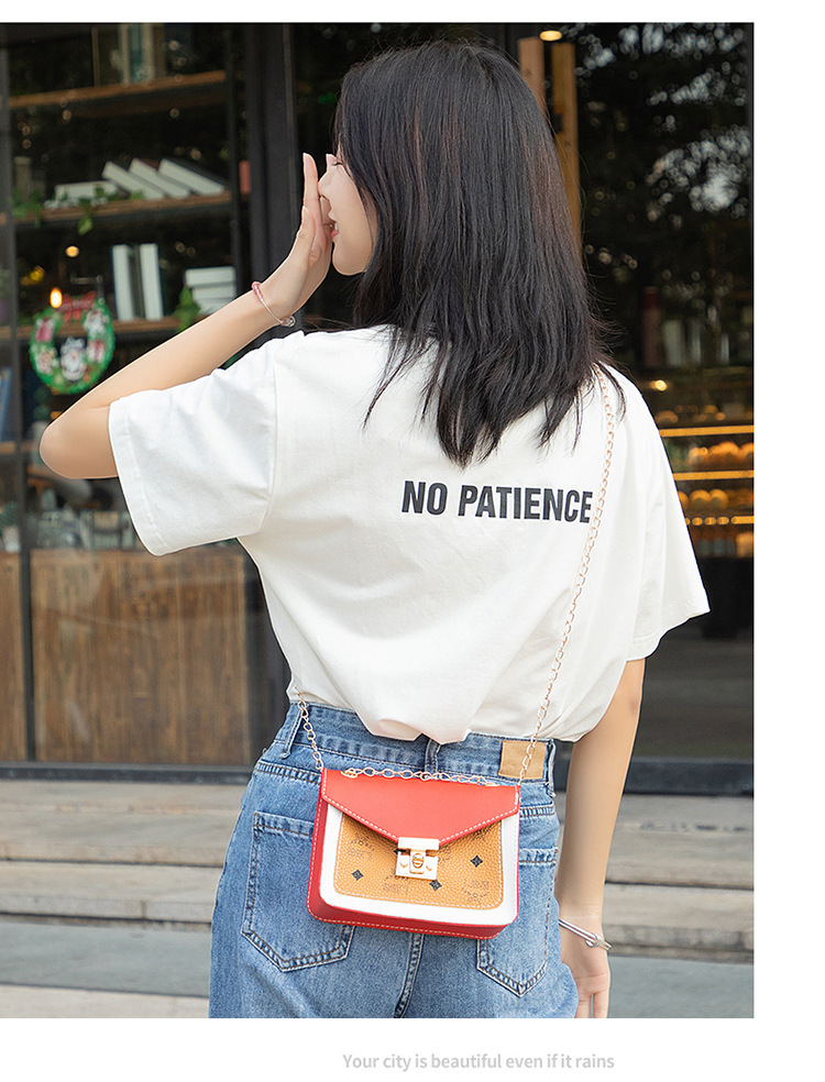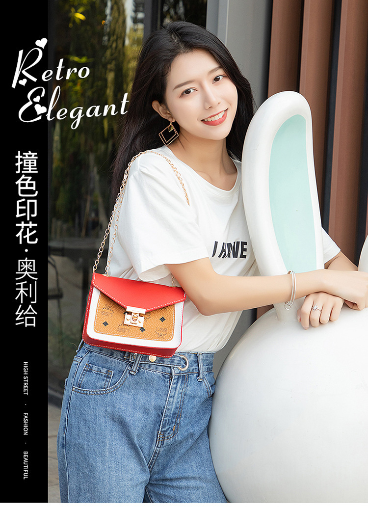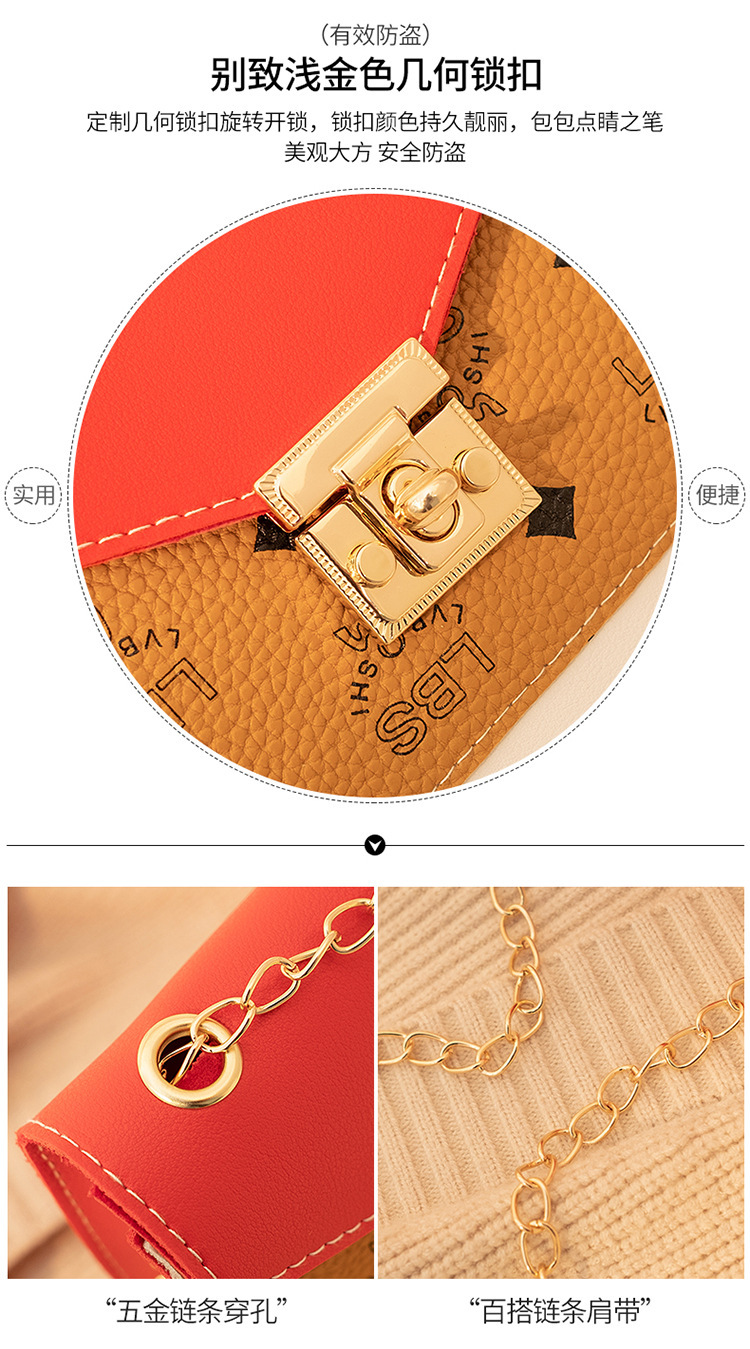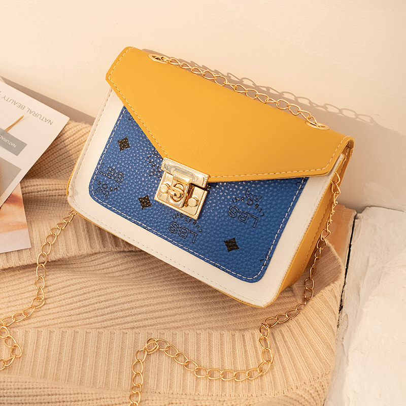 Women's bag 2021 new style English printed color-blocking lock chain small square bag, fashionable and casual phone bag in stock