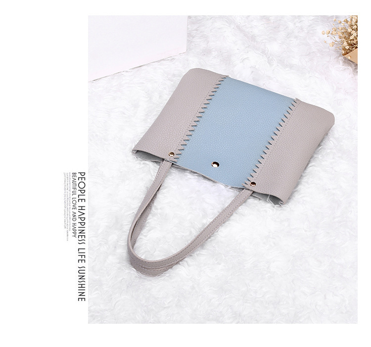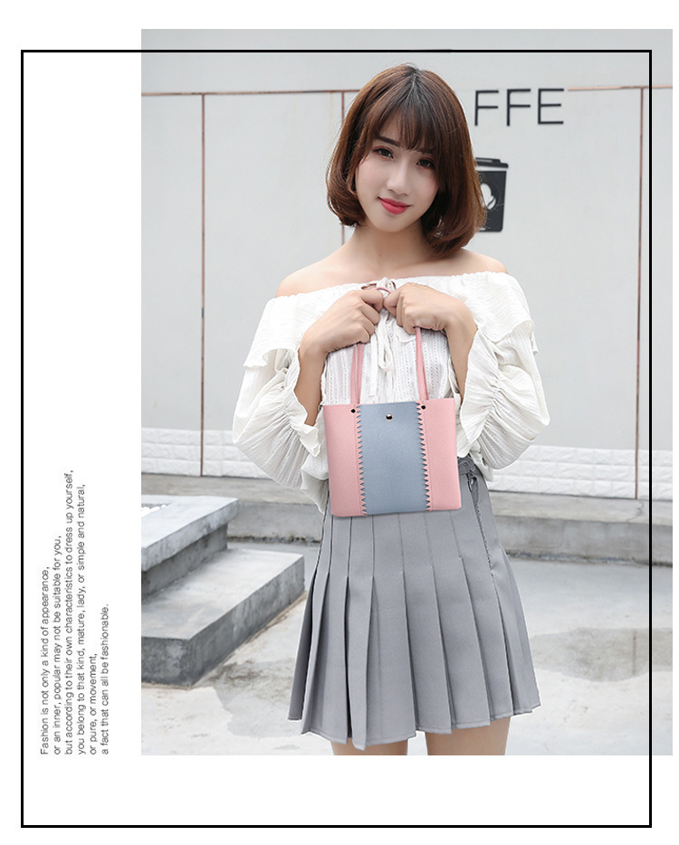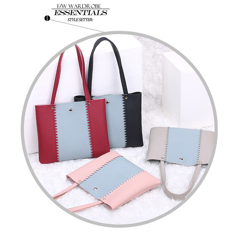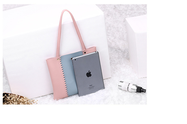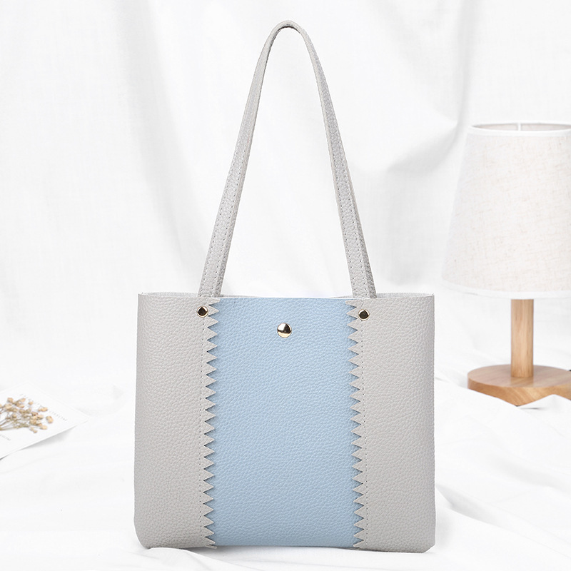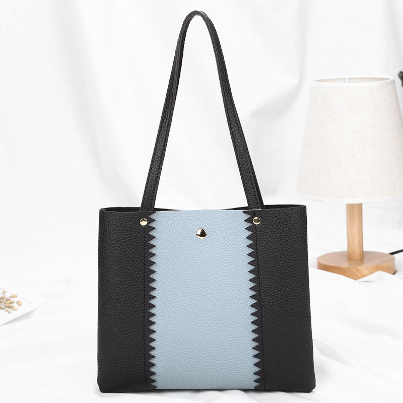 Women's bag 2021 New style lychee pattern contrasting color handbag, bucket bag, fashionable casual simple shopping bag, gift bag