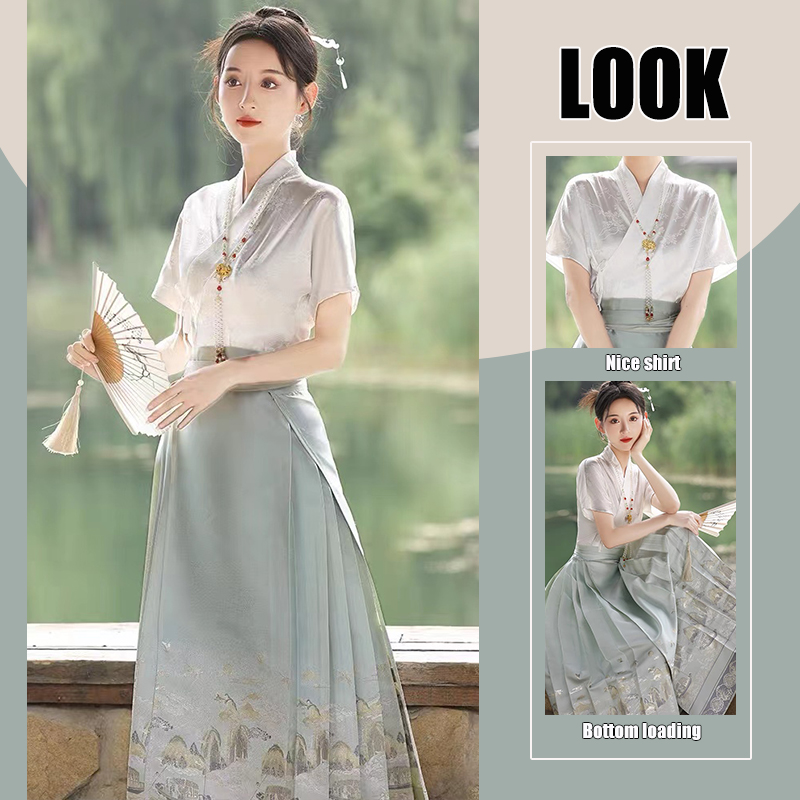 Women's clothing 2025 Summer New Style New Chinese Style improved Chinese style short-sleeved Hanfu Pleated horse face skirt National Trend Two-piece set