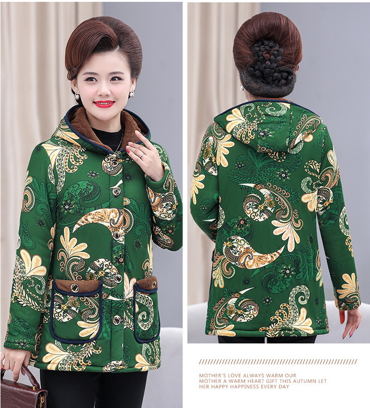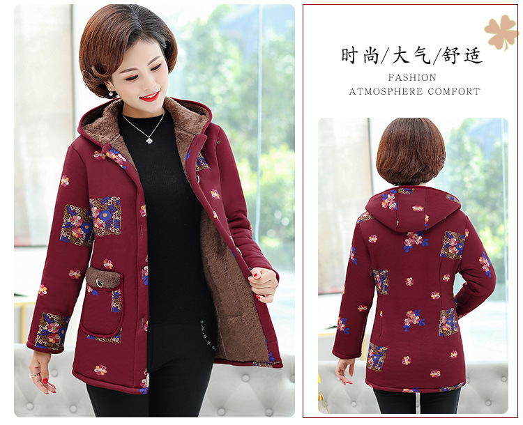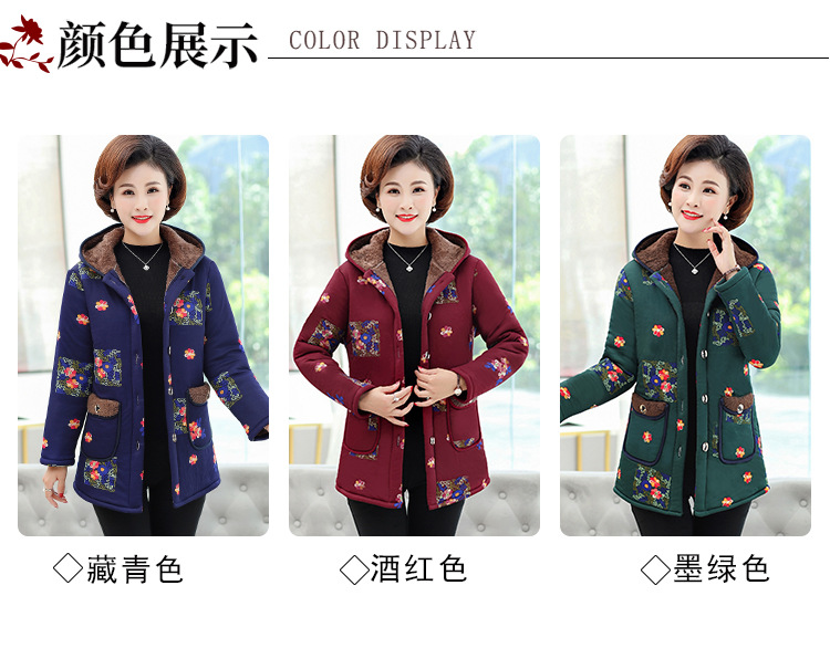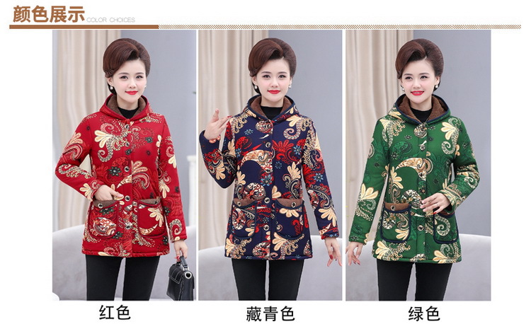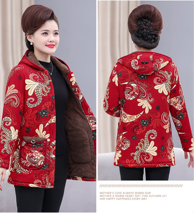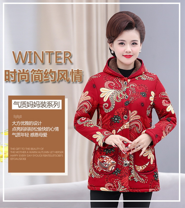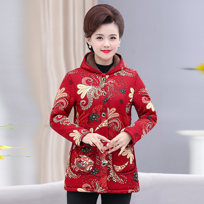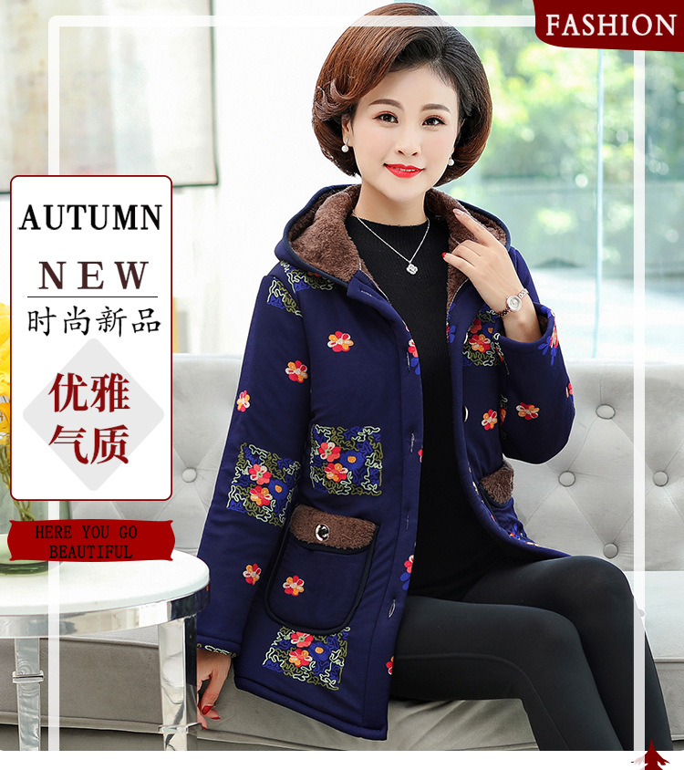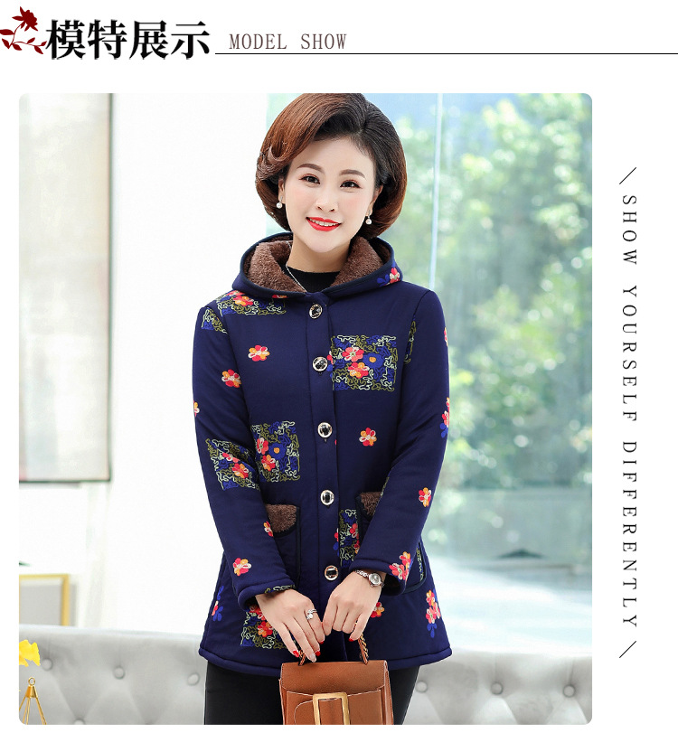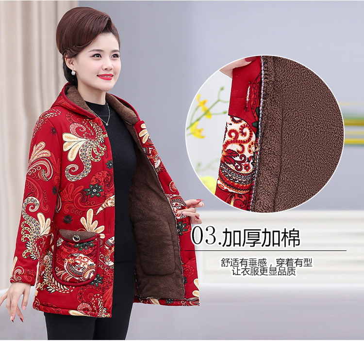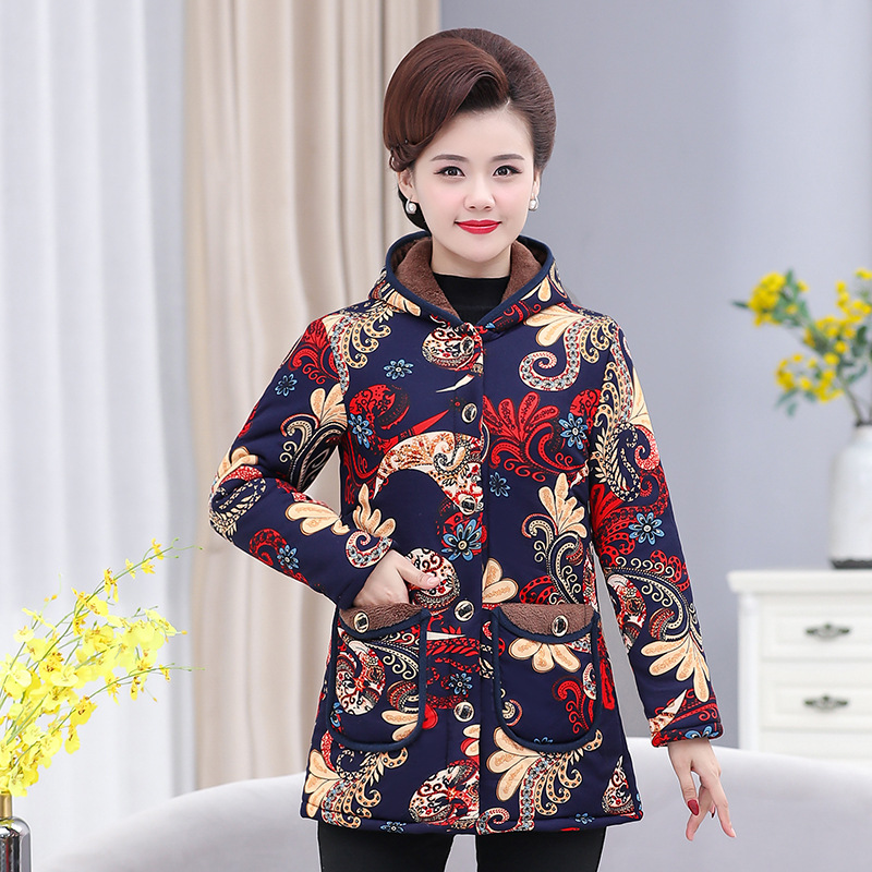 Women's clothing for middle-aged and elderly people, cotton-padded jackets for mothers, autumn and winter coats with fleece and thickened cotton-padded clothes, large-sized cotton-padded jackets for grandmothers aged 40-50-60