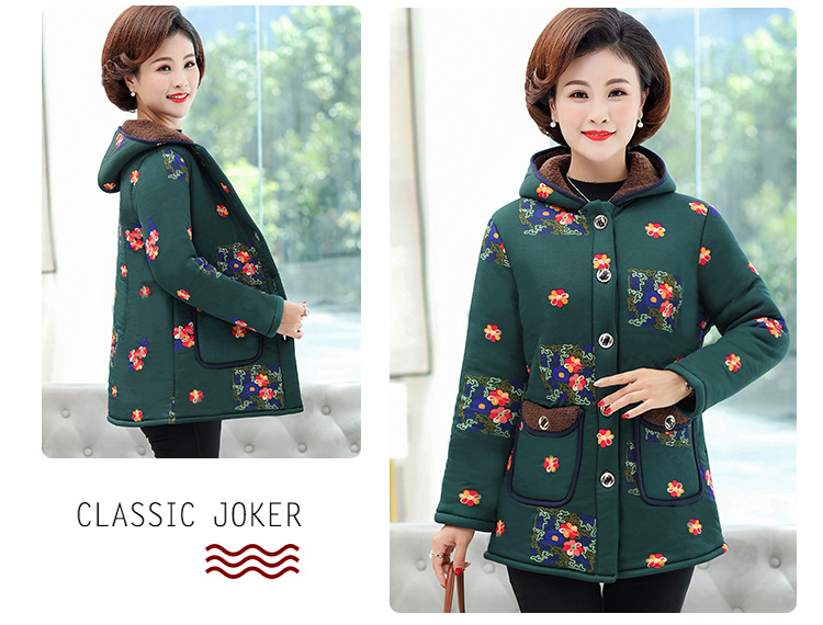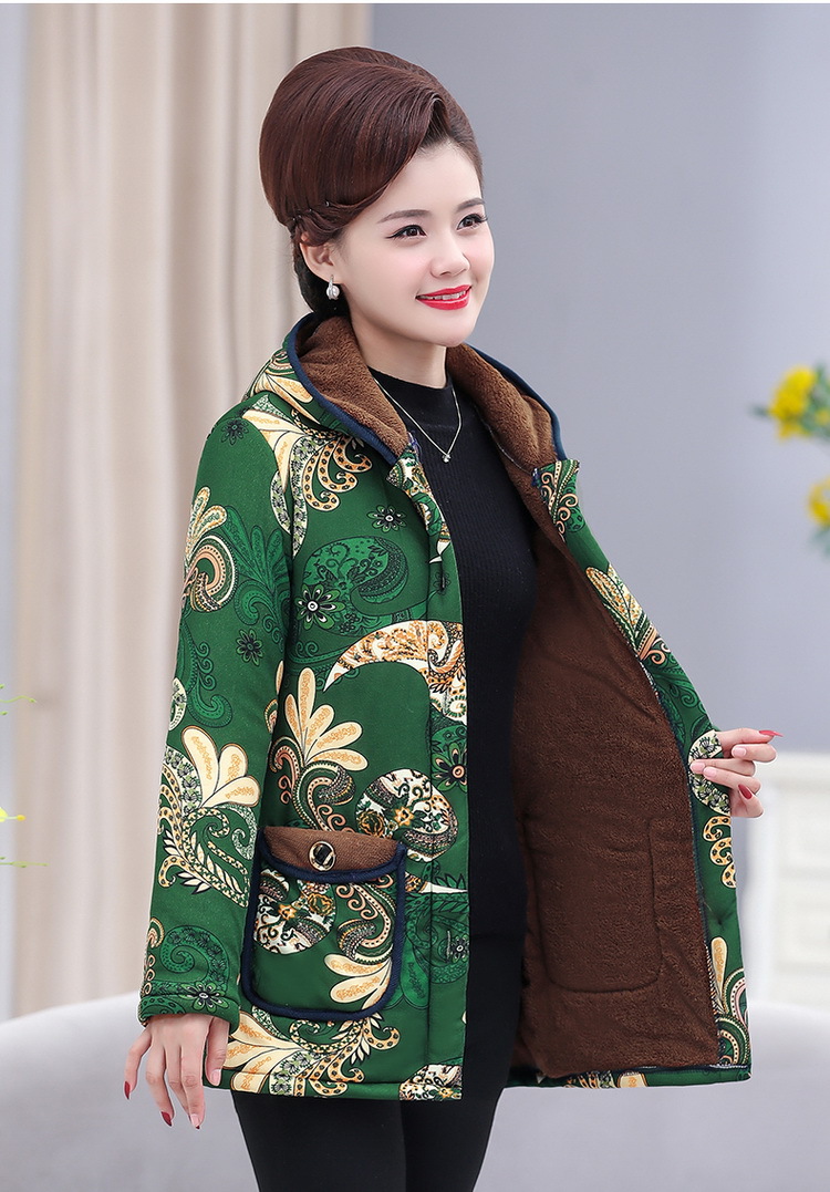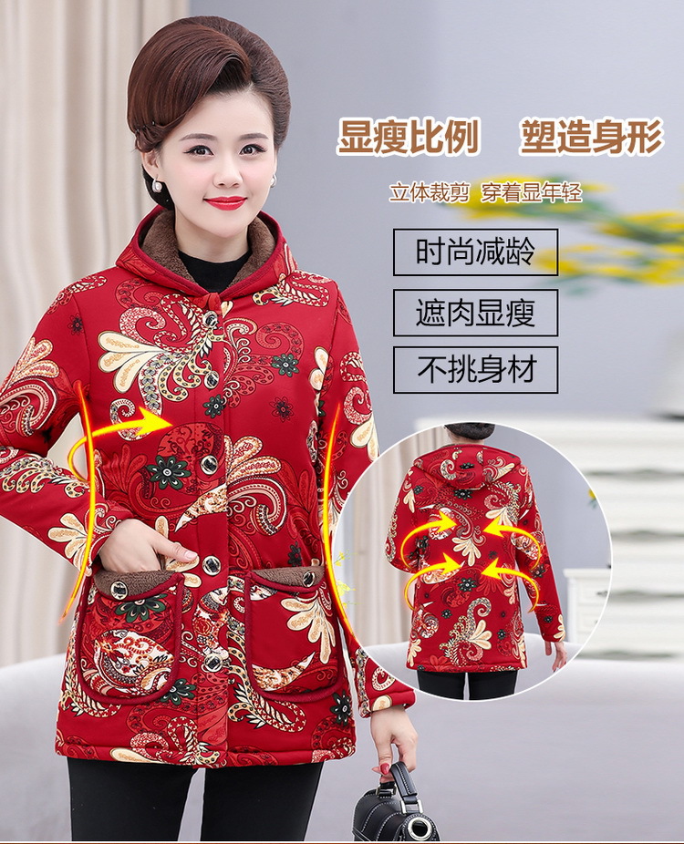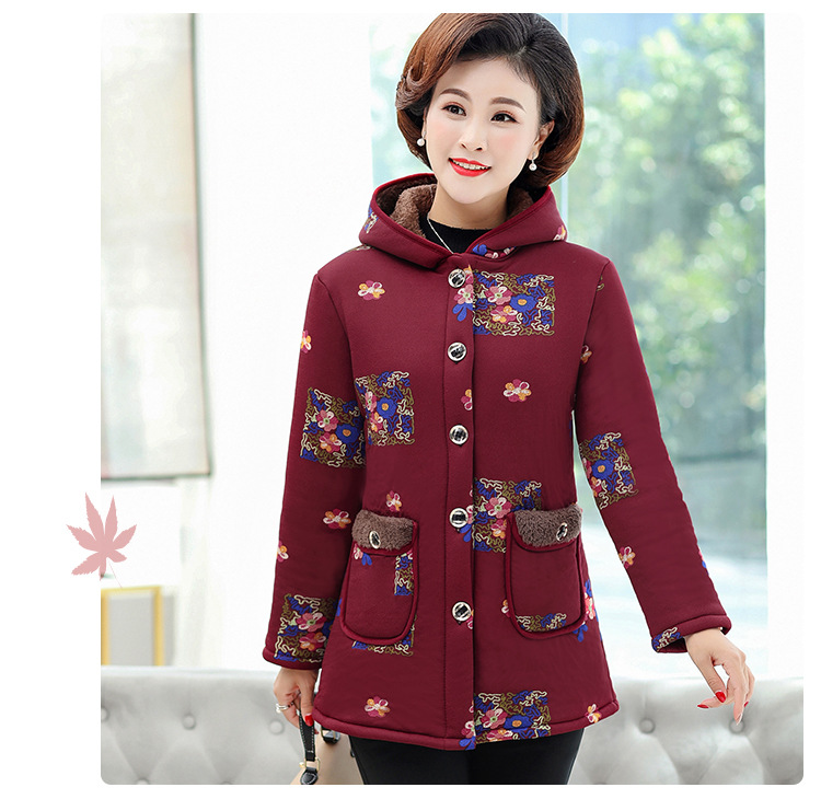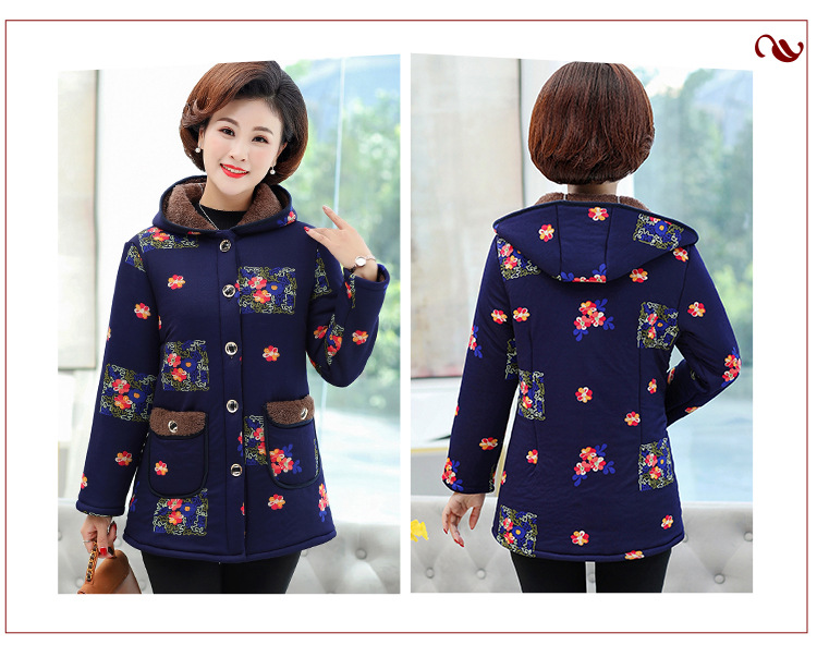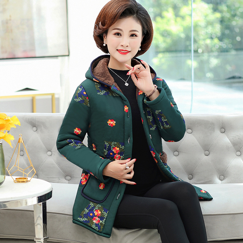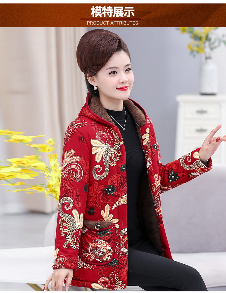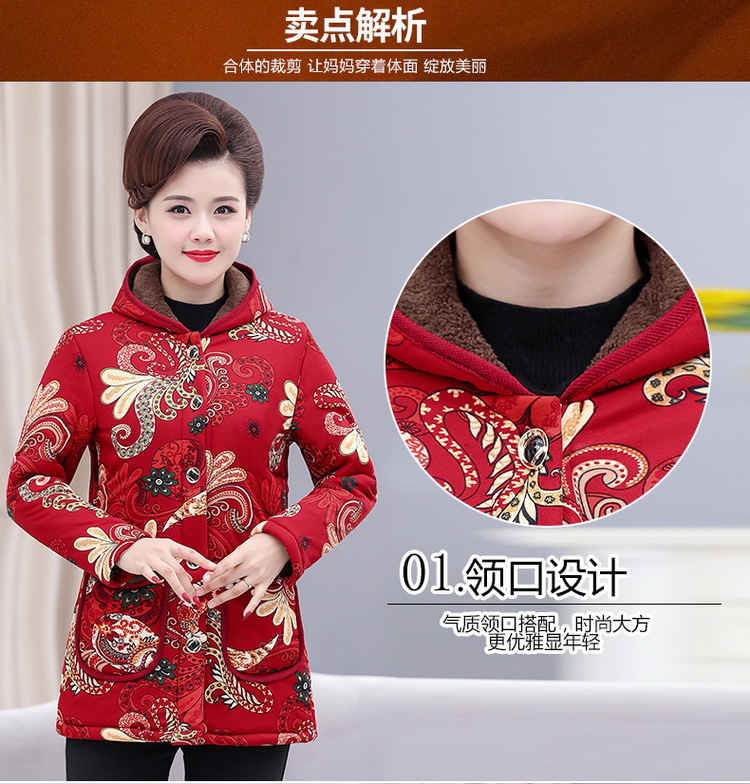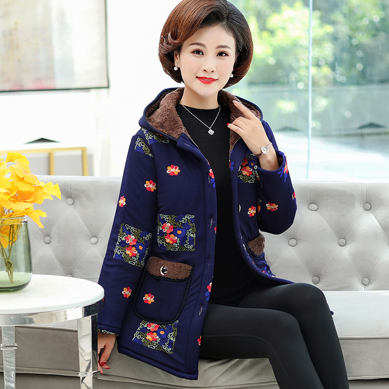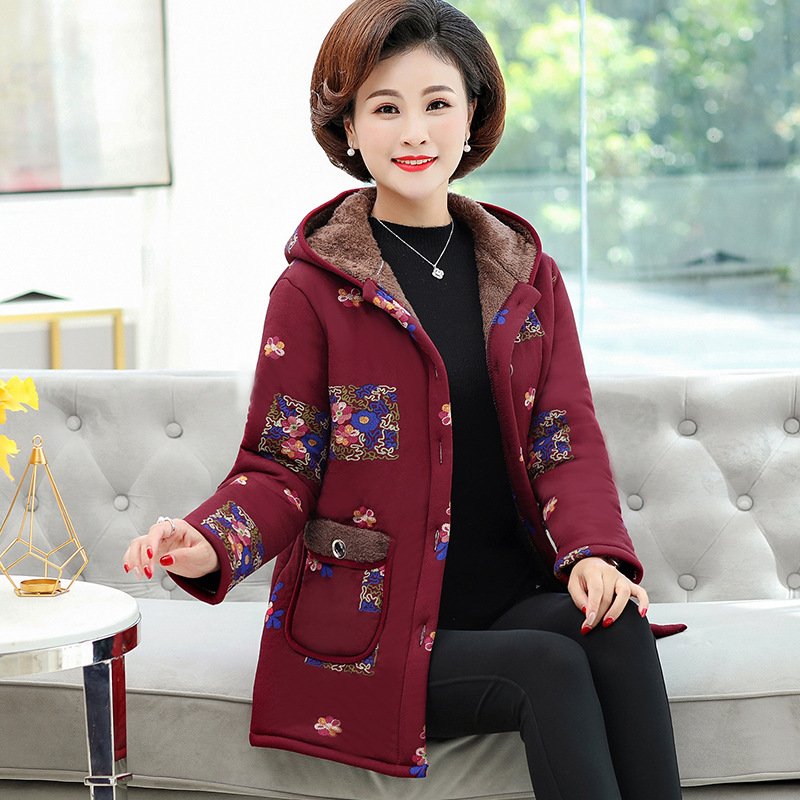 Women's clothing for middle-aged and elderly people, cotton-padded jackets for mothers, autumn and winter coats with fleece and thickened cotton-padded clothes, large-sized cotton-padded jackets for grandmothers aged 40-50-60