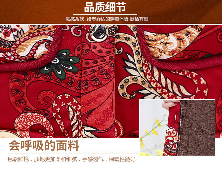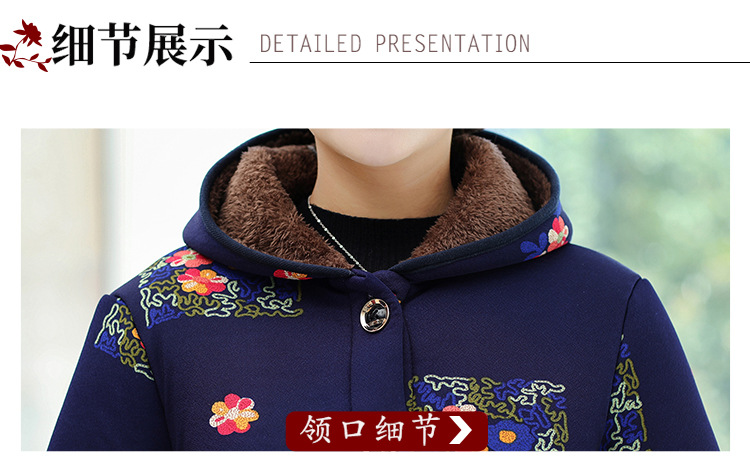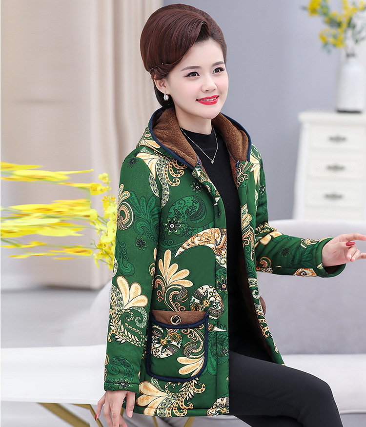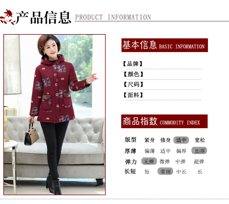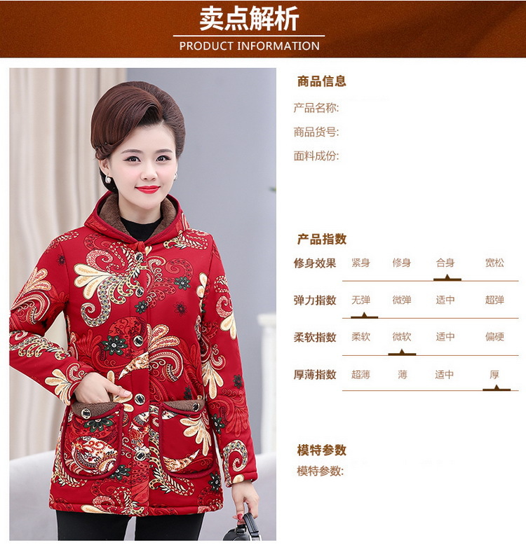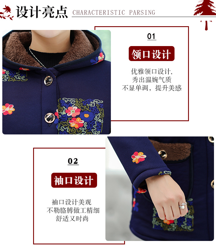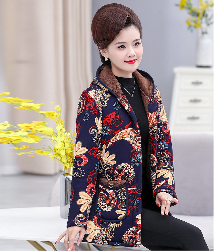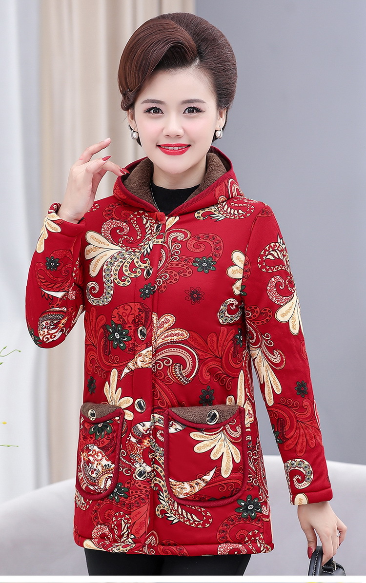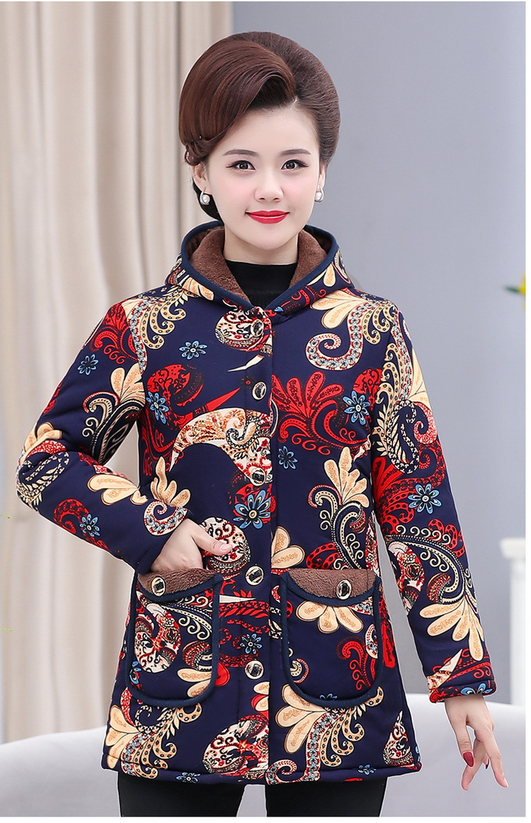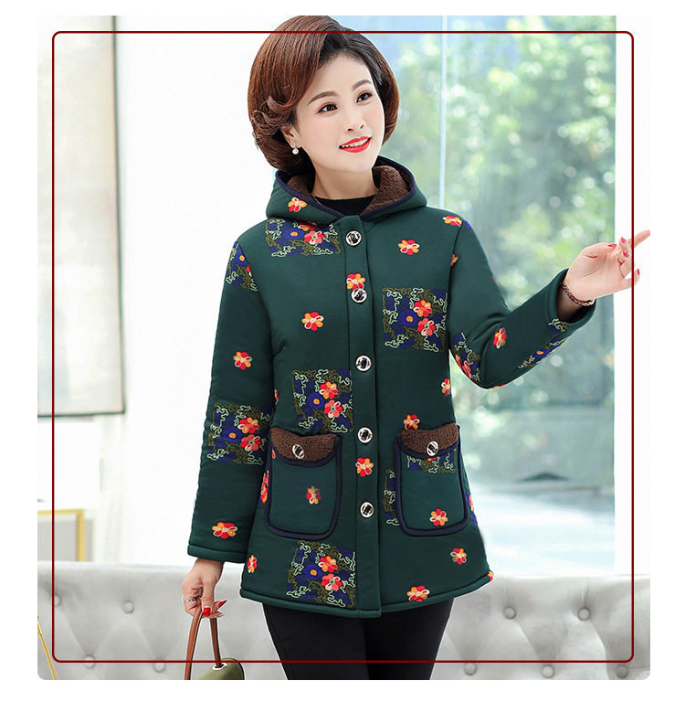 Women's clothing for middle-aged and elderly people, cotton-padded jackets for mothers, autumn and winter coats with fleece and thickened cotton-padded clothes, large-sized cotton-padded jackets for grandmothers aged 40-50-60