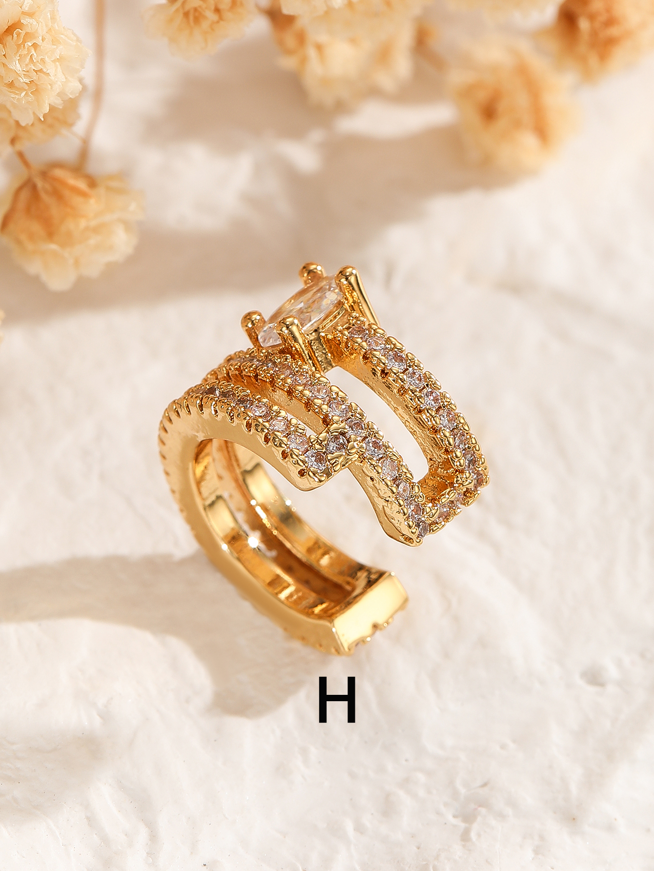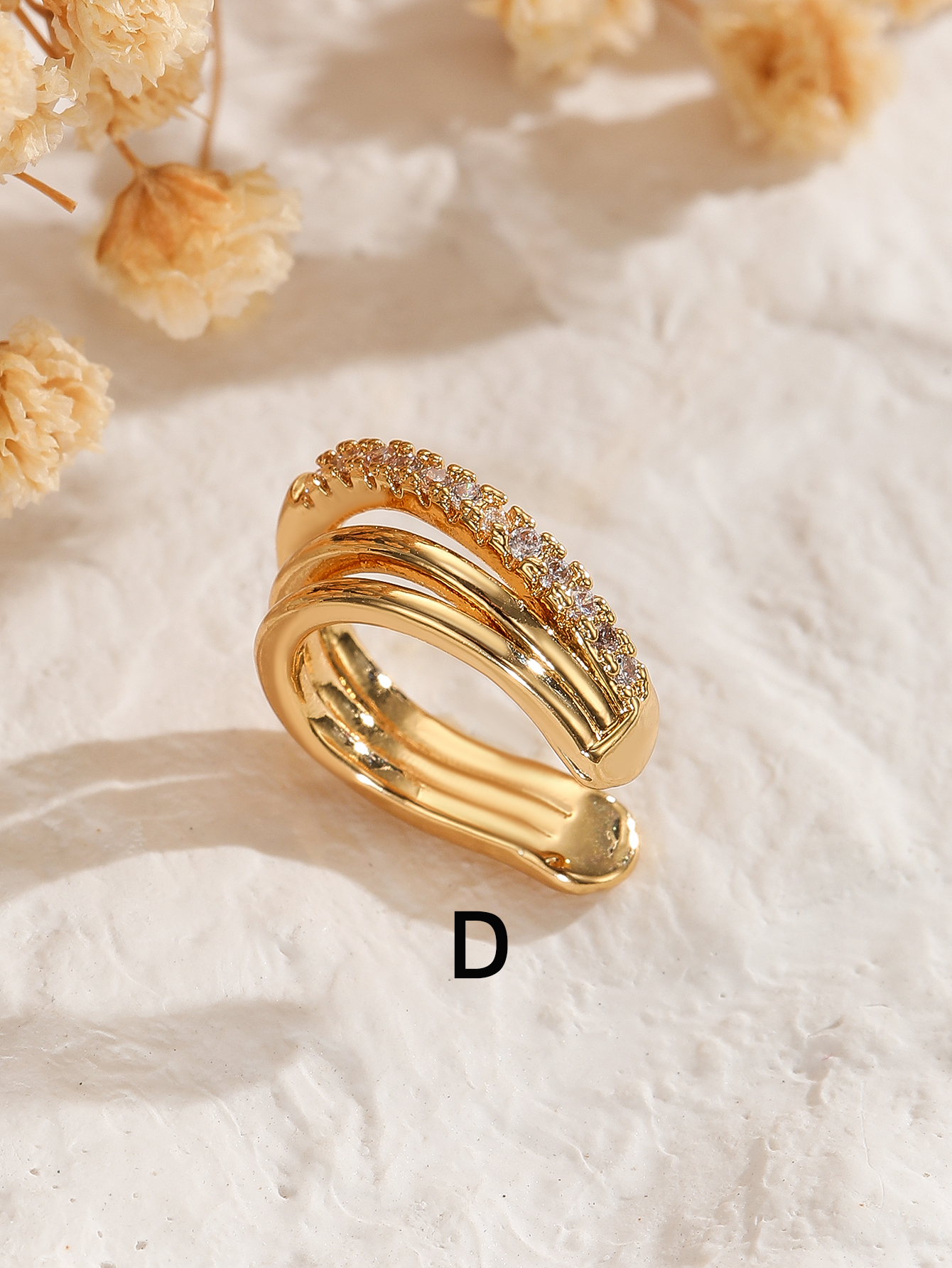 Women's diamond-encrusted double-layer ear clips, no ear holes, copper plated with real gold, niche design, high-end feel, cool, simple and fashionable