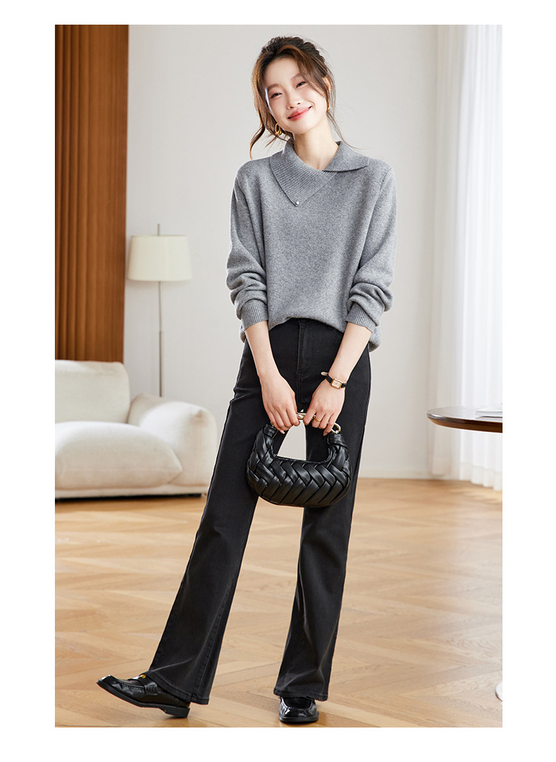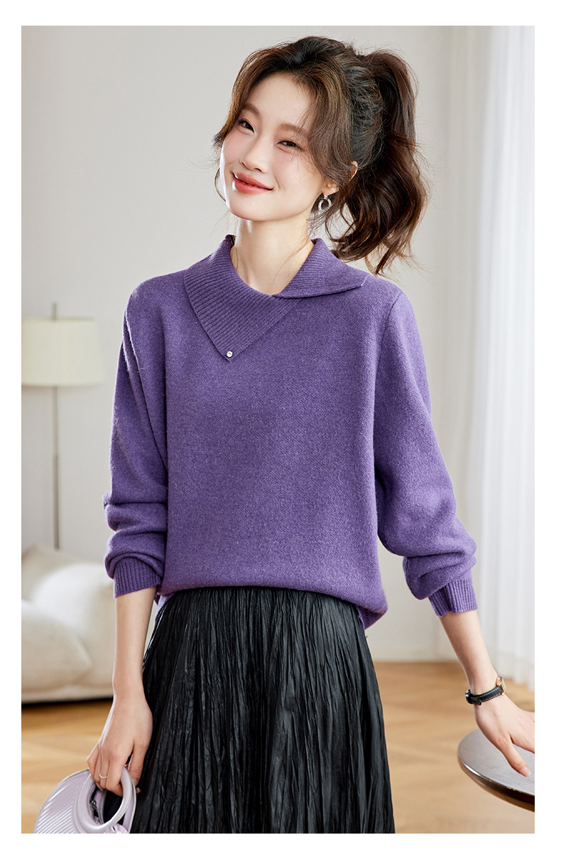 Women's fashion design sense: A purple sweater with a slanted lapel as the base layer for women's 2025 new autumn and winter single-wear knitted sweater