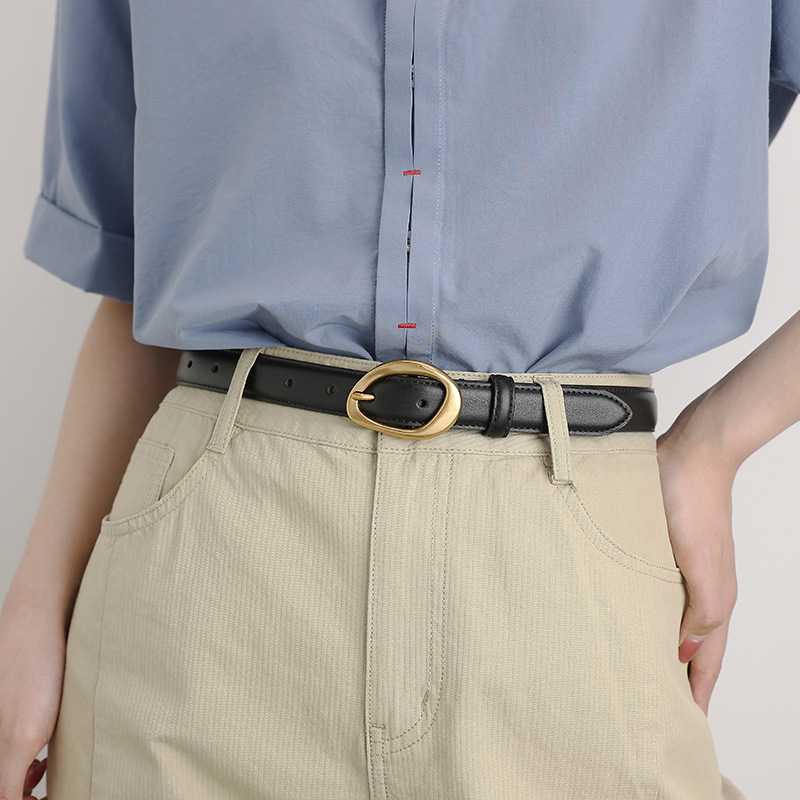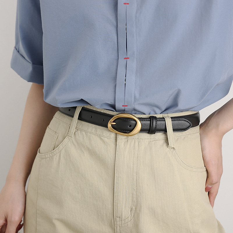 Women's leather pin buckle belt, Korean style, fashionable and versatile, jeans, coat, women's top layer, cowhide belt