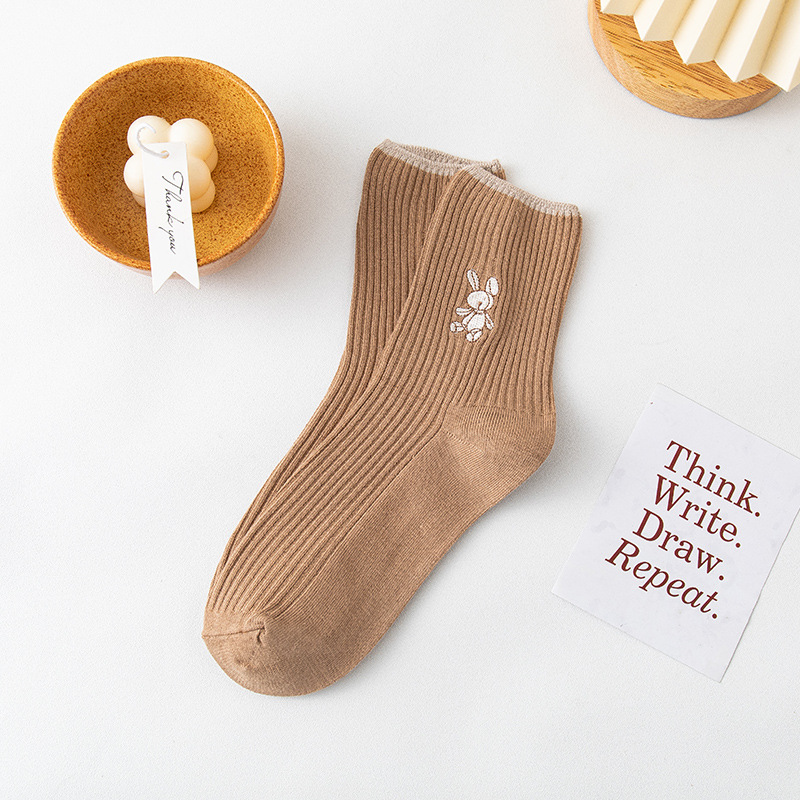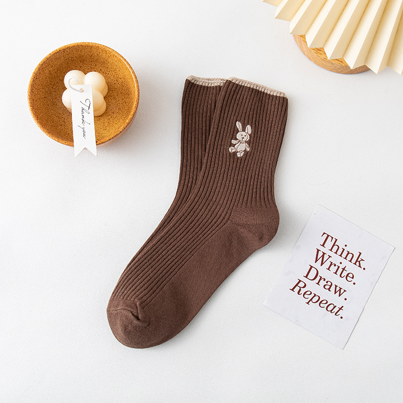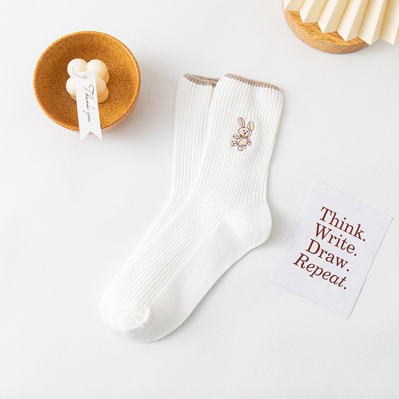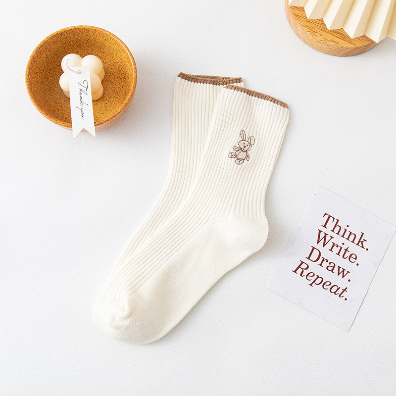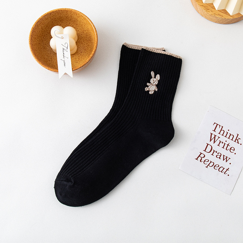 Women's long stockings, women's pile stockings, double-needle bear embroidery, autumn and winter new style women's ins trendy cotton socks consignment