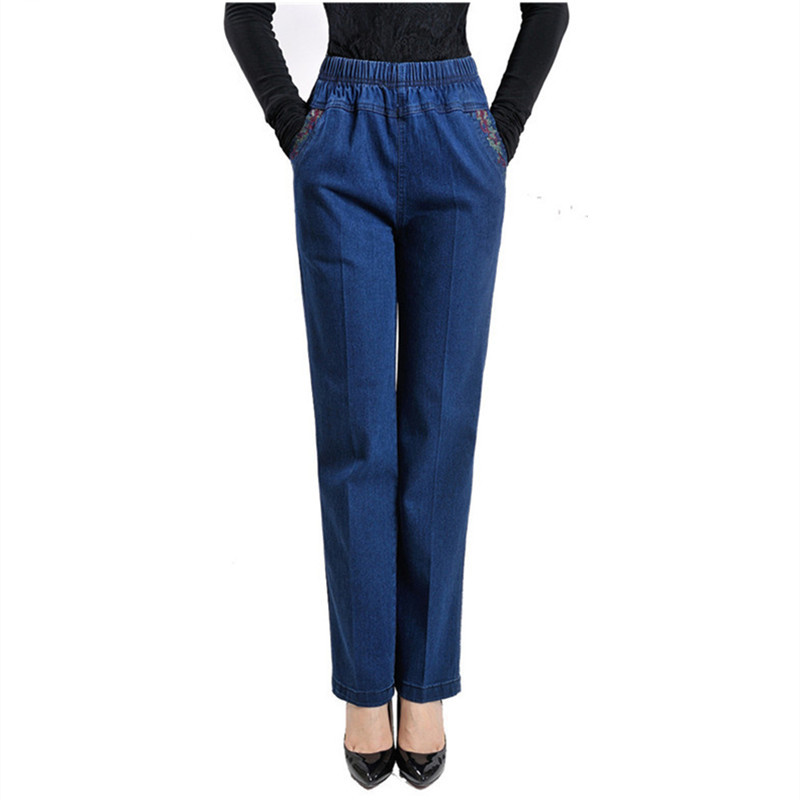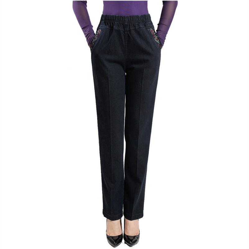 Women's pants for middle-aged and elderly people, jeans for middle-aged women, high-waisted, large-sized, loose jeans for mothers, and tight-waisted pants
