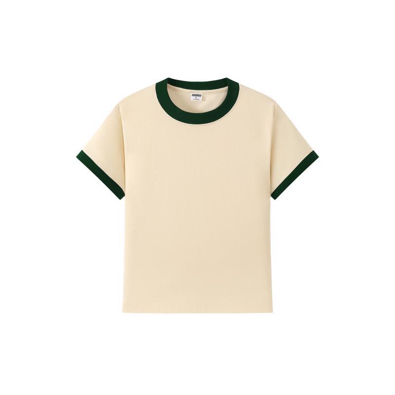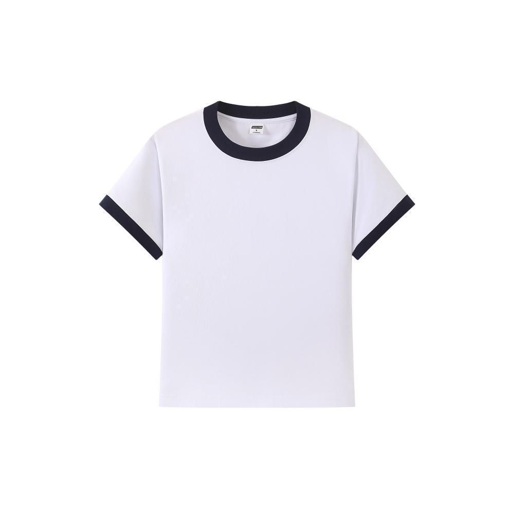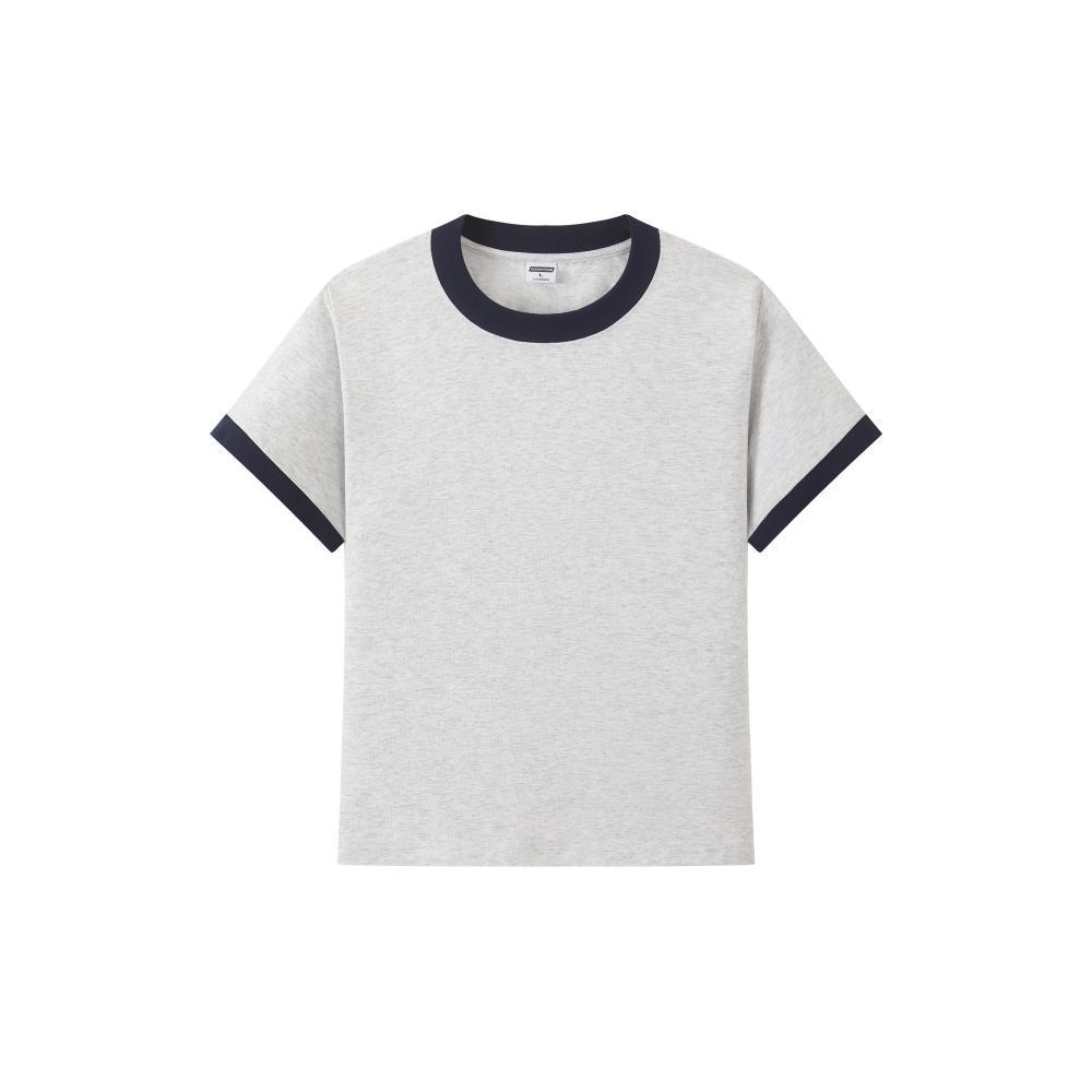 Women's round-neck short-sleeved T-shirt 2025 Spring/Summer new style contrasting color loose shoulder small neckline half-sleeved shoulder design