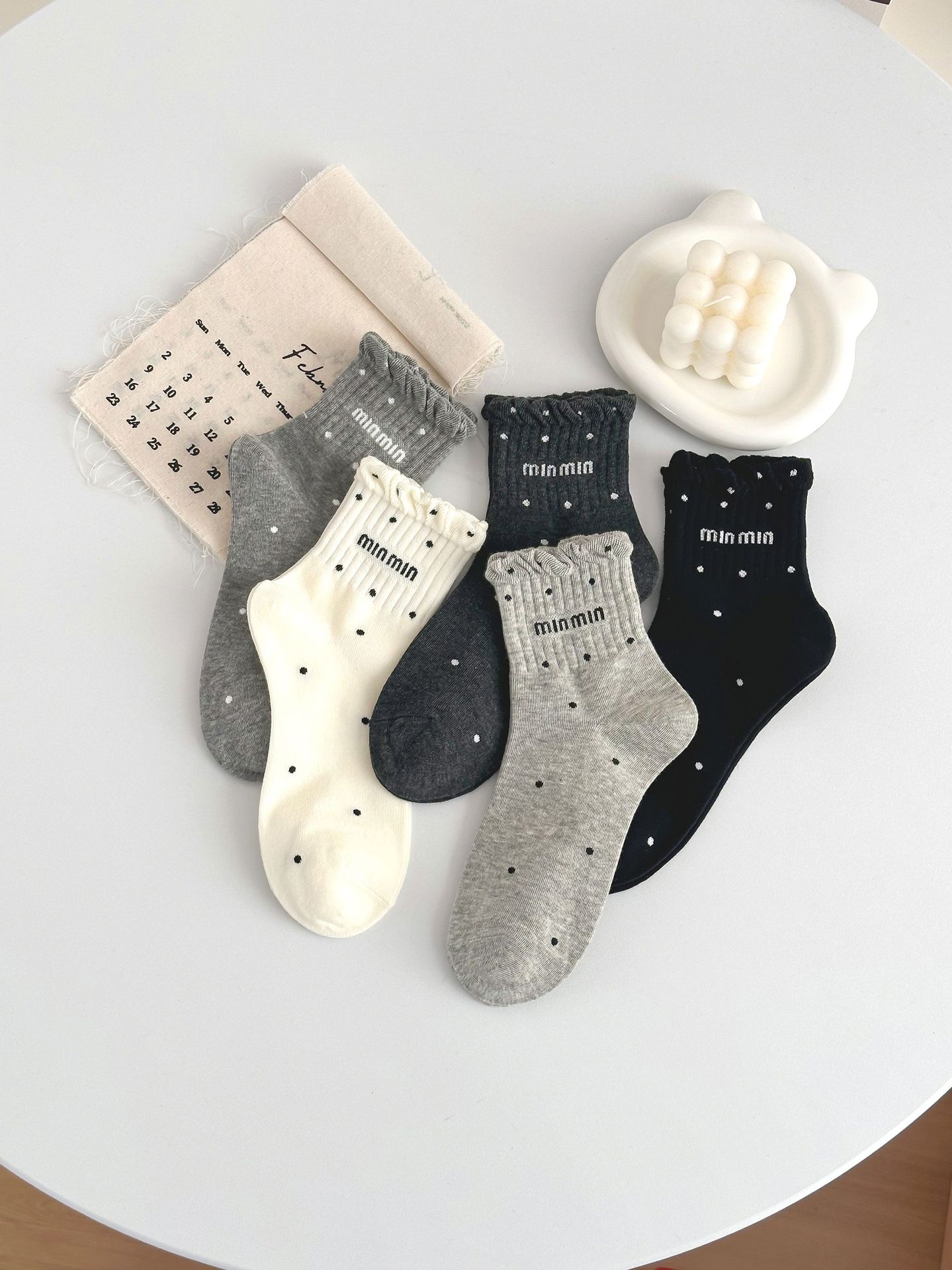 Women's socks, mid-calf socks, lace socks, miu series, college style socks, polka dot trendy socks, breathable cotton socks, fashionable and versatile styles