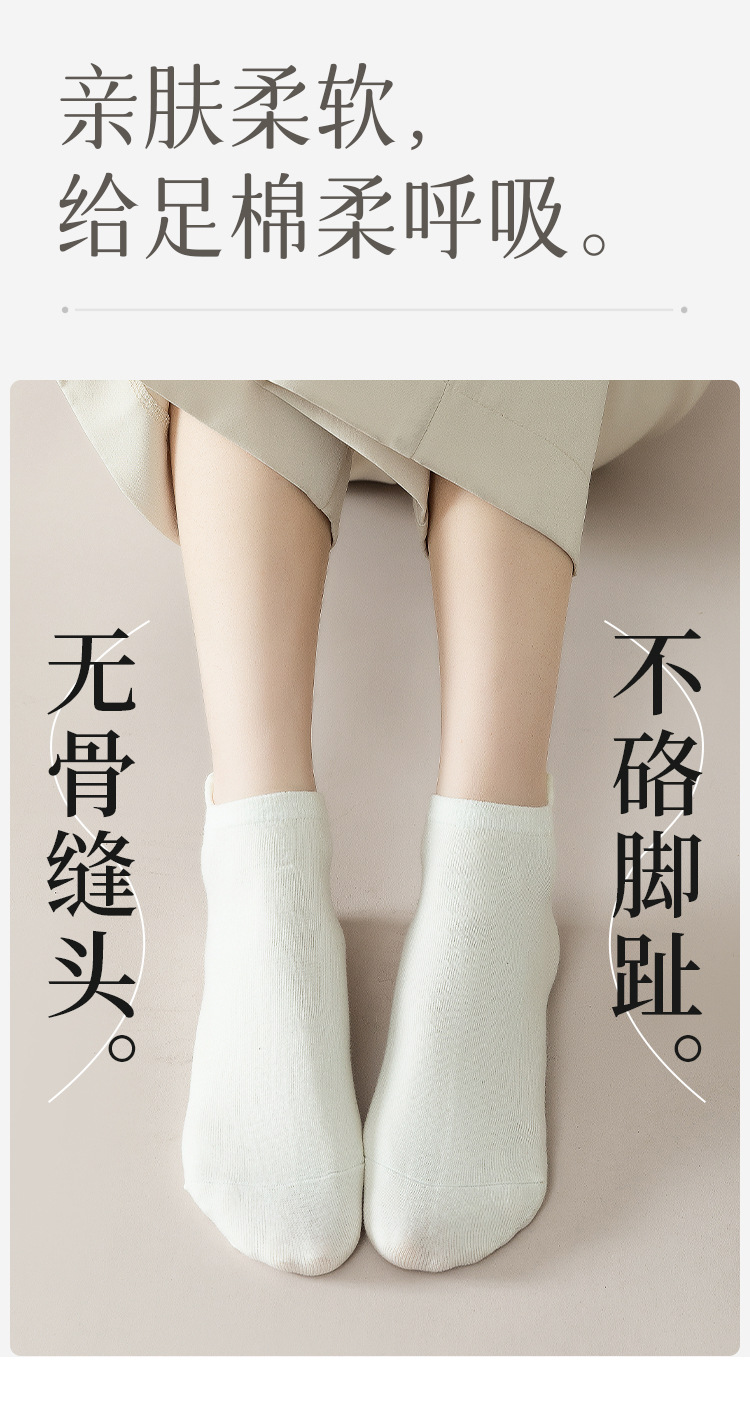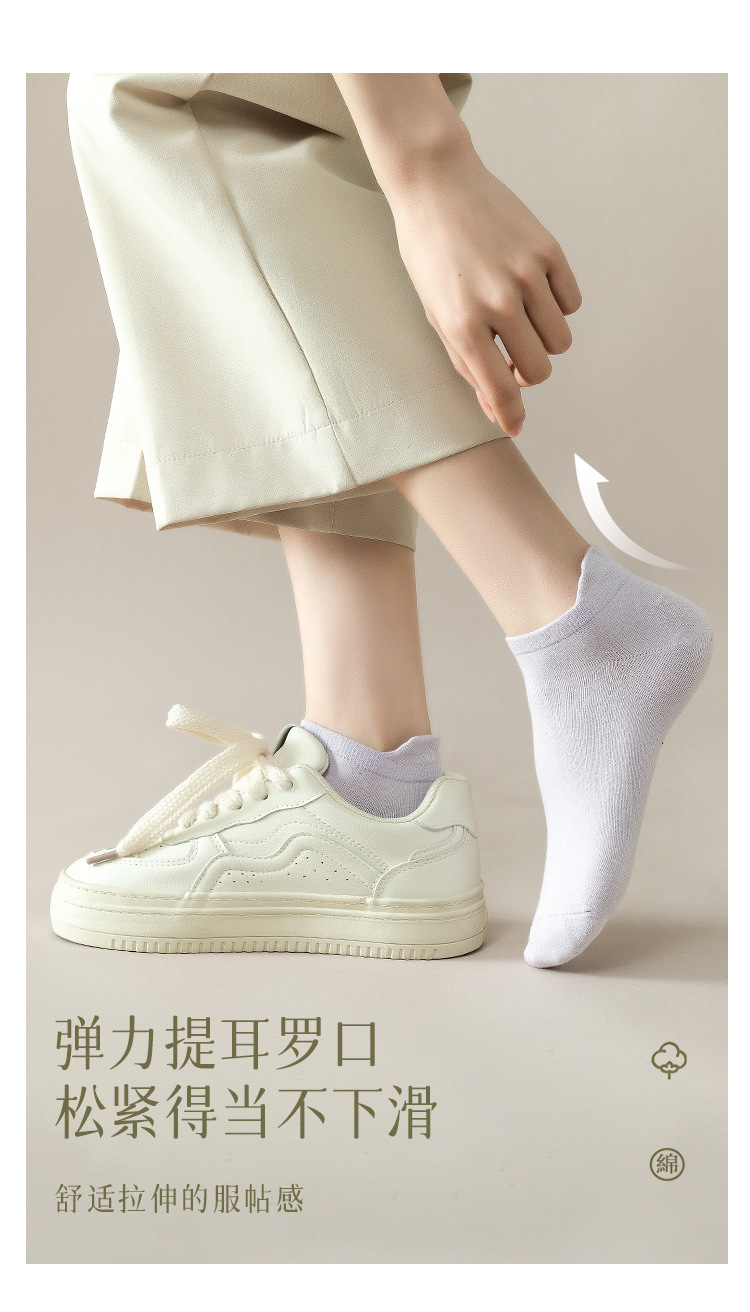 Women's socks, summer all-cotton antibacterial, deodorizing, sweat-absorbing, breathable, boneless, spring and autumn black and white pure cotton women's boat socks