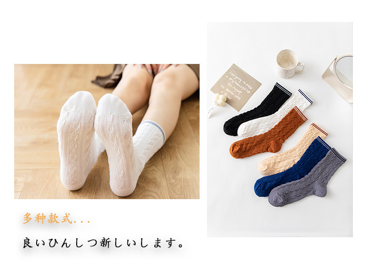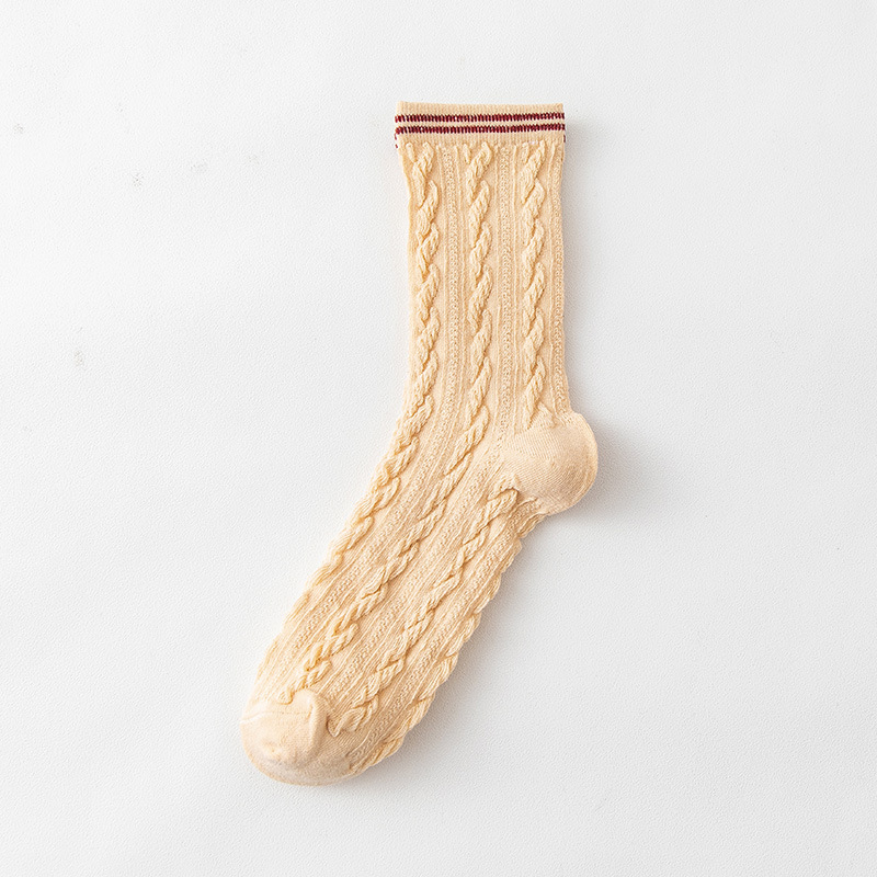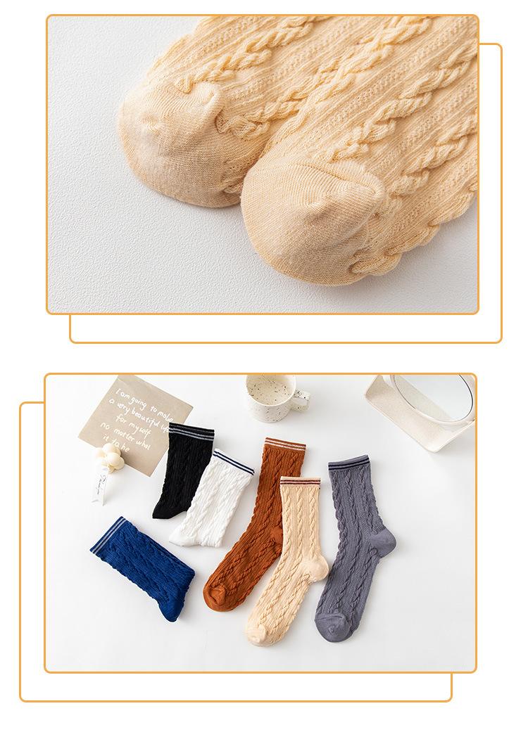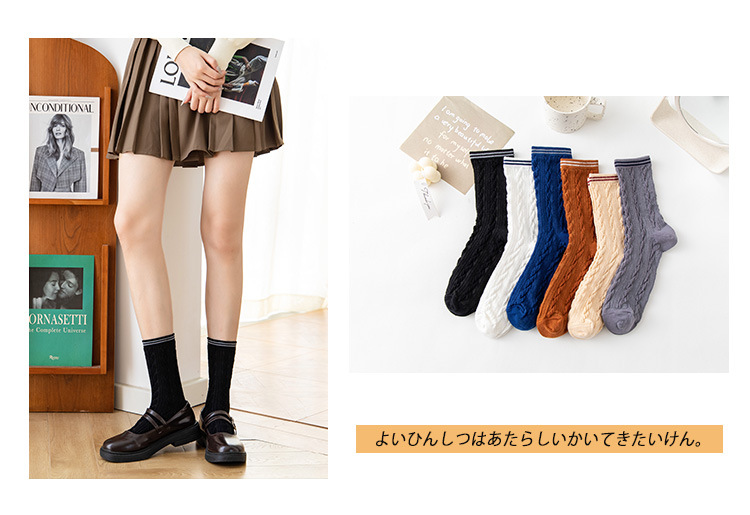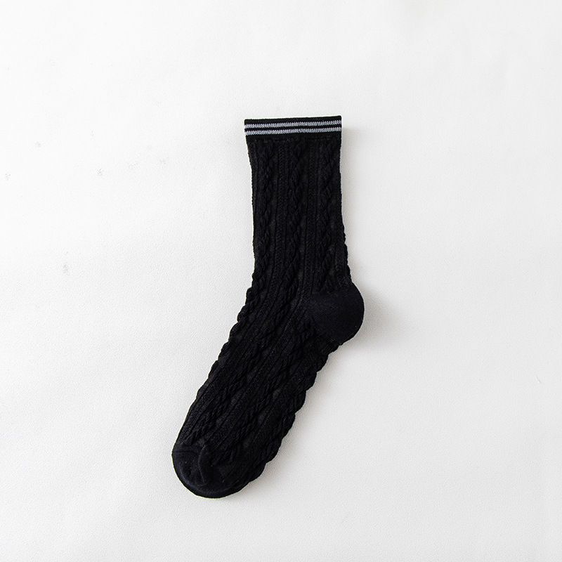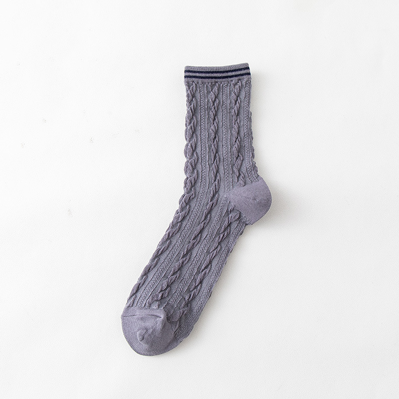 Women's spring and autumn Japanese-style horizontal striped twisted solid color mid-calf socks, breathable long cotton socks for women, sent by the manufacturer