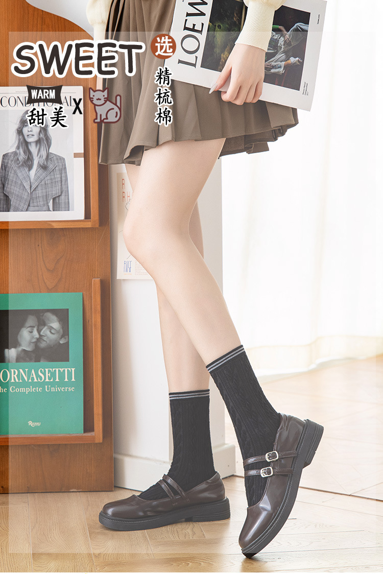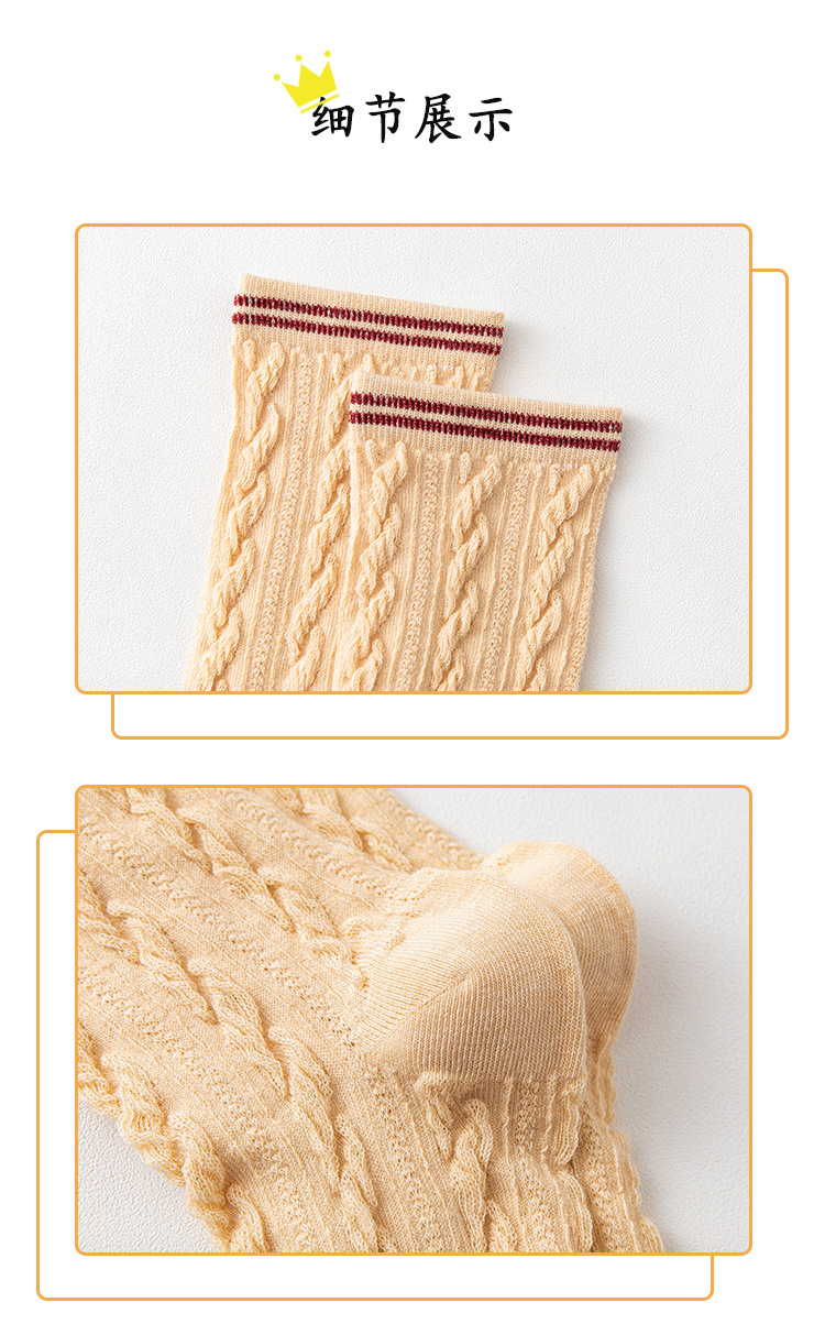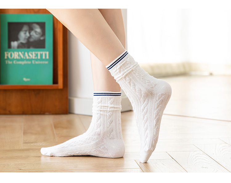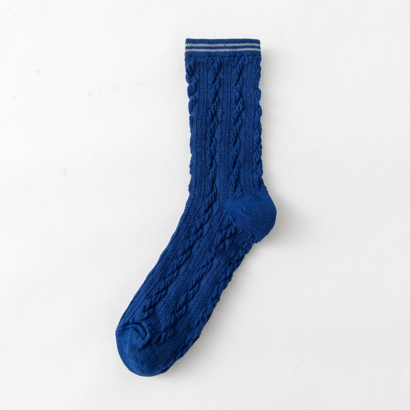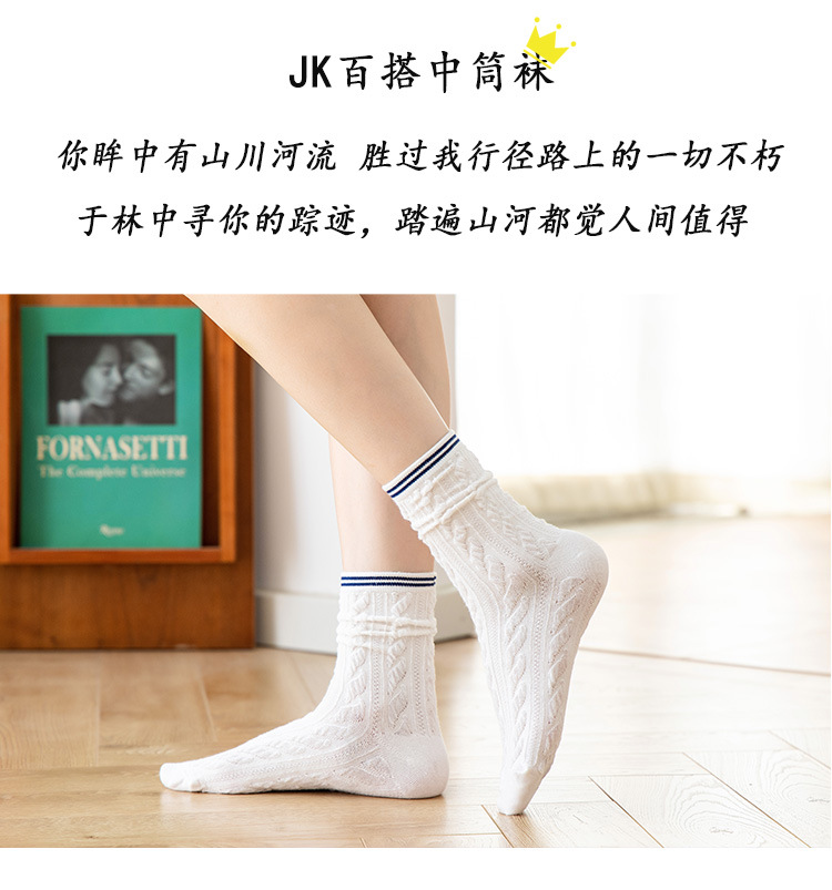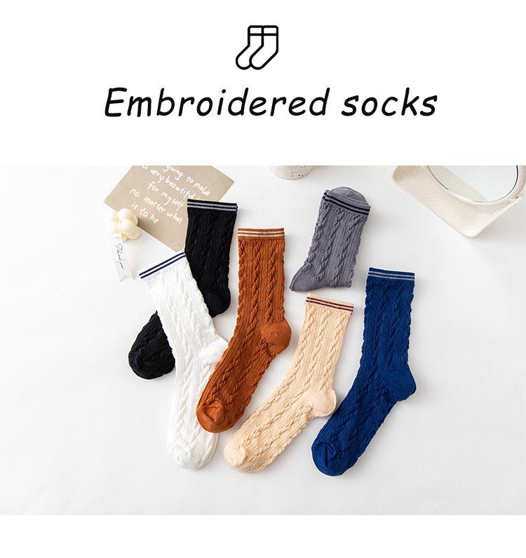 Women's spring and autumn Japanese-style horizontal striped twisted solid color mid-calf socks, breathable long cotton socks for women, sent by the manufacturer