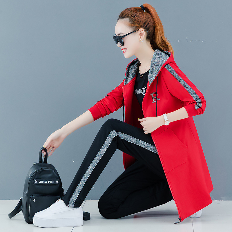 Women's Spring/Autumn 2020 new loose and fashionable sweatshirt three-piece set, large-sized long-sleeved running casual wear