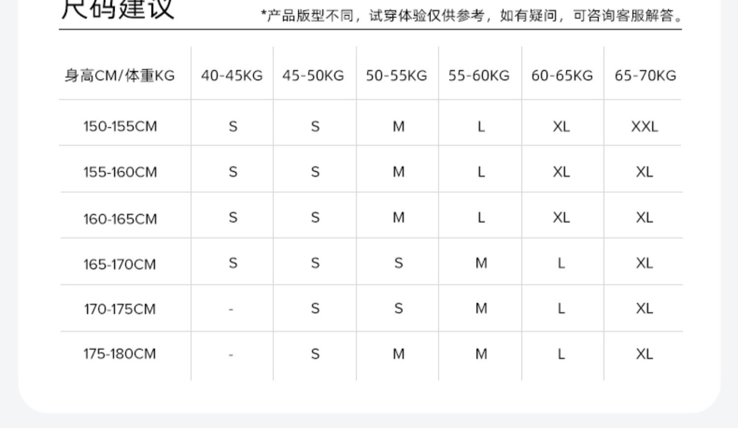 Recommended sizes: 65ABC/70ABC