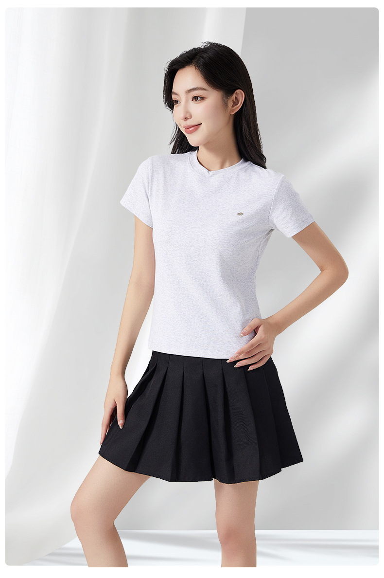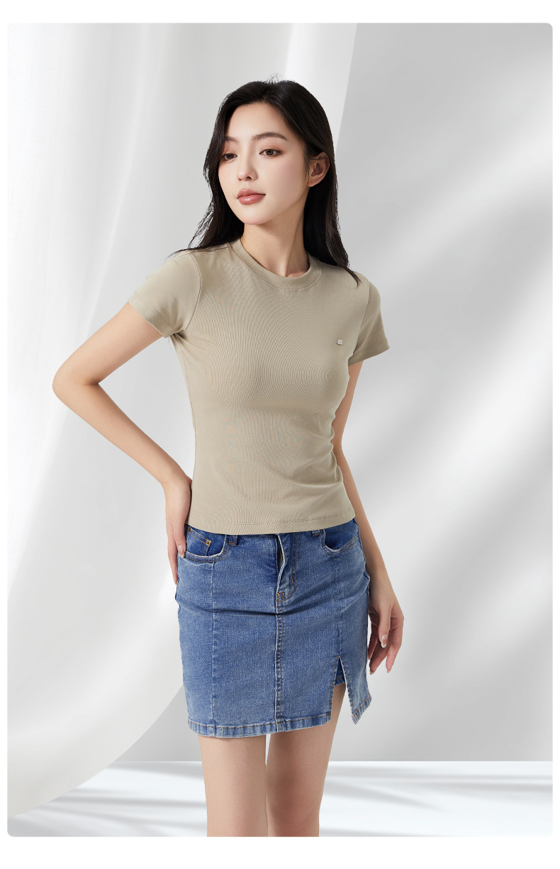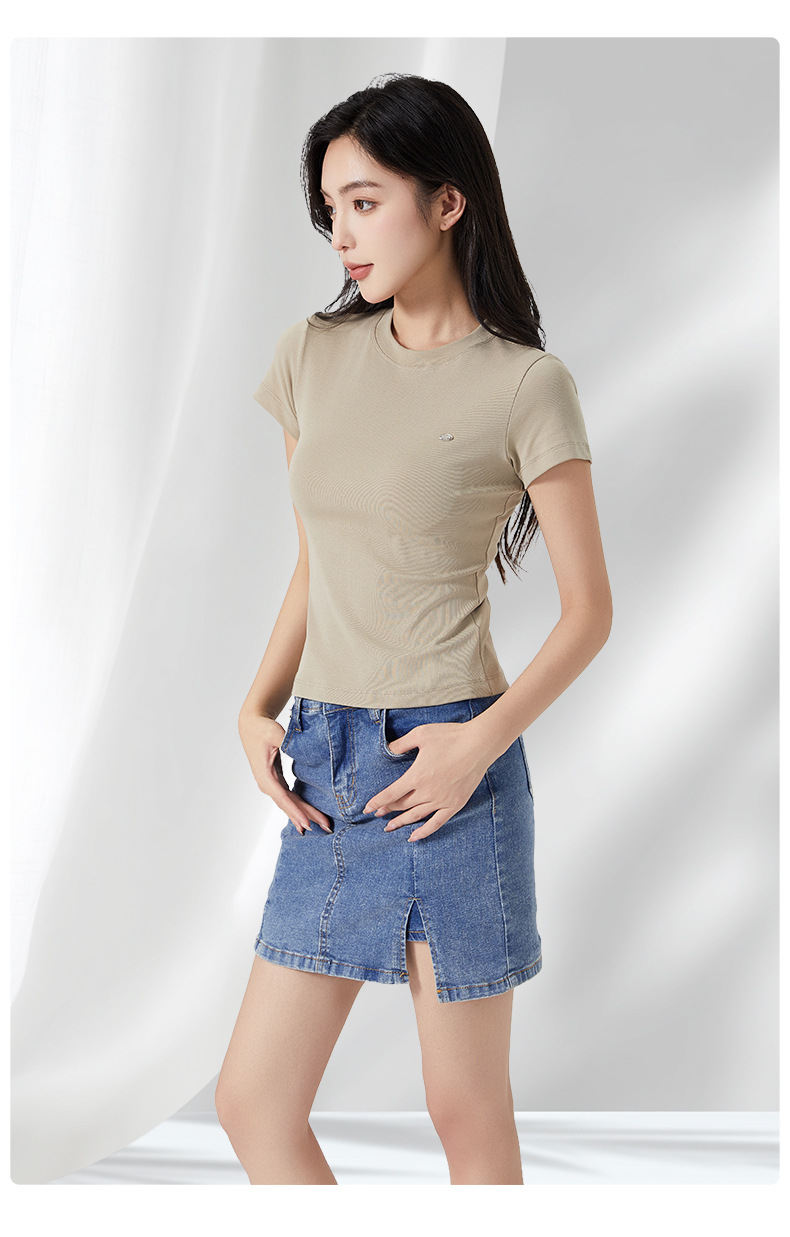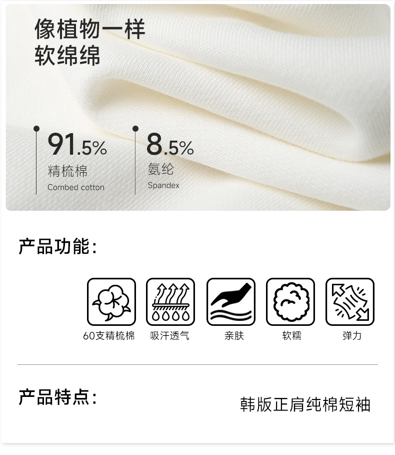 Women's summer short-sleeved, loose, straight-shoulder, pure cotton, fashionable metal small label, casual round-neck pullover short-sleeved top for women