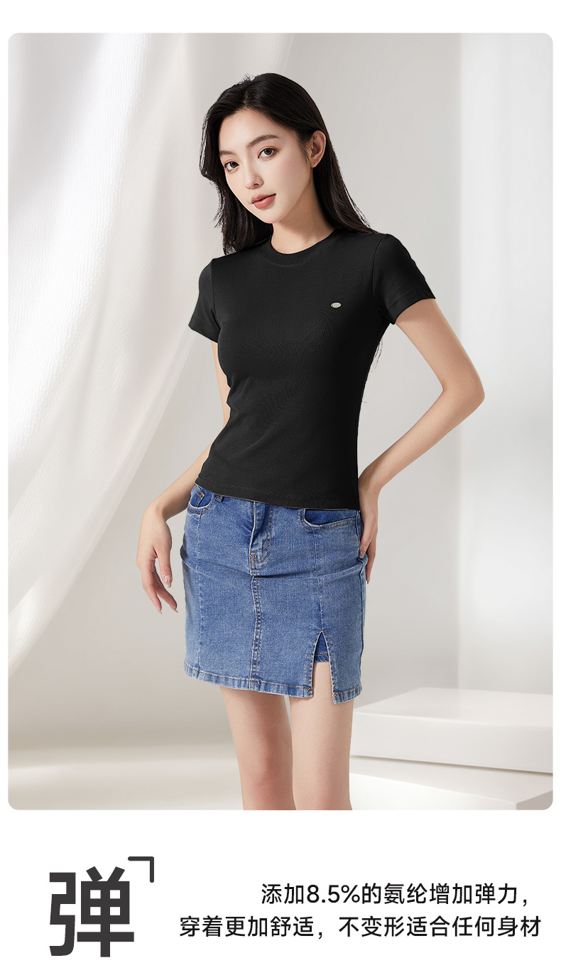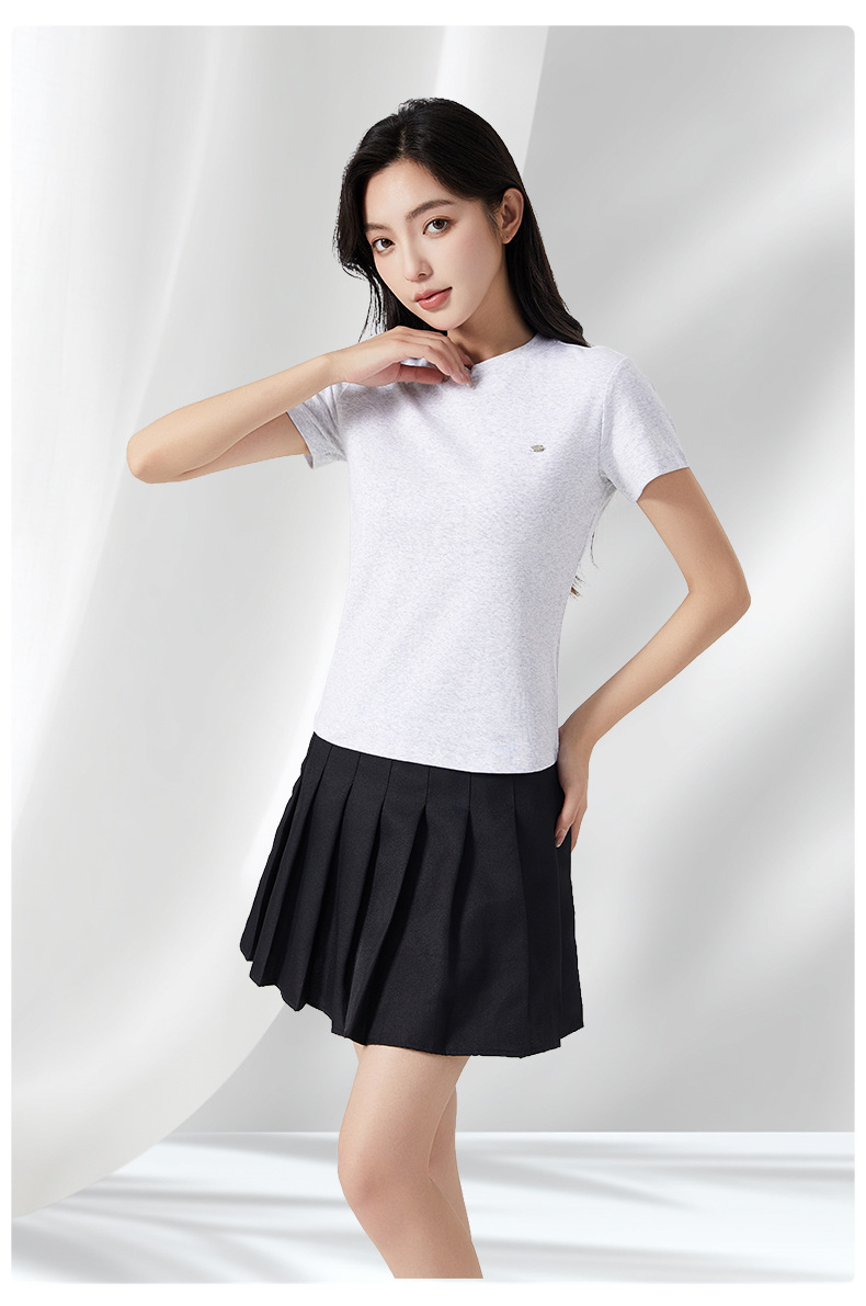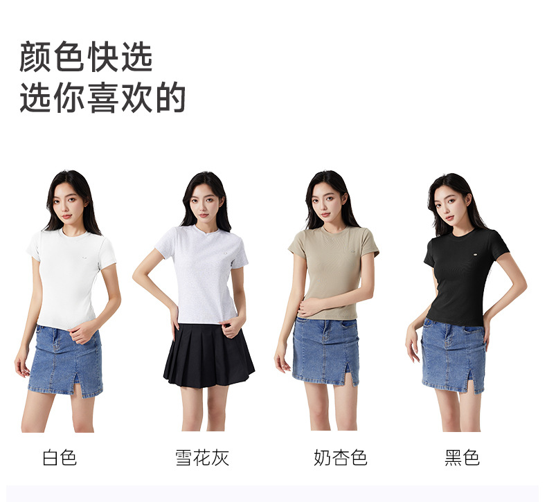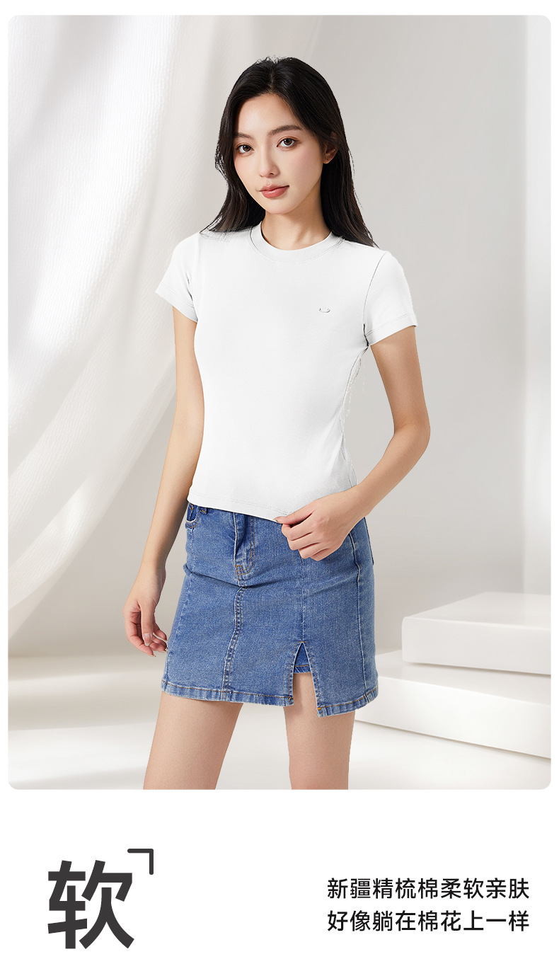 Women's summer short-sleeved, loose, straight-shoulder, pure cotton, fashionable metal small label, casual round-neck pullover short-sleeved top for women