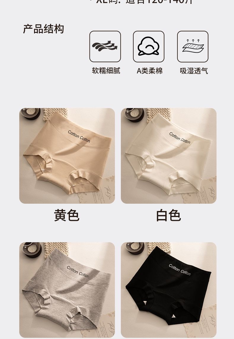Women's underwear: Pure cotton antibacterial high-waisted and belly cinching 2024 New 10A antibacterial all-cotton extended crotch four-corner flat pants