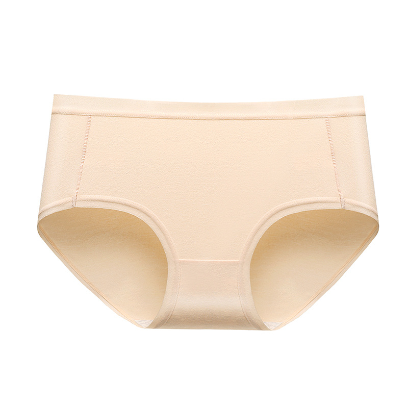 Women's underwear: Pure cotton mid-waisted, large-sized, hip-lifting, seamless triangle pants for women. Wholesale of solid-colored mid-waisted, all-cotton underwear for women