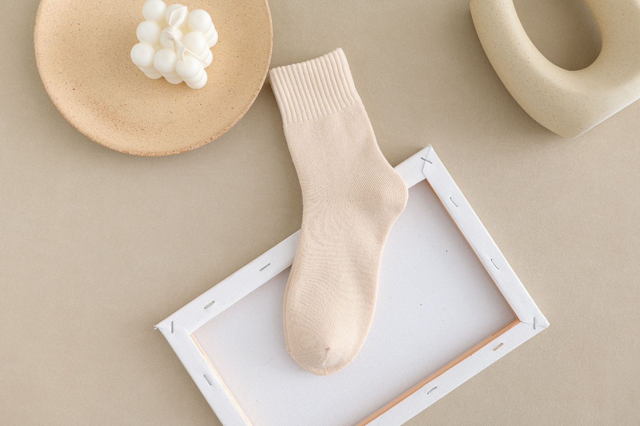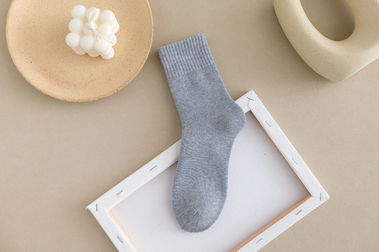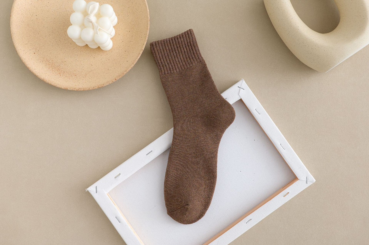 Women's winter mid-calf socks, fleece and thickened warm socks, soft vertical striped solid color Japanese-style long socks, sleep and home socks