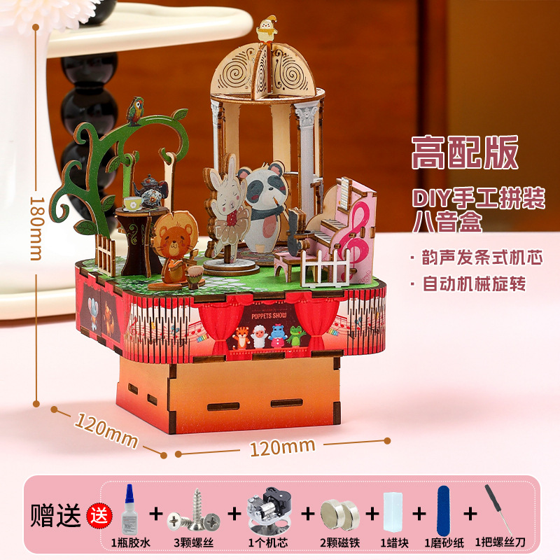 Wooden assembly DIY music box, fun cultural and creative Alice Tea Party, Magic castle music box, classic replica assembly handcrafted gift